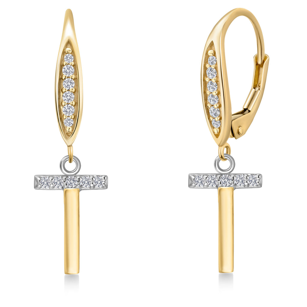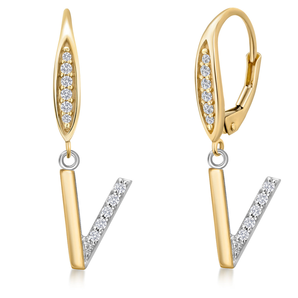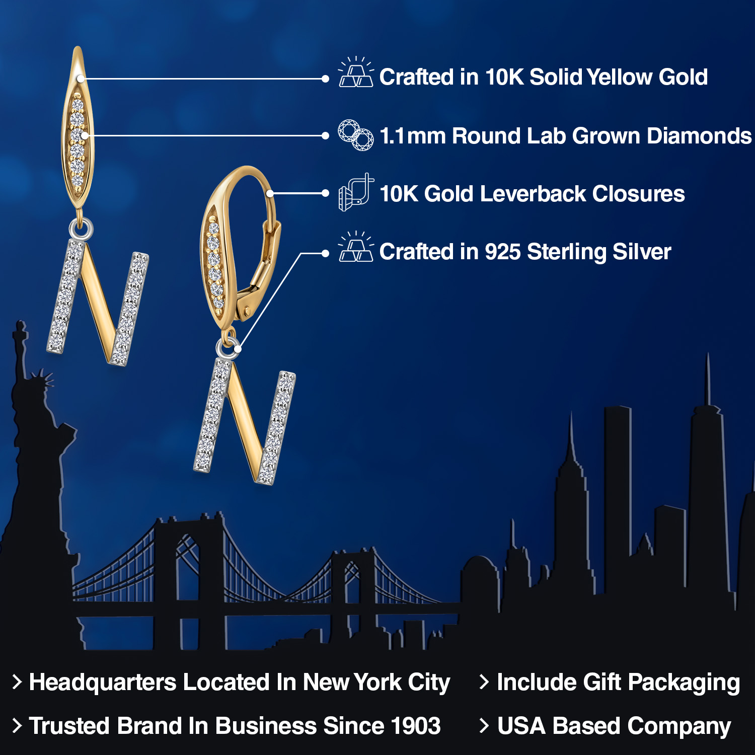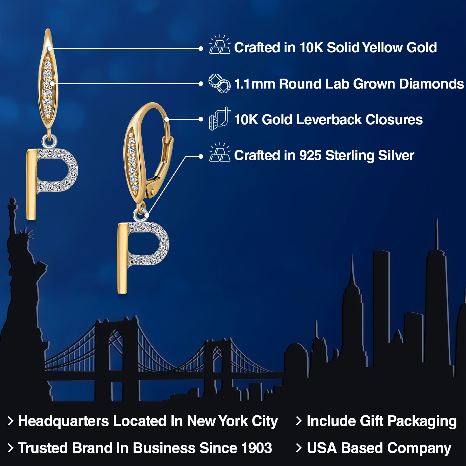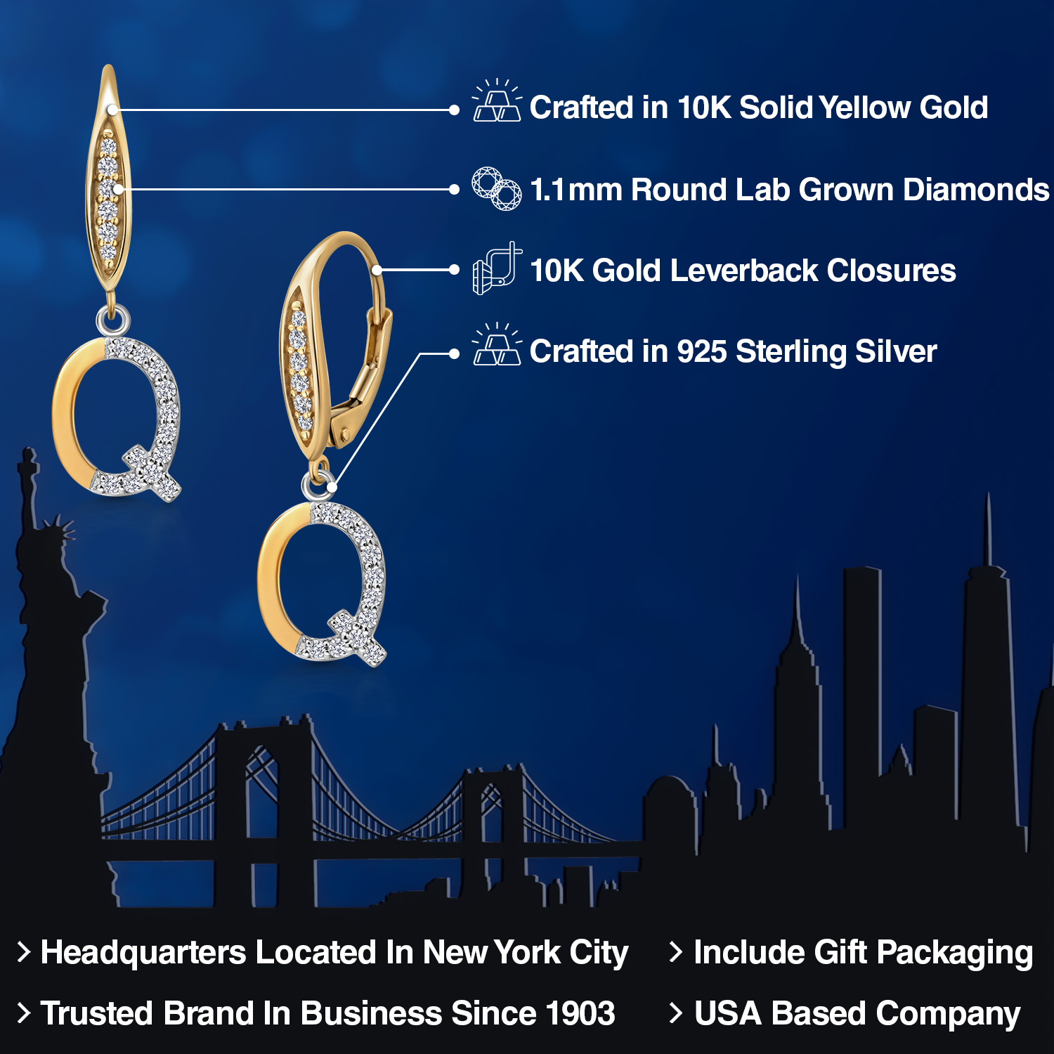 Initial Earrings Letter A to Z Alphabet | 10K Yellow Gold and 925 Sterling Silver | Lab Grown Diamond | Gift Women Mother's Day Wife Mom Girlfriend Anniversary Birthday | By Keren Hanan