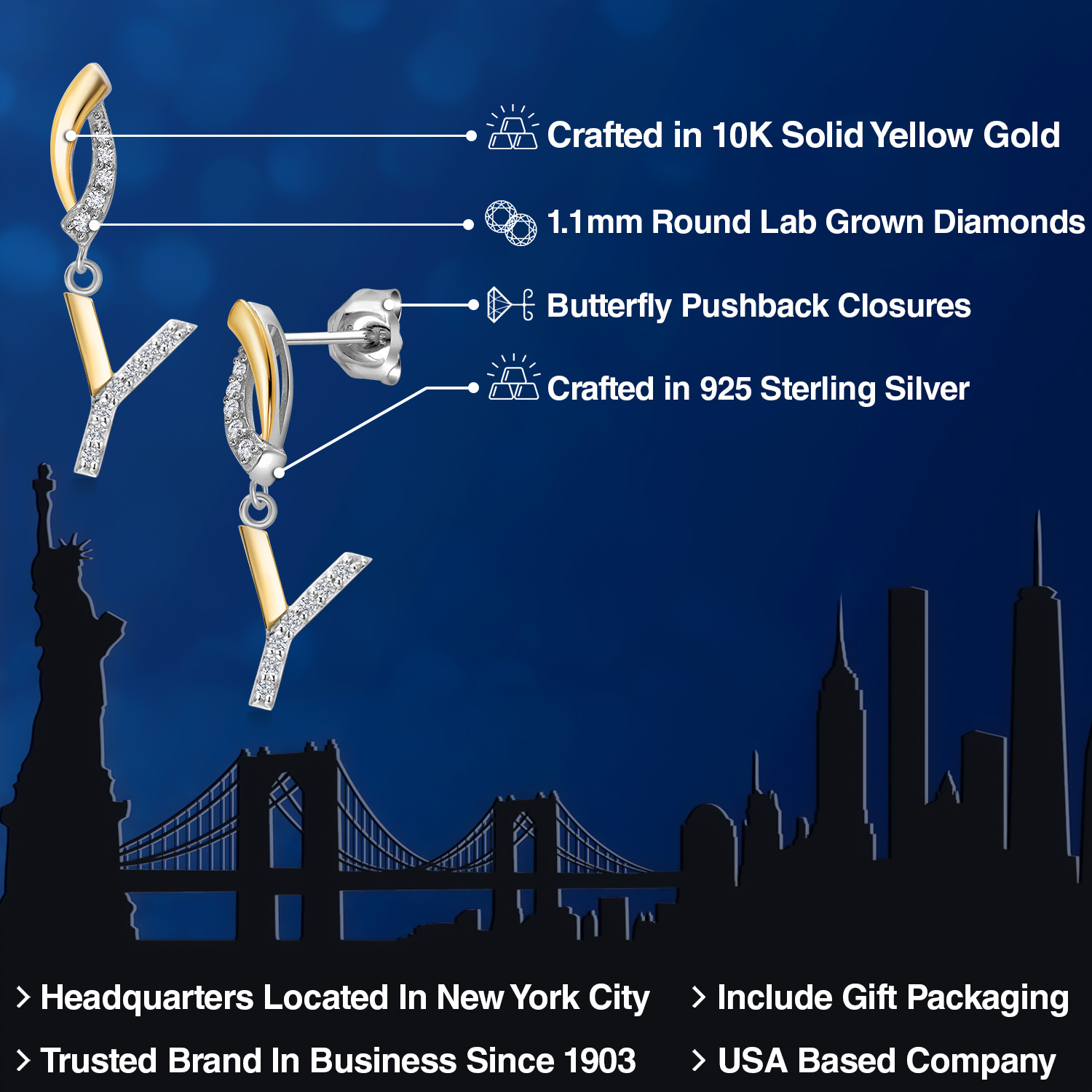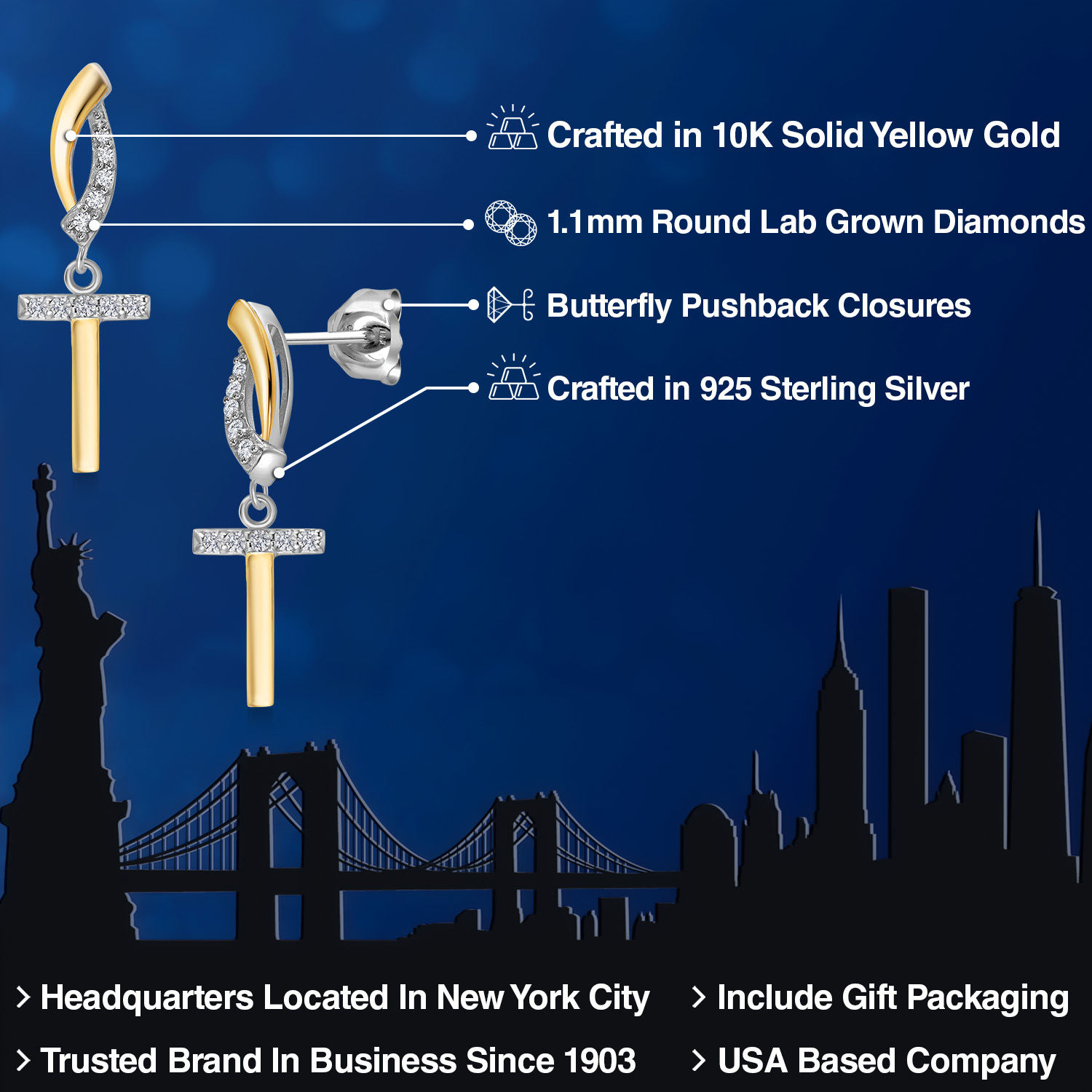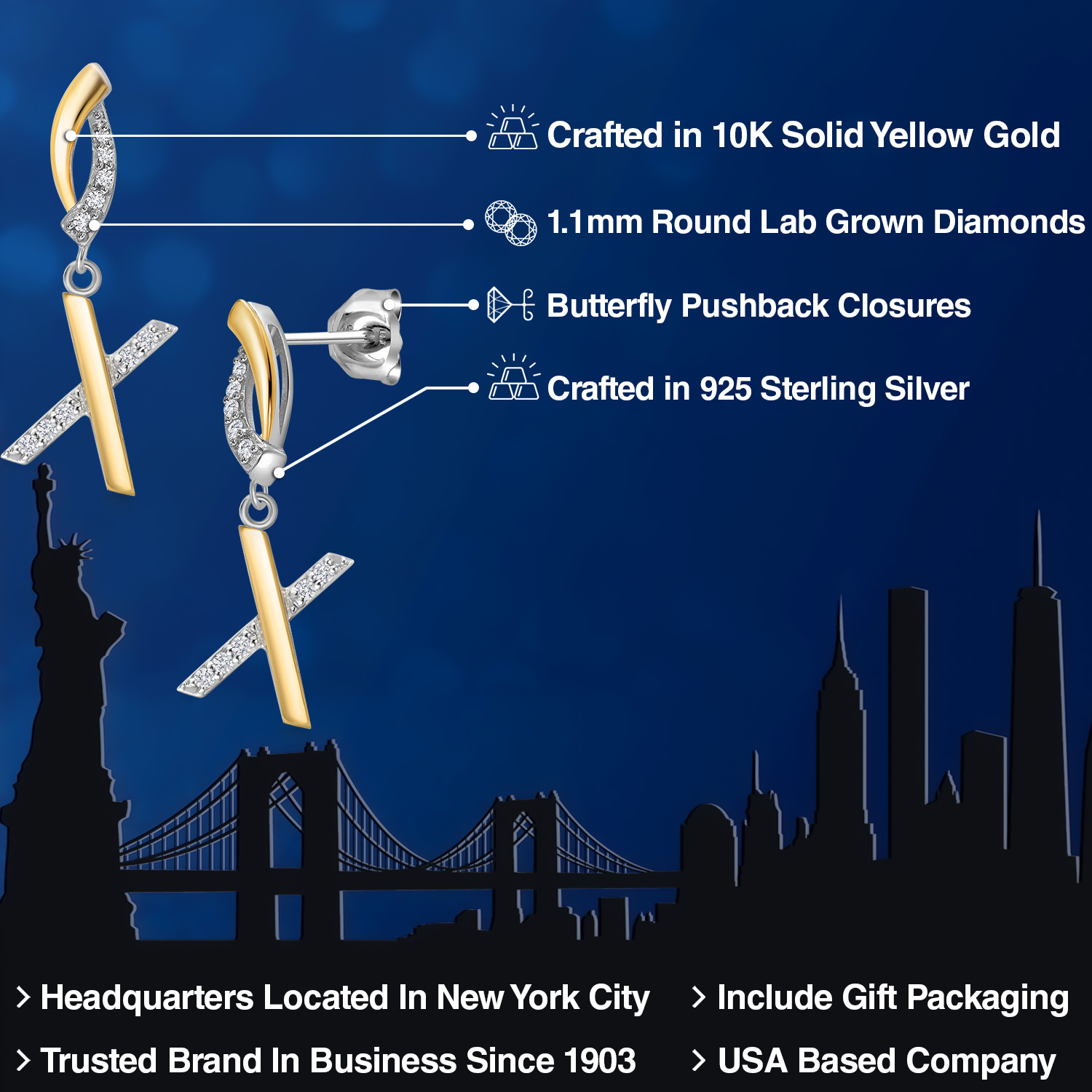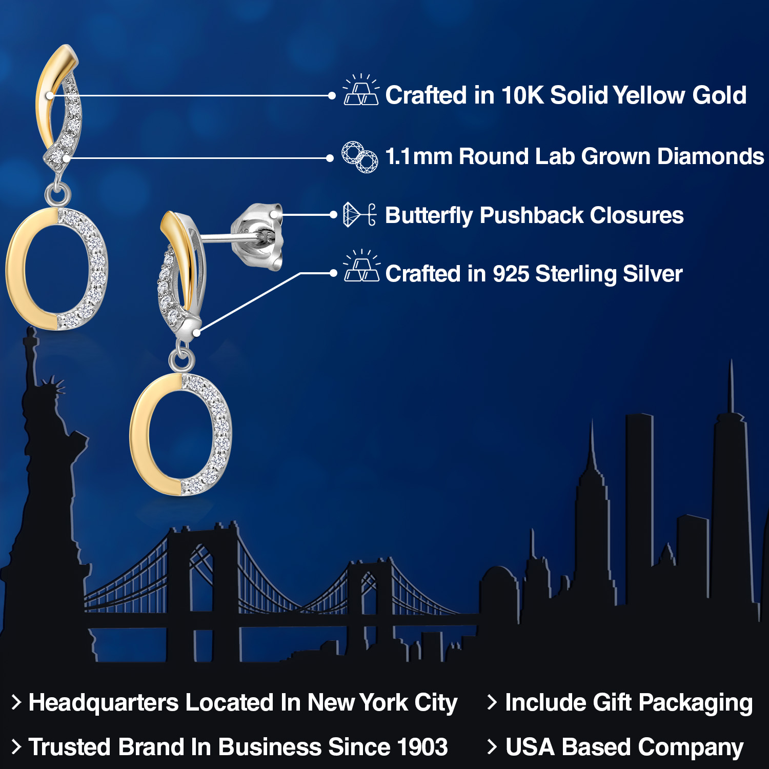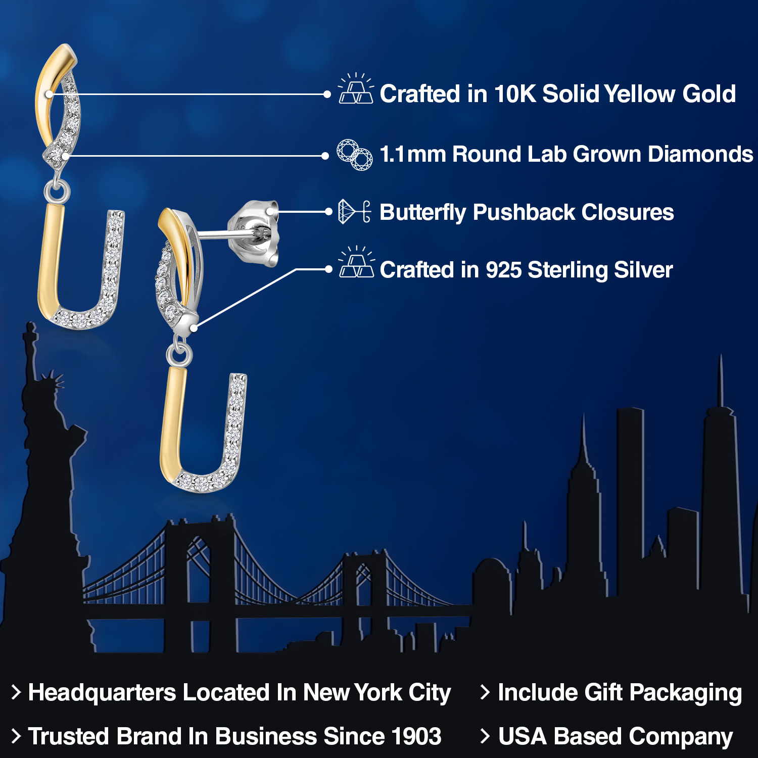 HARMONY OF YELLOW GOLD AND STERLING SILVER: Meticulously designed with the perfect harmony of 10K yellow gold and 925 sterling silver, these earrings strike a balance between warmth and timeless elegance. The dual-tone design ensures versatility and sophistication.