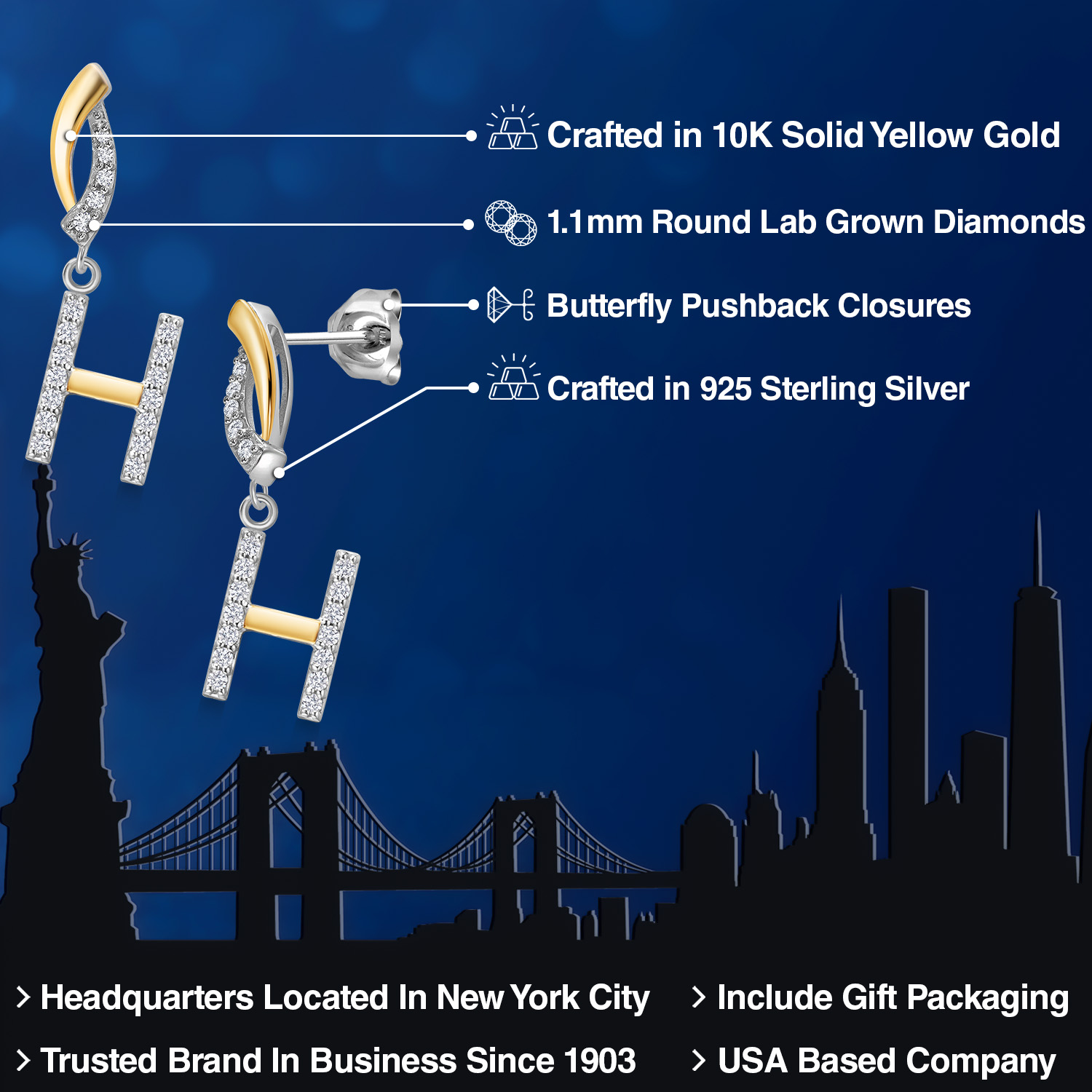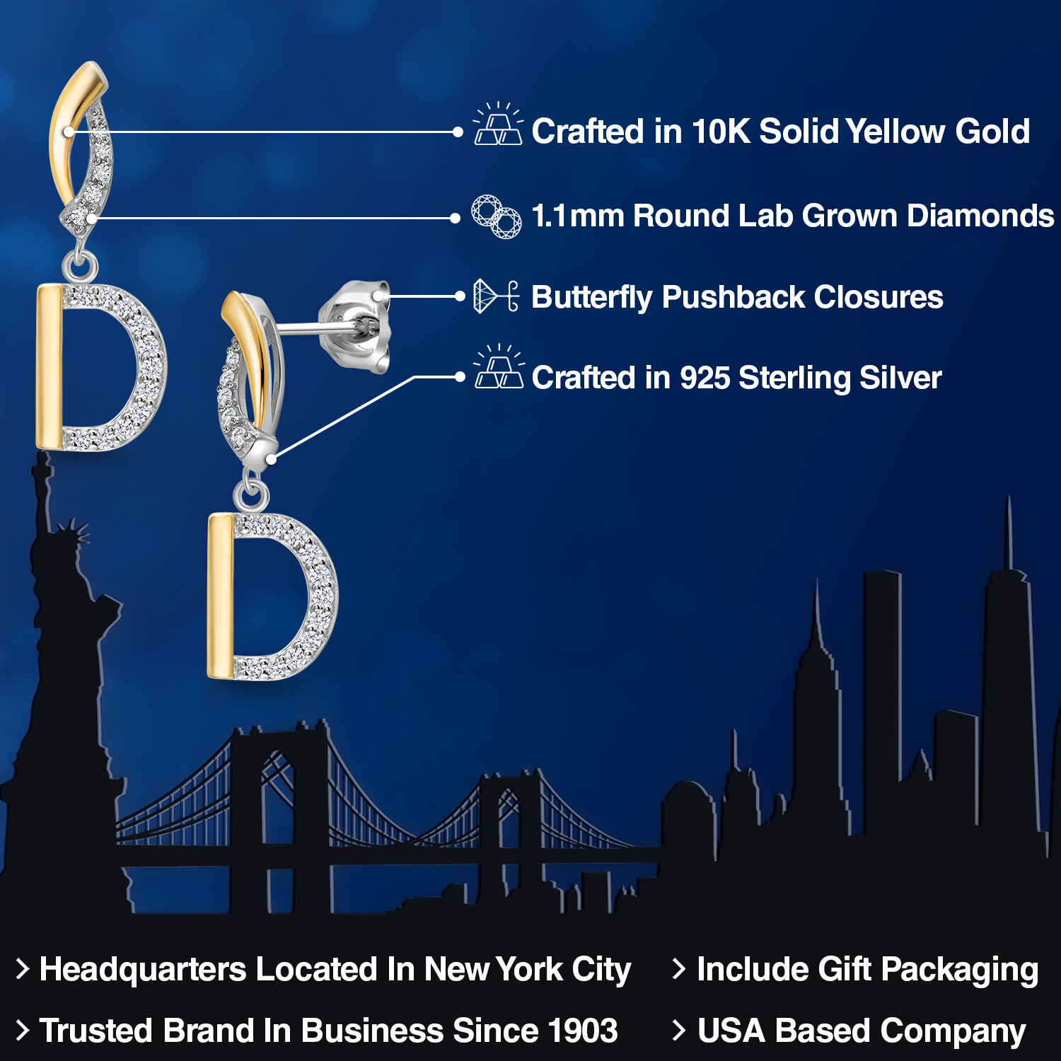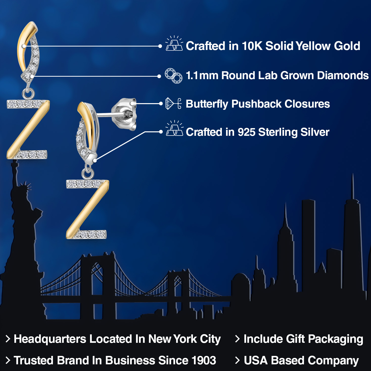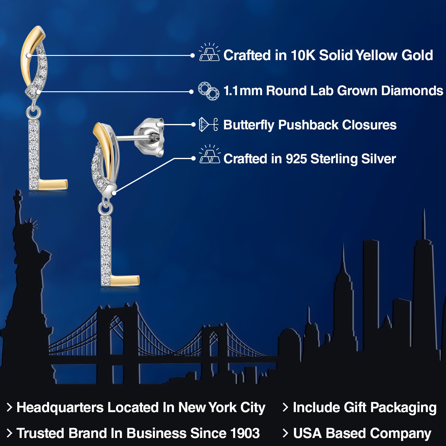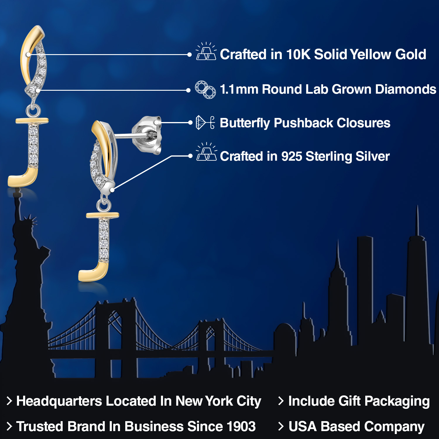 HARMONY OF YELLOW GOLD AND STERLING SILVER: Meticulously designed with the perfect harmony of 10K yellow gold and 925 sterling silver, these earrings strike a balance between warmth and timeless elegance. The dual-tone design ensures versatility and sophistication.