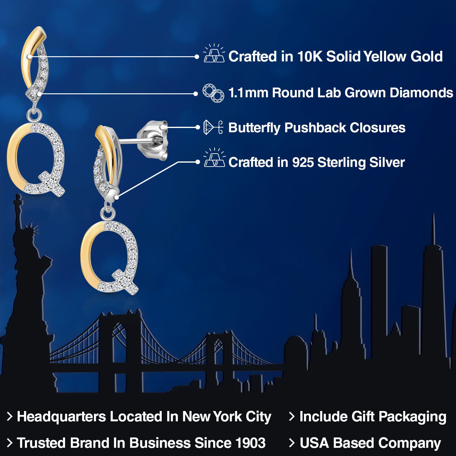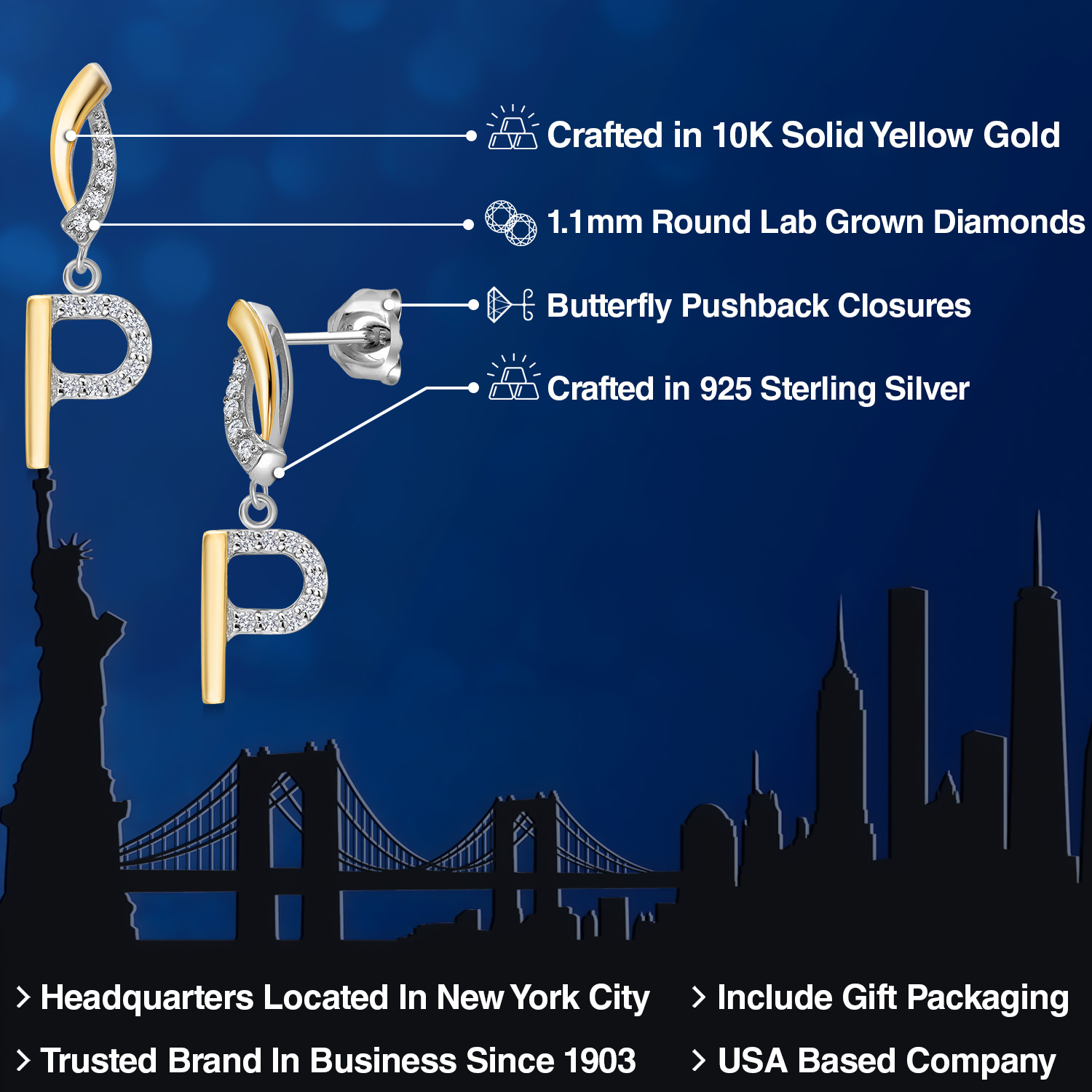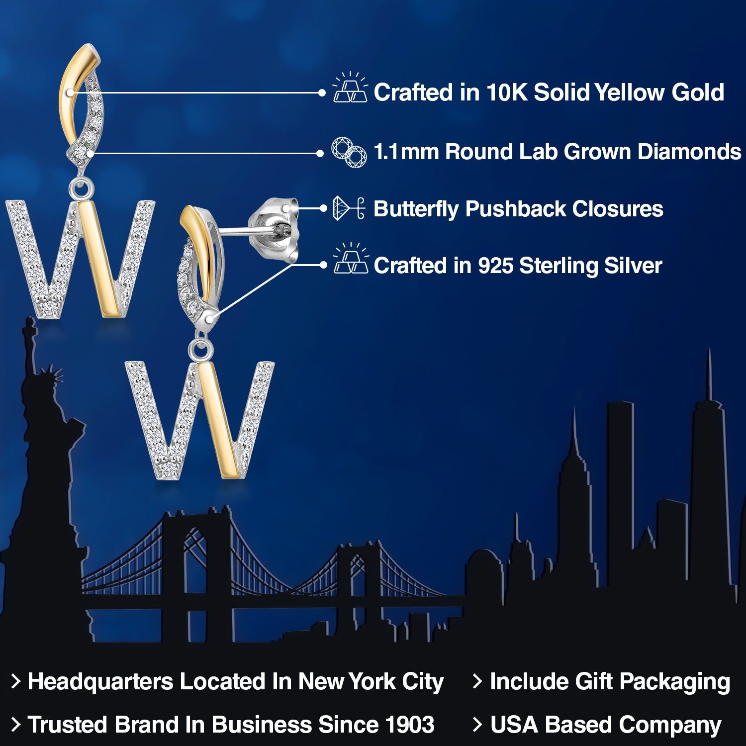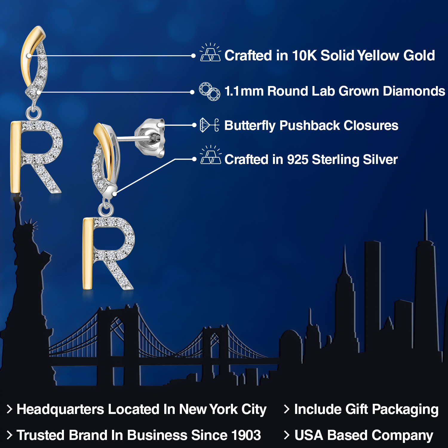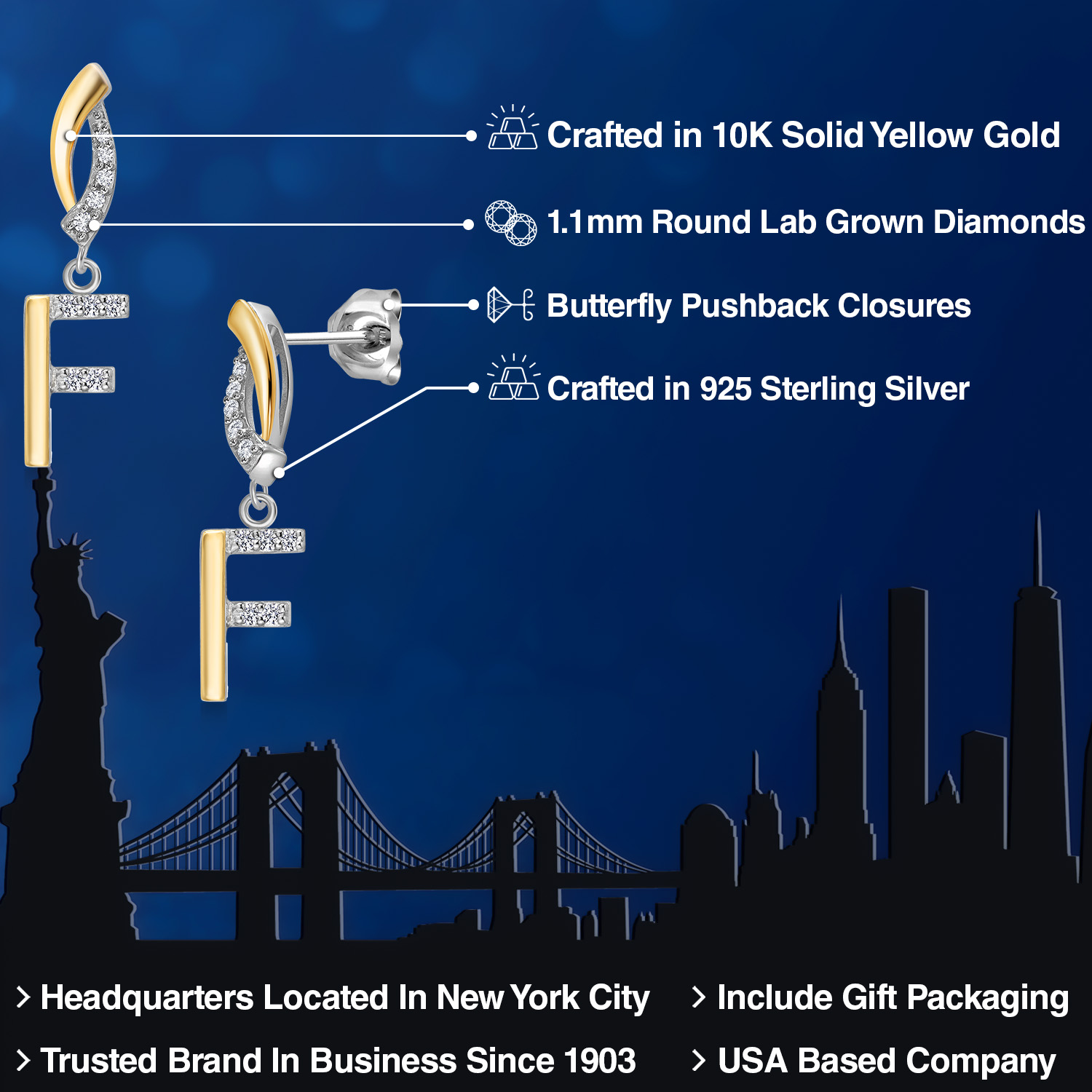 HARMONY OF YELLOW GOLD AND STERLING SILVER: Meticulously designed with the perfect harmony of 10K yellow gold and 925 sterling silver, these earrings strike a balance between warmth and timeless elegance. The dual-tone design ensures versatility and sophistication.