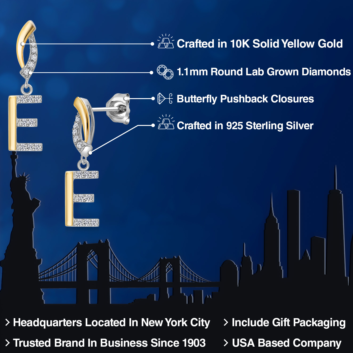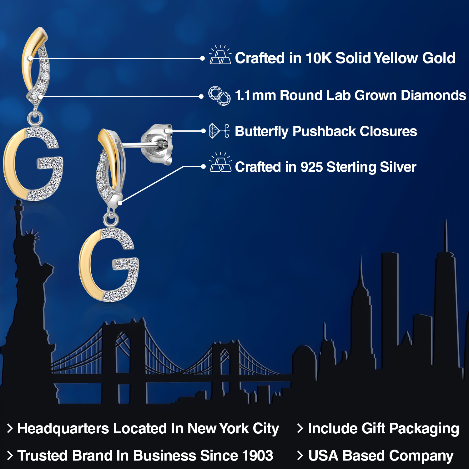 DAZZLING WHITE LAB GROWN DIAMOND ACCENTS: The initial letter charm is adorned with dazzling white lab grown diamonds, creating a captivating play of light. The carefully selected lab grown diamond adds a touch of glamour to the earrings, making it a standout piece.