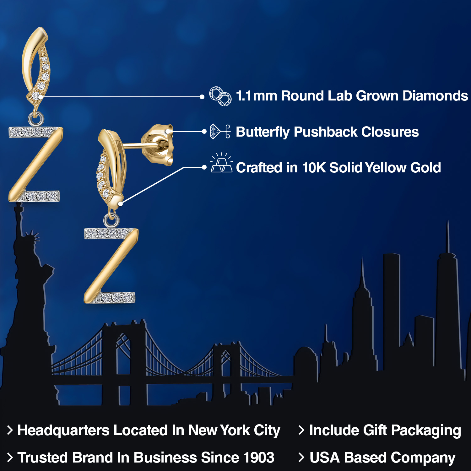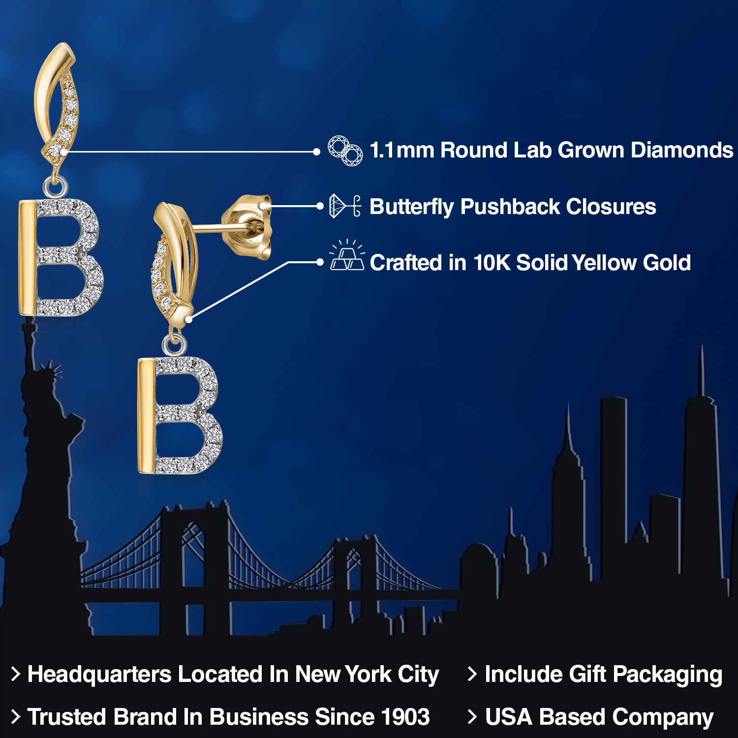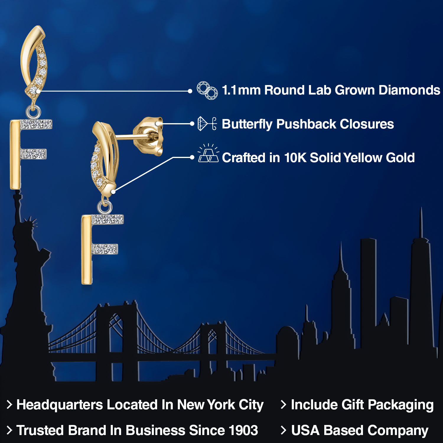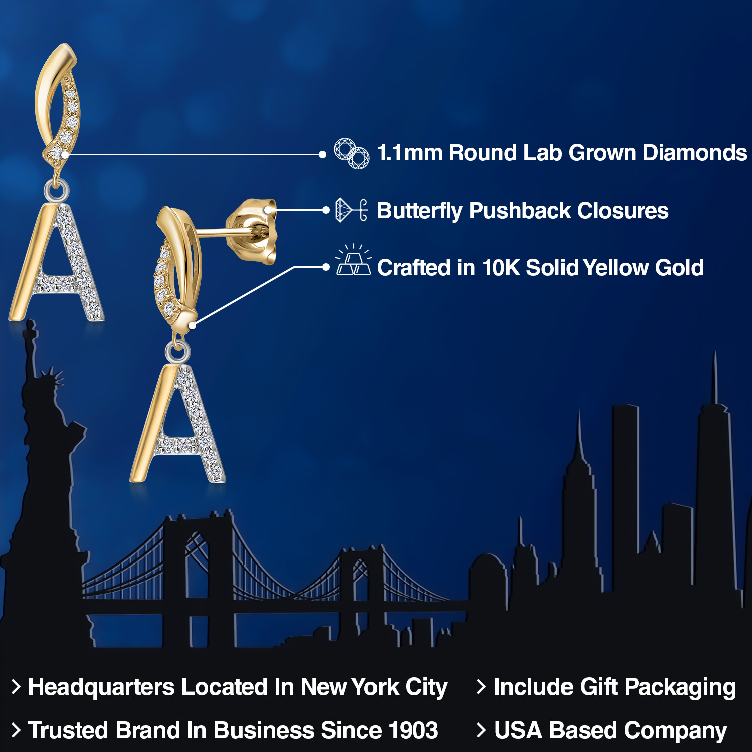 Initial Earrings Letter A to Z Alphabet | 10K Yellow Gold and 925 Sterling Silver | White Lab Grown Diamond | Gift Women Mother's Day Wife Mom Girlfriend Anniversary Birthday | By Keren Hanan