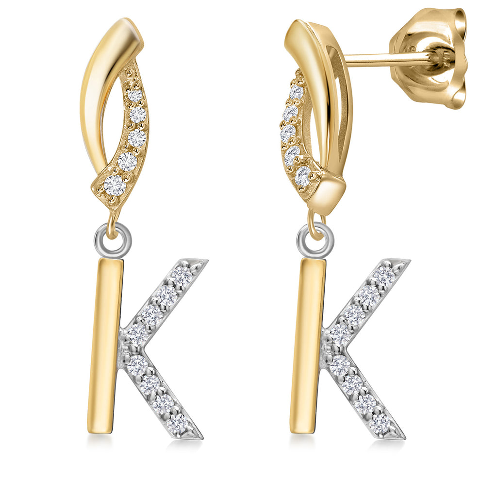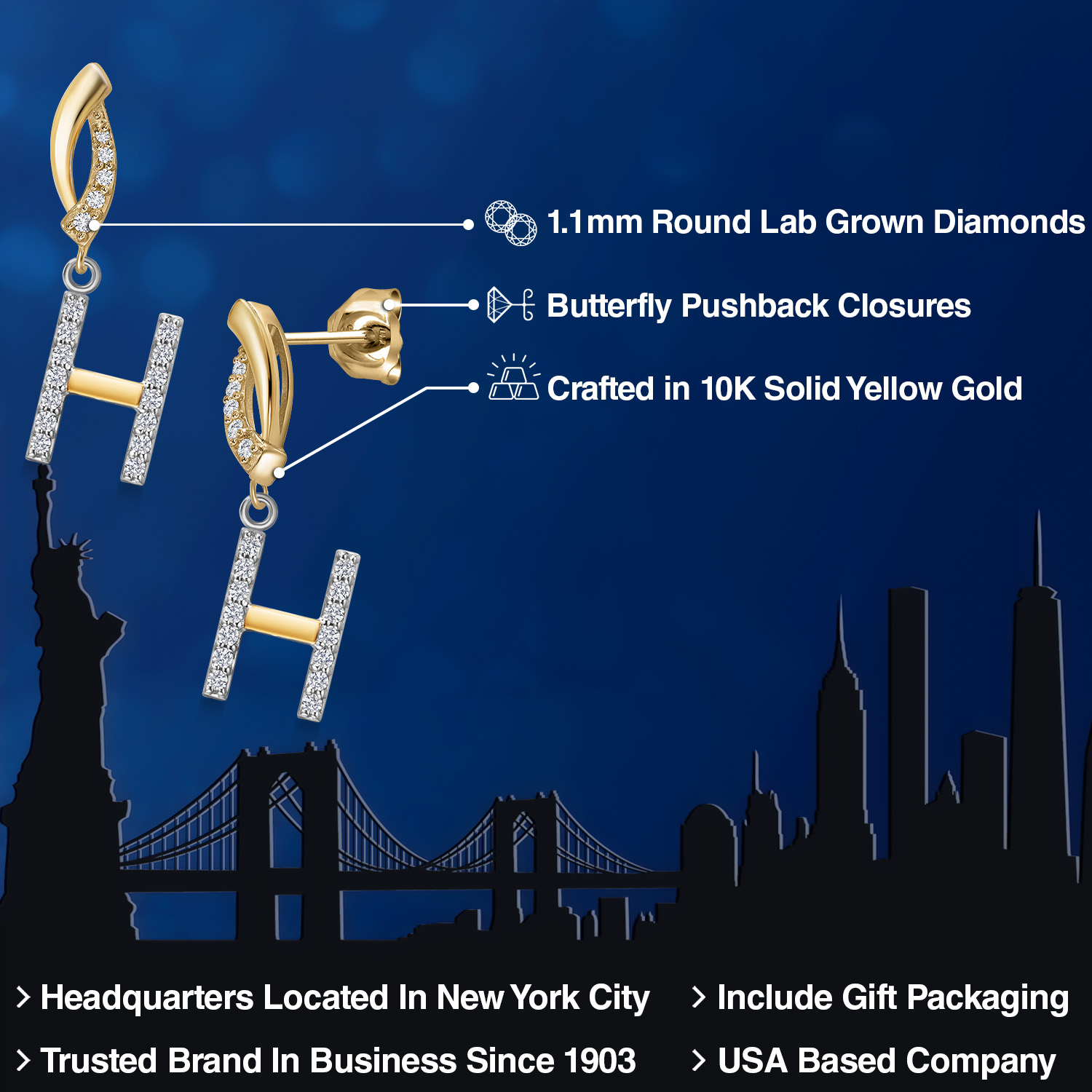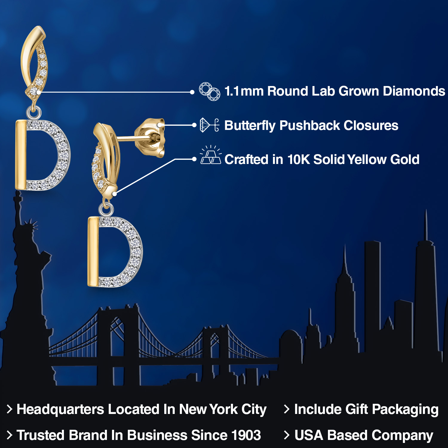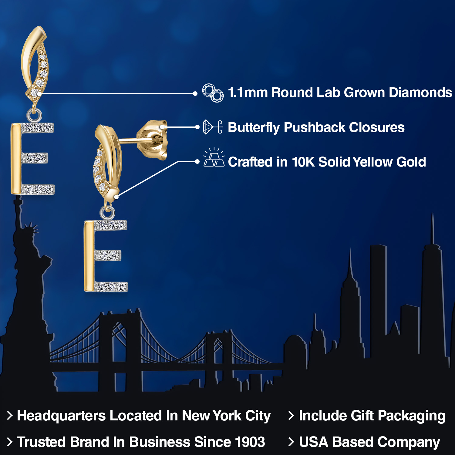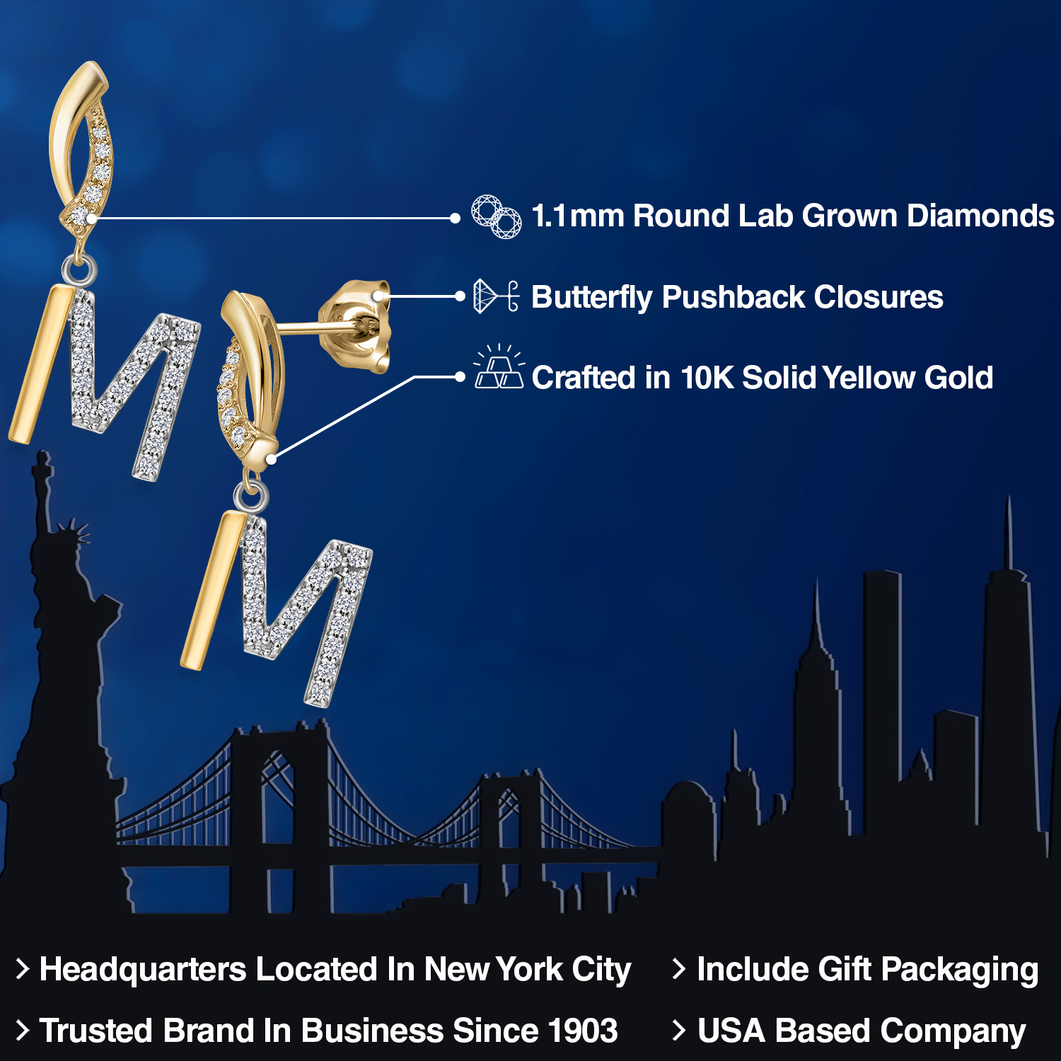 Initial Earrings Letter A to Z Alphabet | 10K Yellow Gold and 925 Sterling Silver | White Lab Grown Diamond | Gift Women Mother's Day Wife Mom Girlfriend Anniversary Birthday | By Keren Hanan