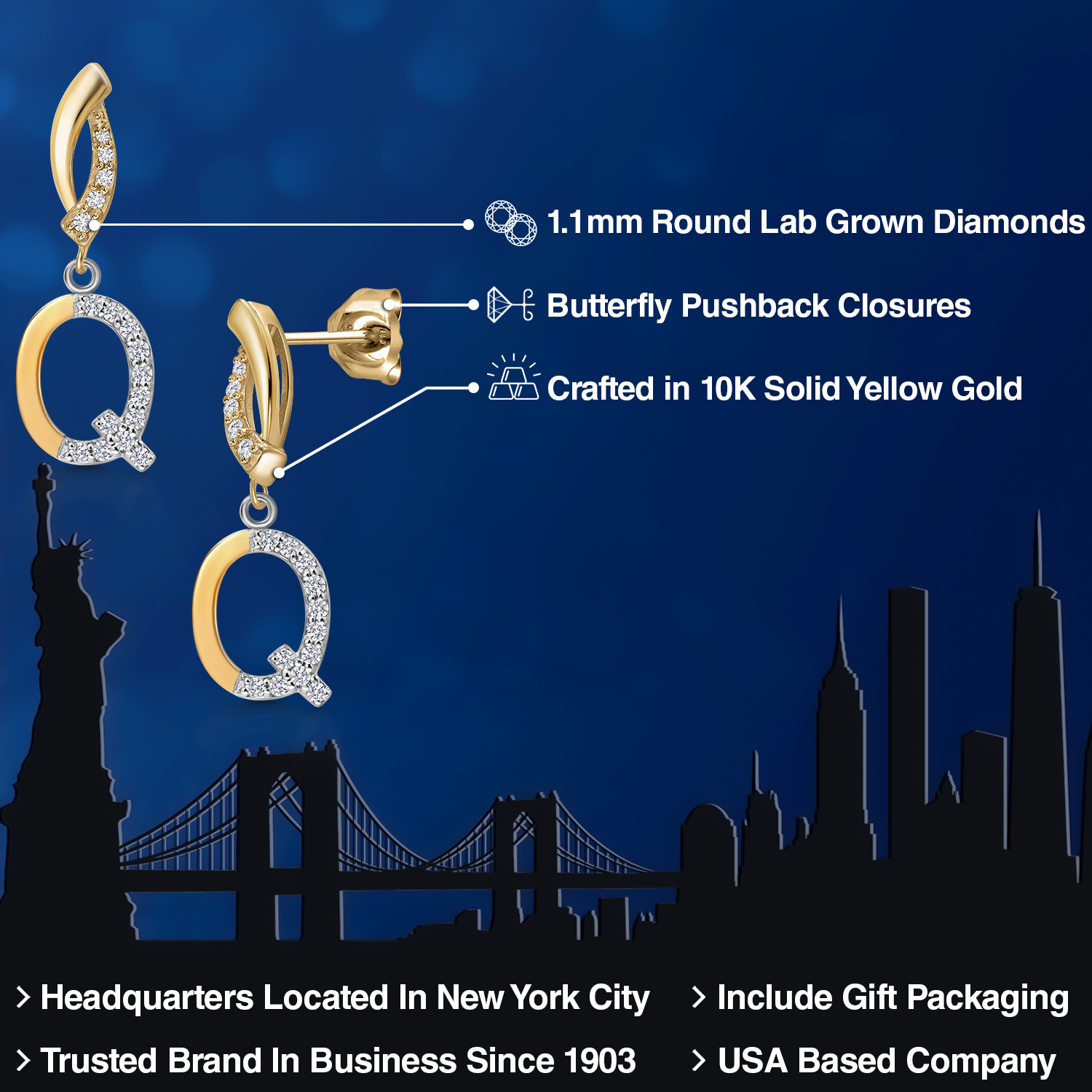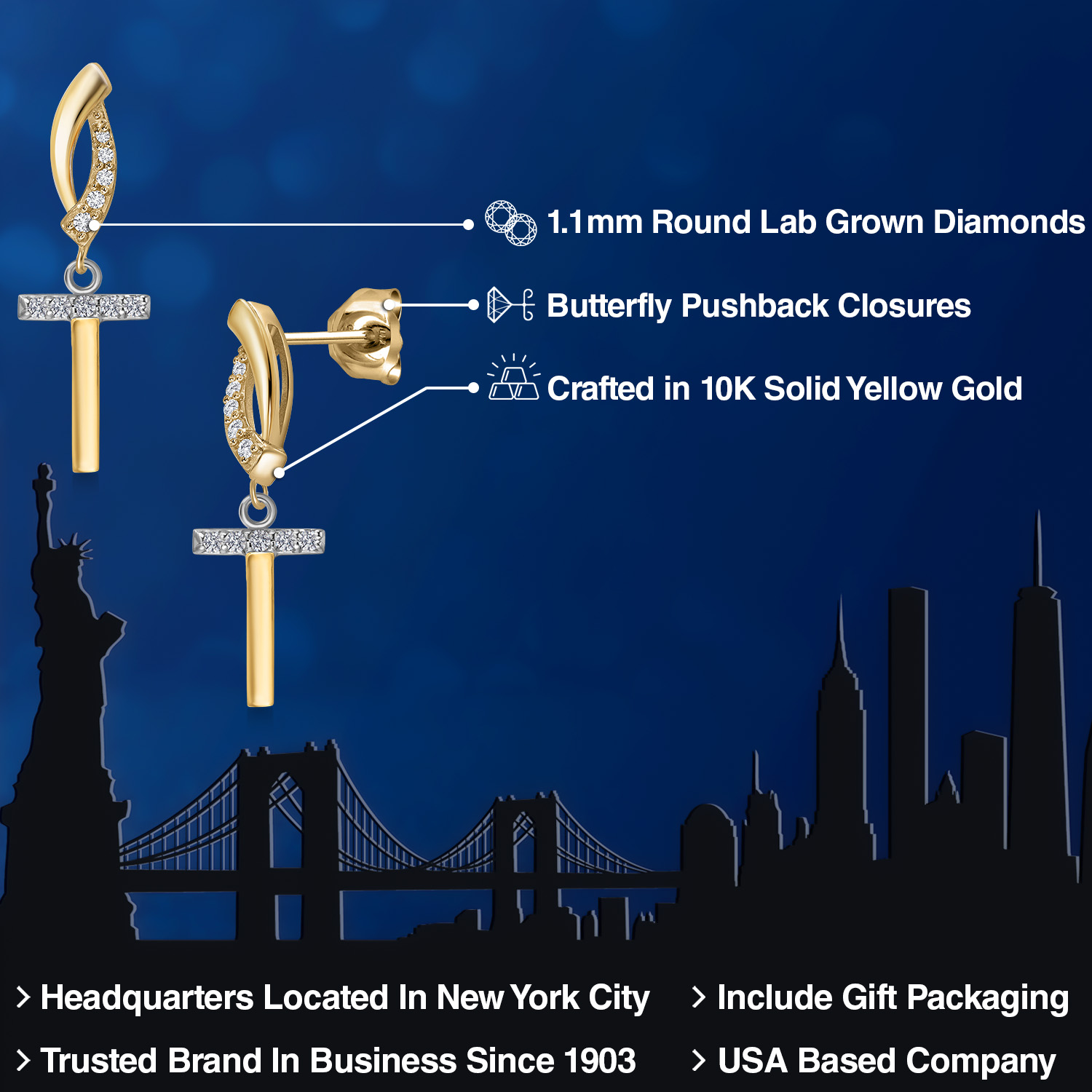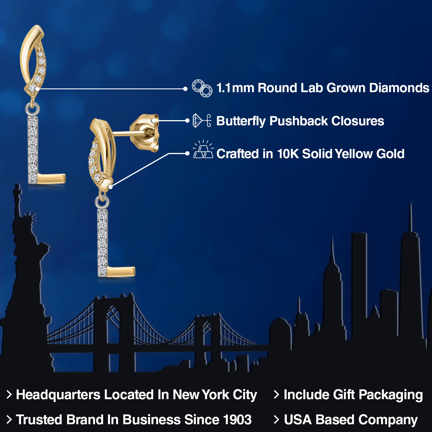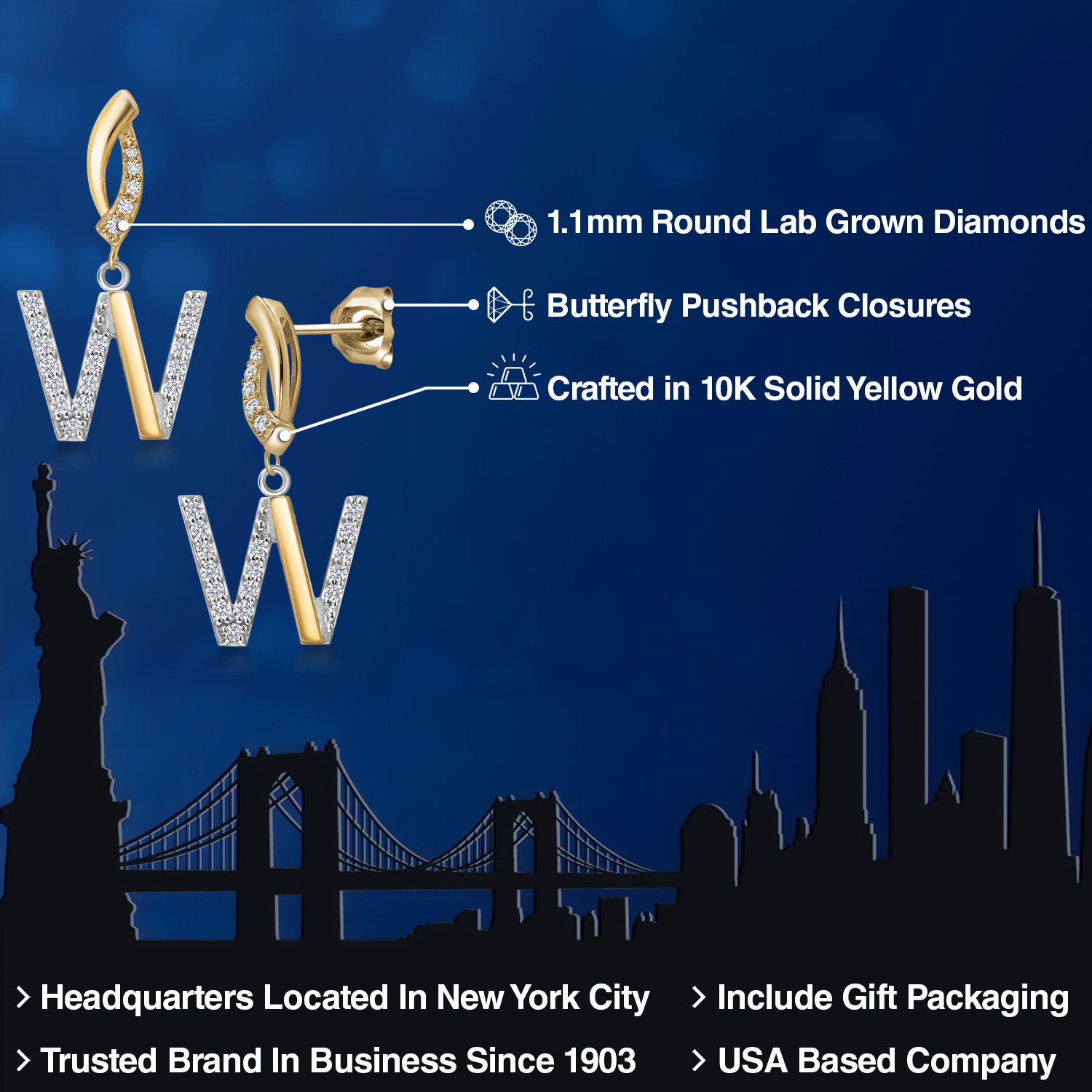 Initial Earrings Letter A to Z Alphabet | 10K Yellow Gold and 925 Sterling Silver | White Lab Grown Diamond | Gift Women Mother's Day Wife Mom Girlfriend Anniversary Birthday | By Keren Hanan
