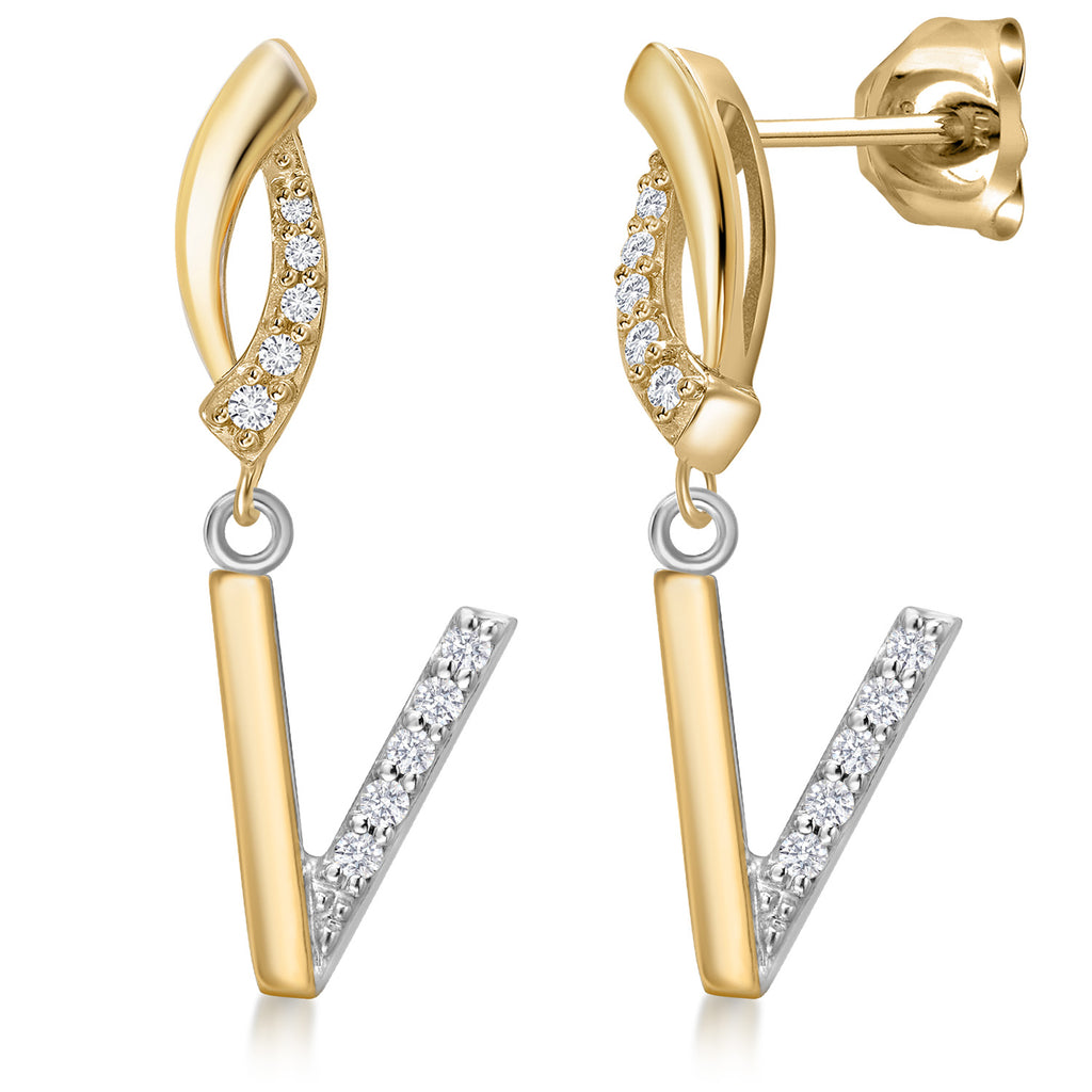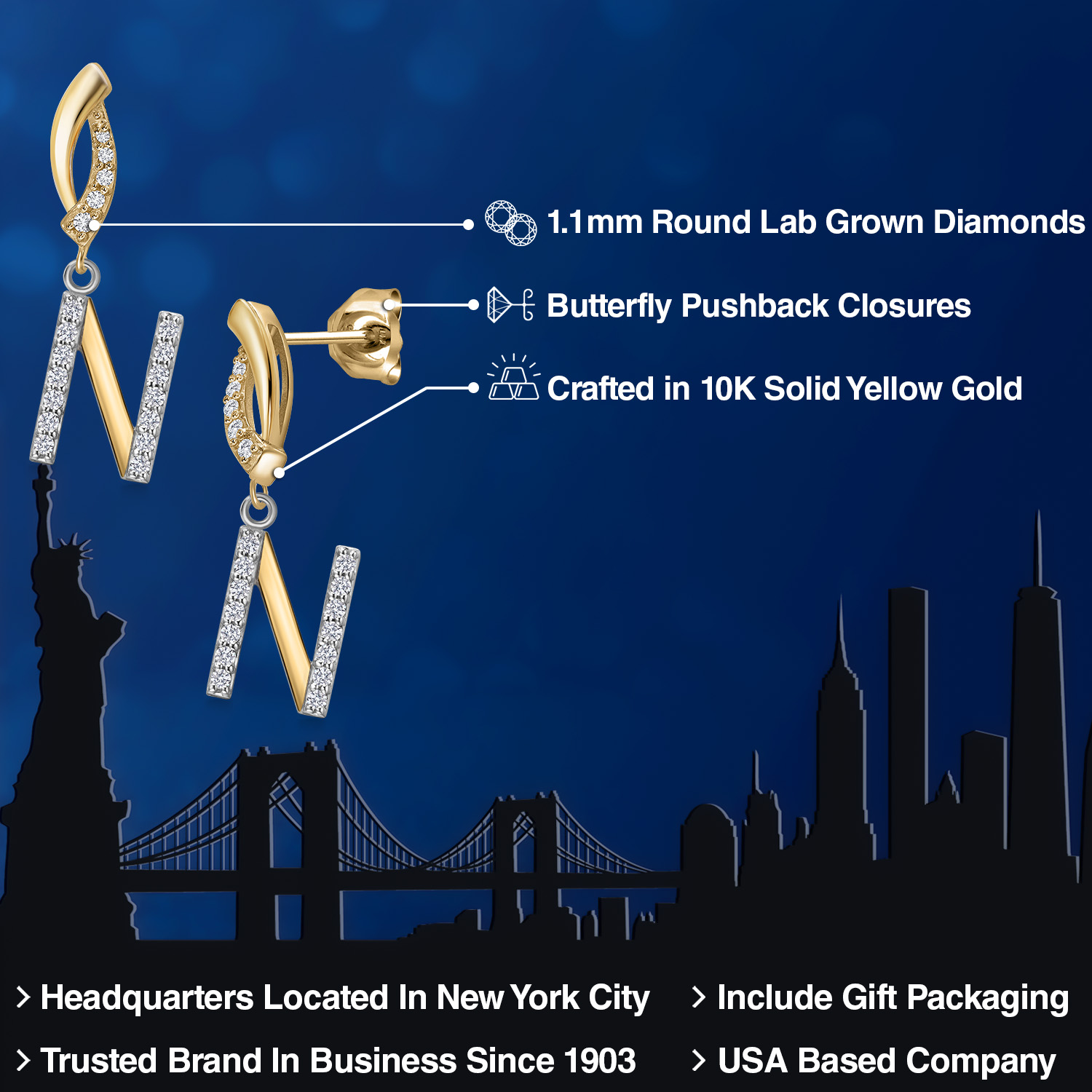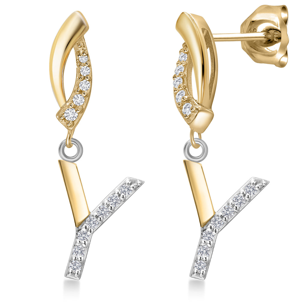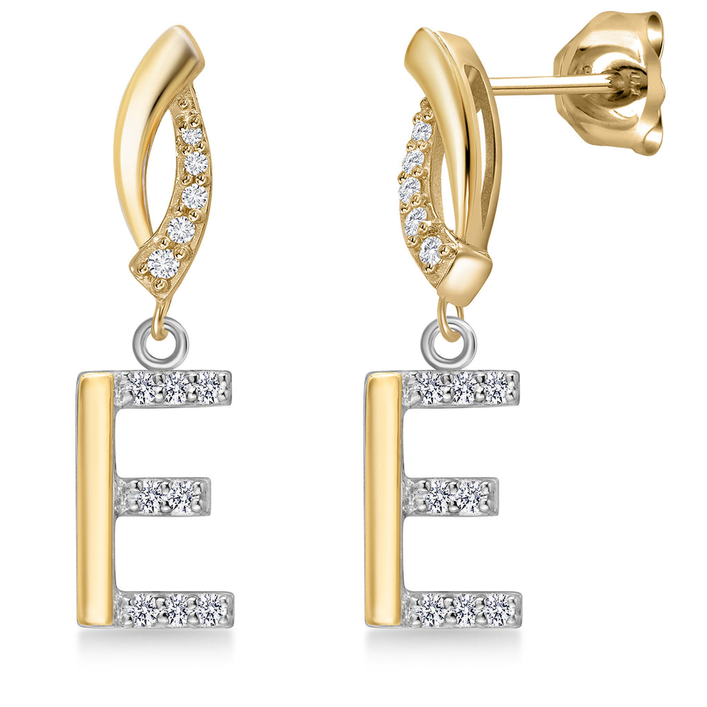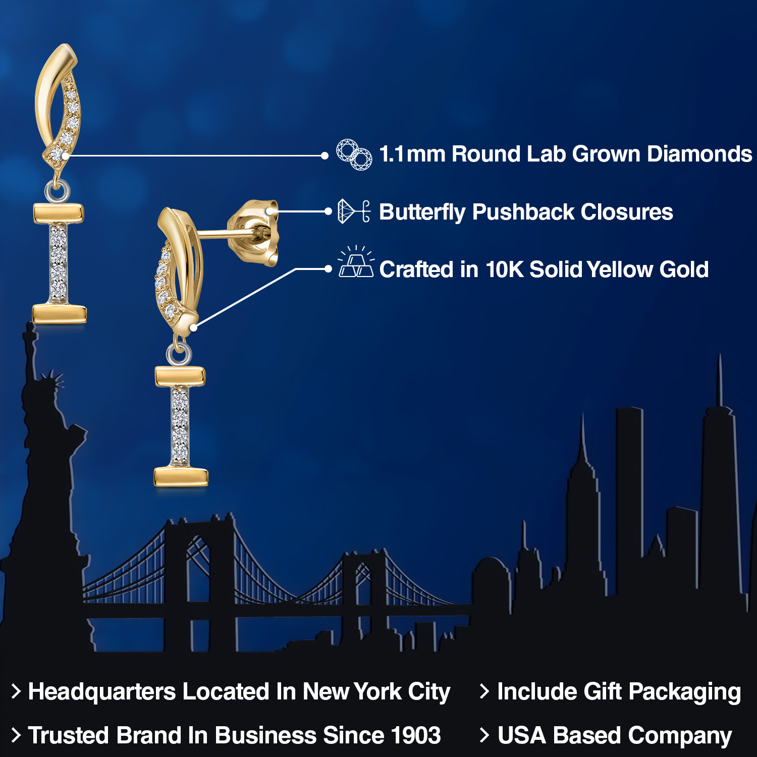Initial Earrings Letter A to Z Alphabet | 10K Yellow Gold and 925 Sterling Silver | White Lab Grown Diamond | Gift Women Mother's Day Wife Mom Girlfriend Anniversary Birthday | By Keren Hanan