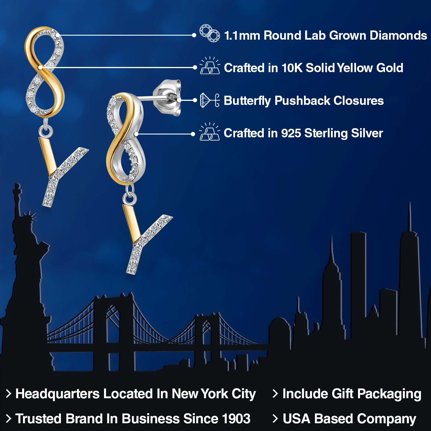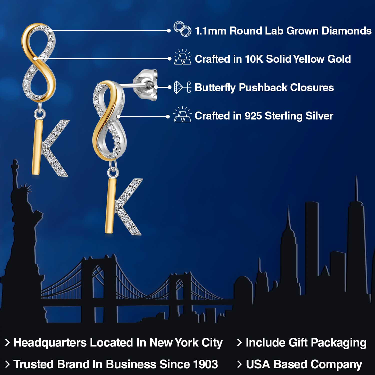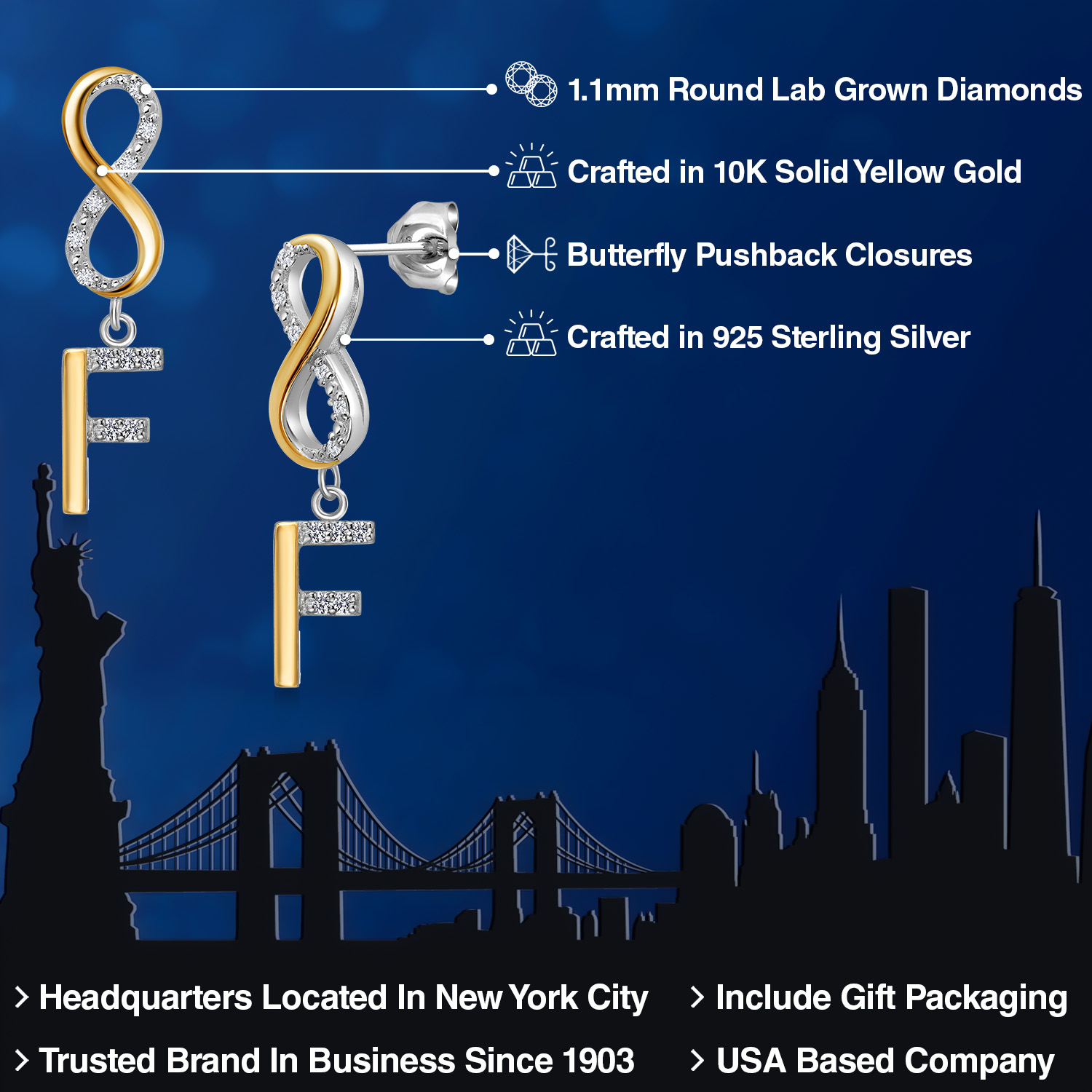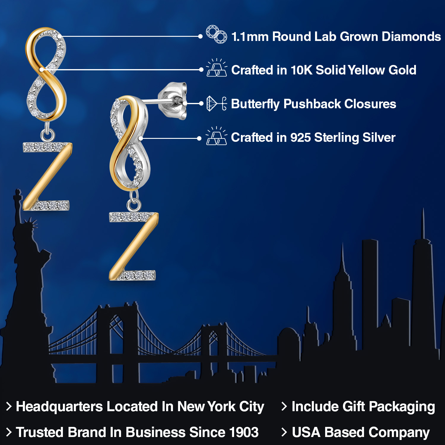 Initial Earrings Letter A to Z Alphabet | 10K Yellow Gold and 925 Sterling Silver | White Lab Grown Diamond | Gift Women Mother's Day Wife Mom Girlfriend Anniversary Birthday | By Keren Hanan