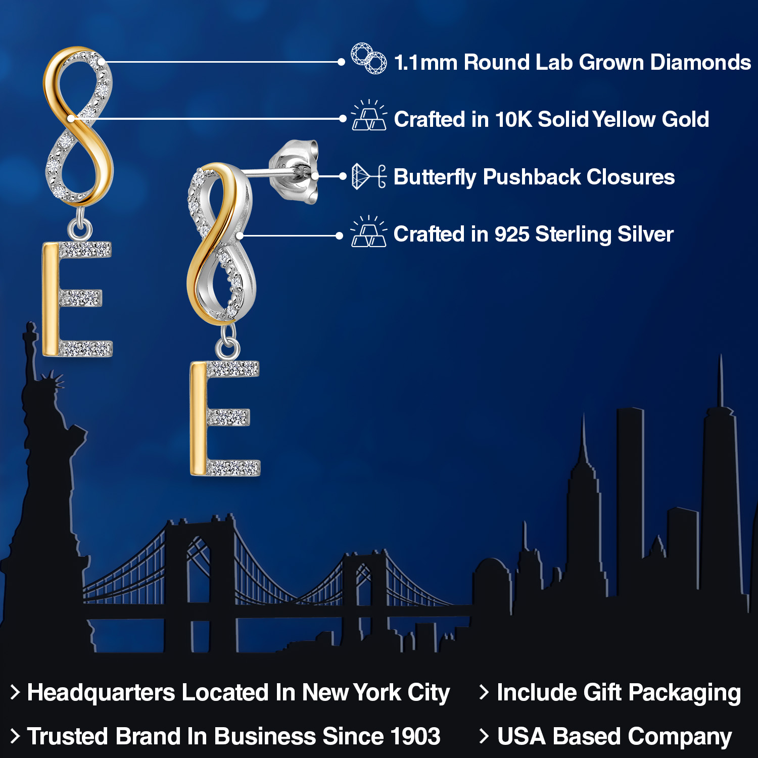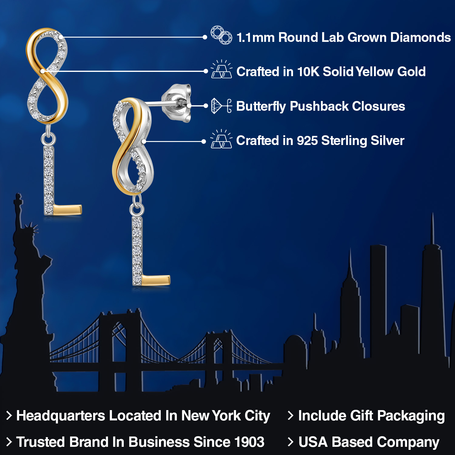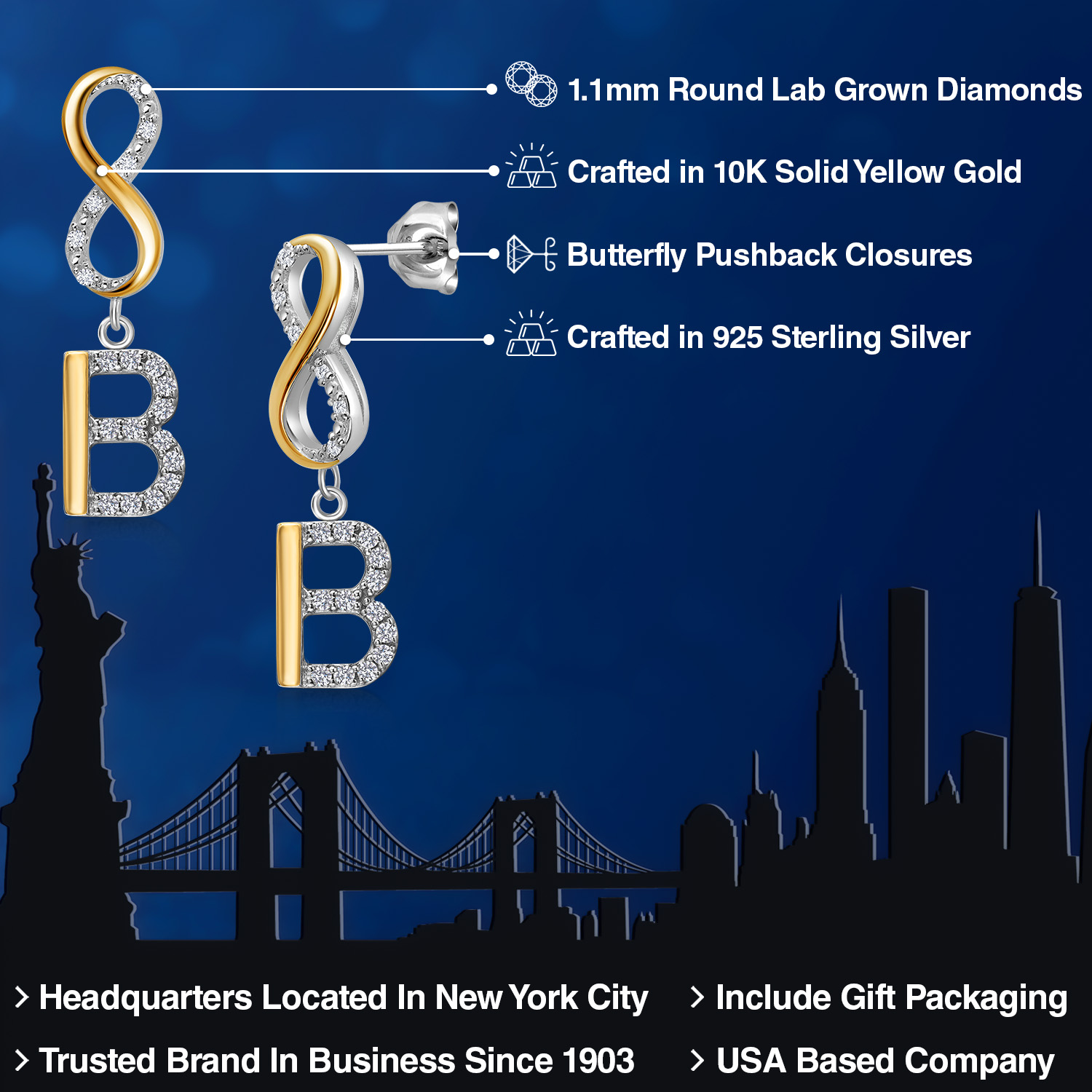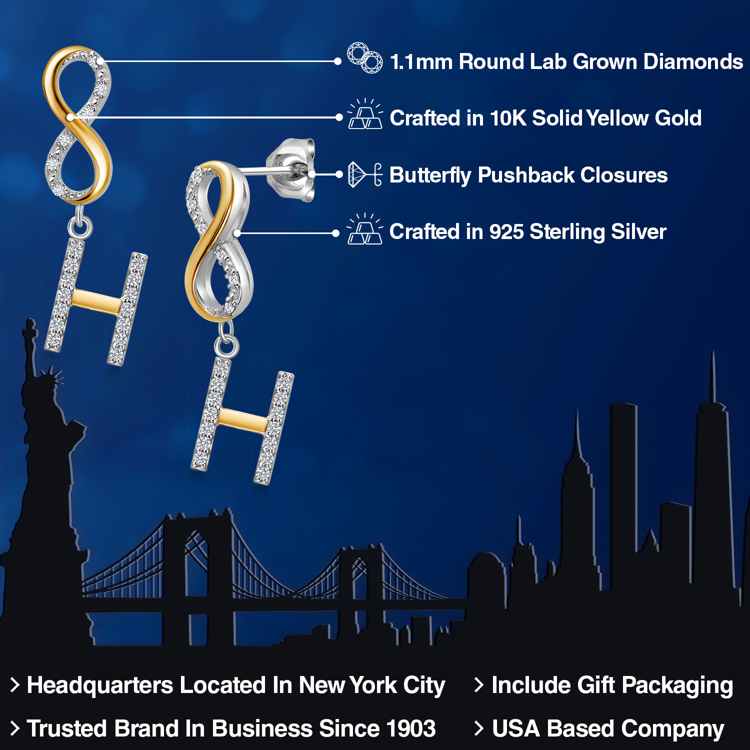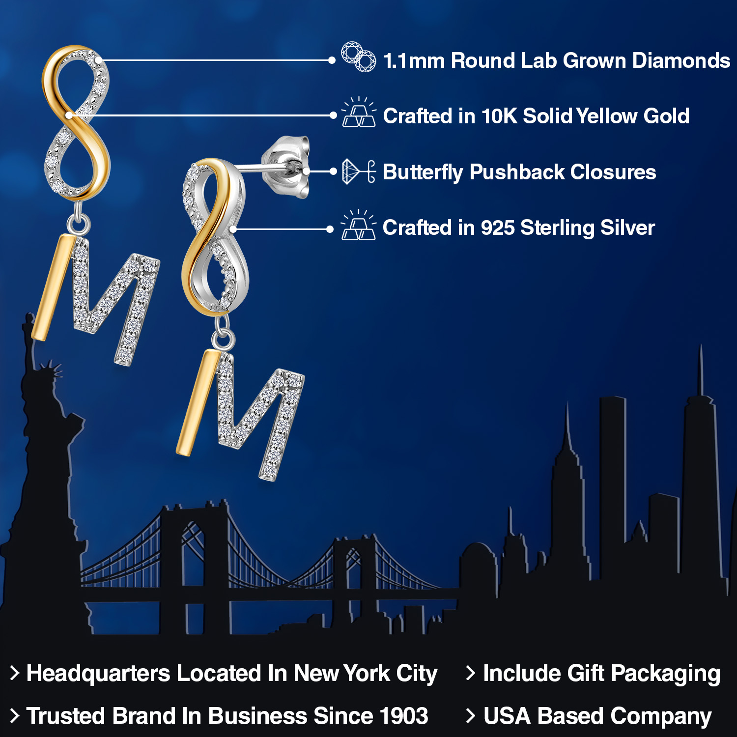 Initial Earrings Letter A to Z Alphabet | 10K Yellow Gold and 925 Sterling Silver | White Lab Grown Diamond | Gift Women Mother's Day Wife Mom Girlfriend Anniversary Birthday | By Keren Hanan