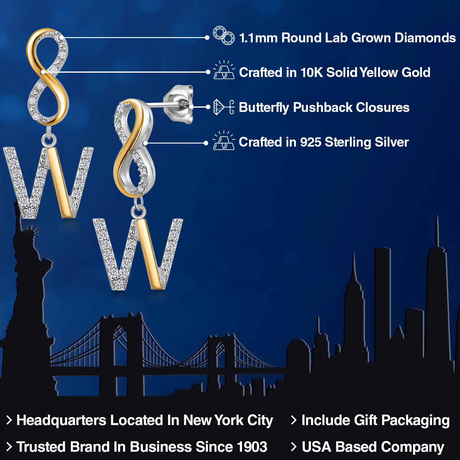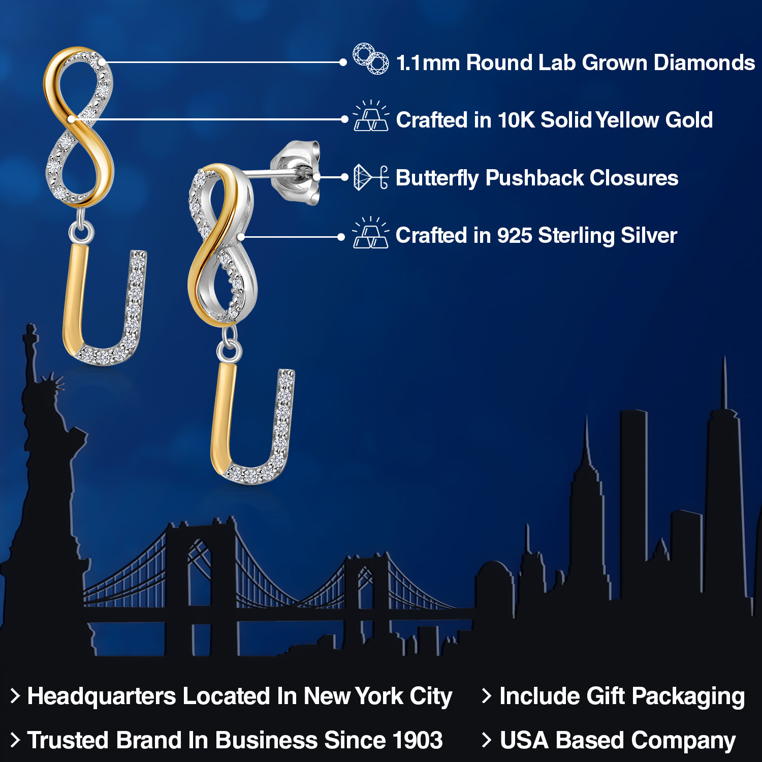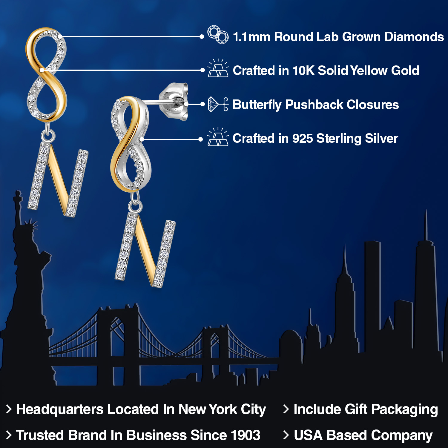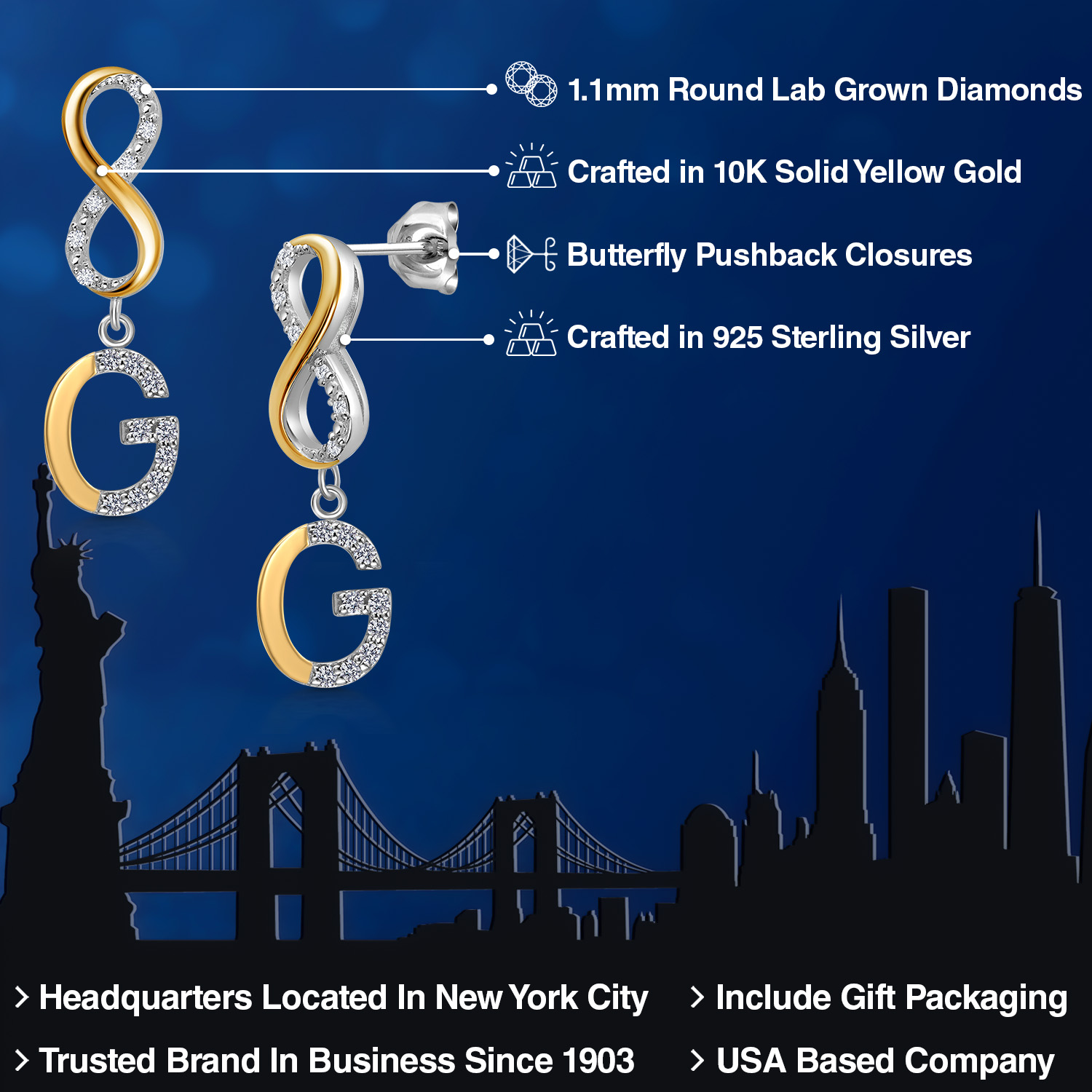 Initial Earrings Letter A to Z Alphabet | 10K Yellow Gold and 925 Sterling Silver | White Lab Grown Diamond | Gift Women Mother's Day Wife Mom Girlfriend Anniversary Birthday | By Keren Hanan