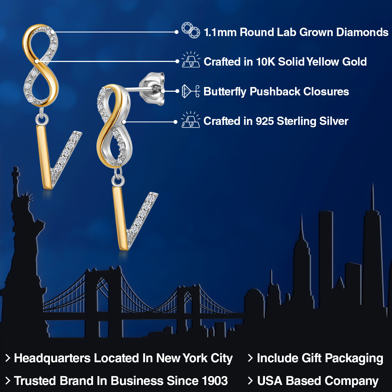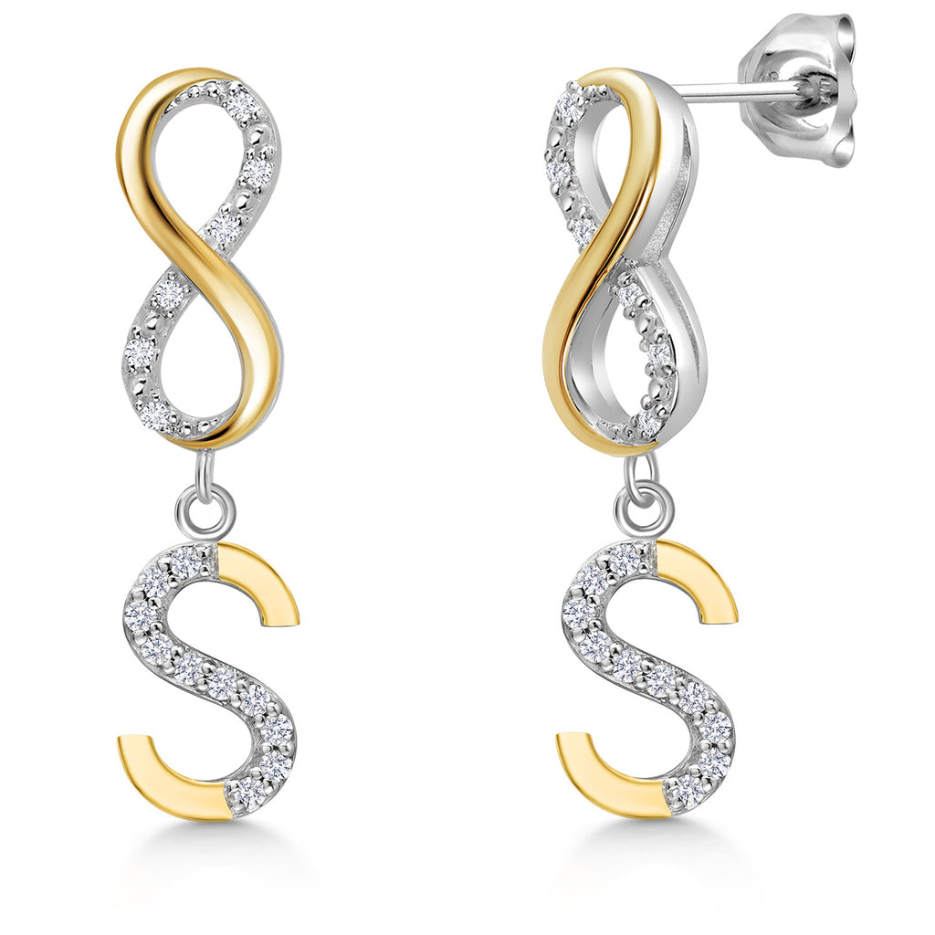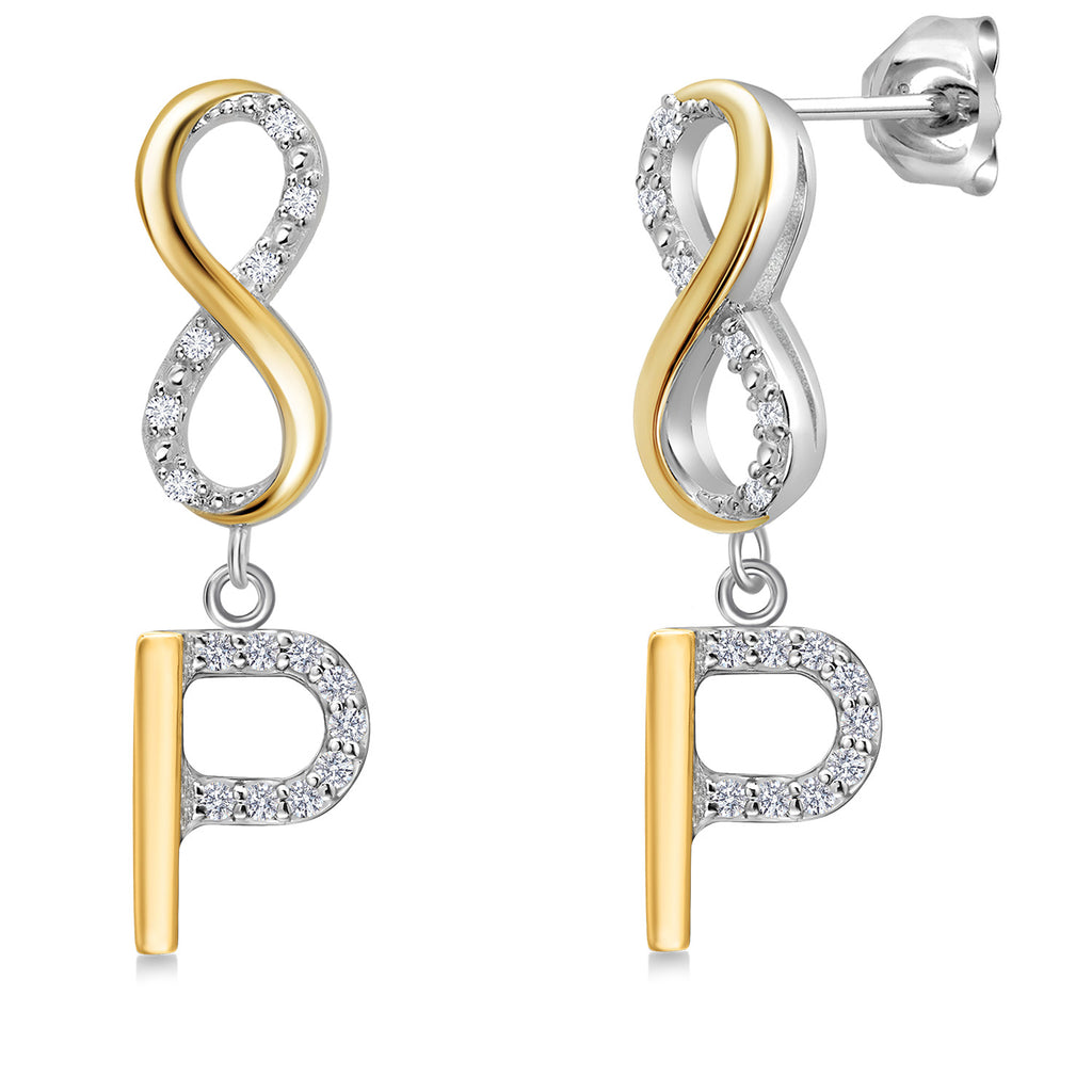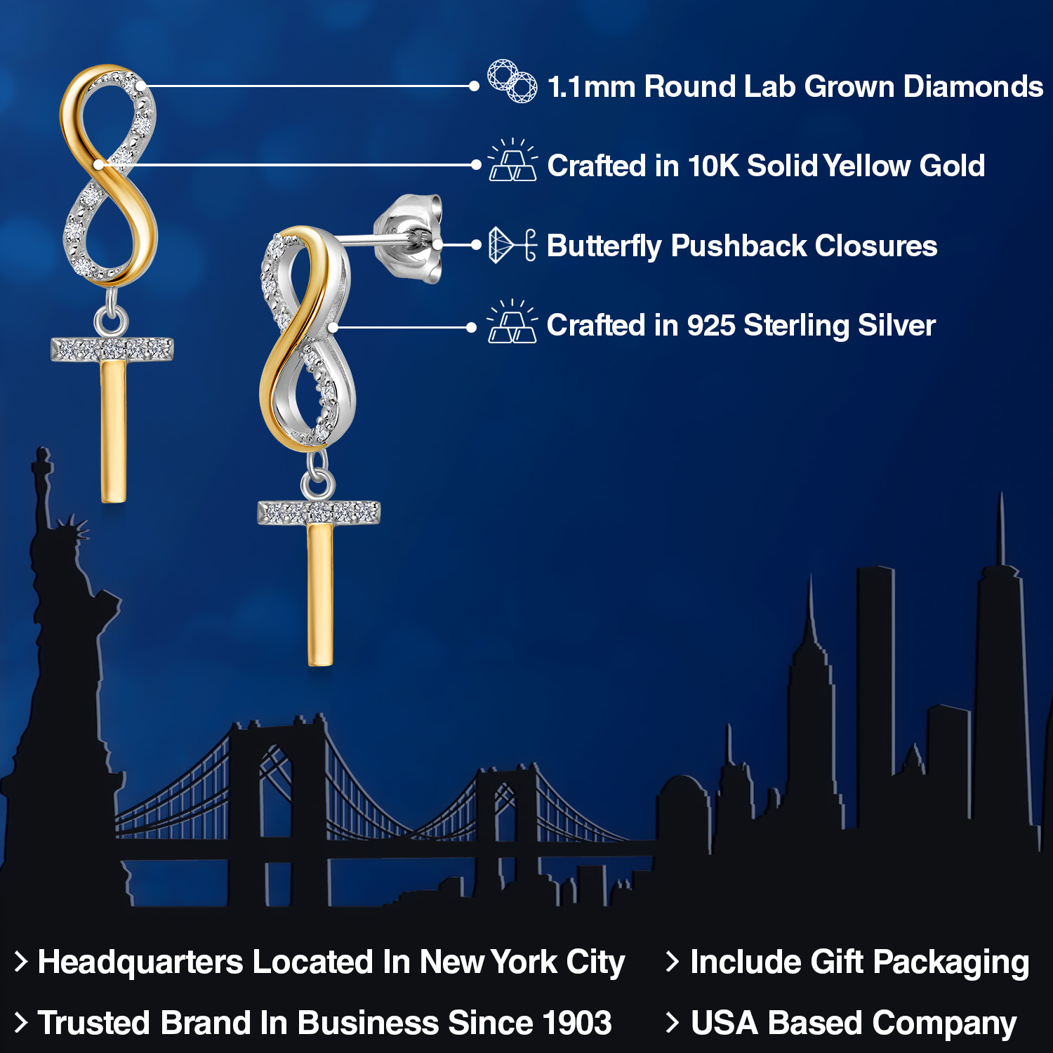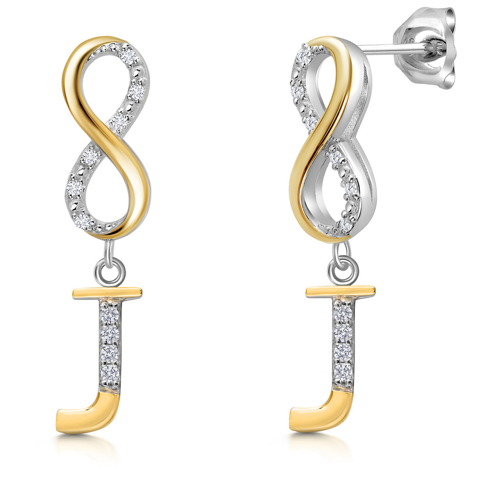 Initial Earrings Letter A to Z Alphabet | 10K Yellow Gold and 925 Sterling Silver | White Lab Grown Diamond | Gift Women Mother's Day Wife Mom Girlfriend Anniversary Birthday | By Keren Hanan