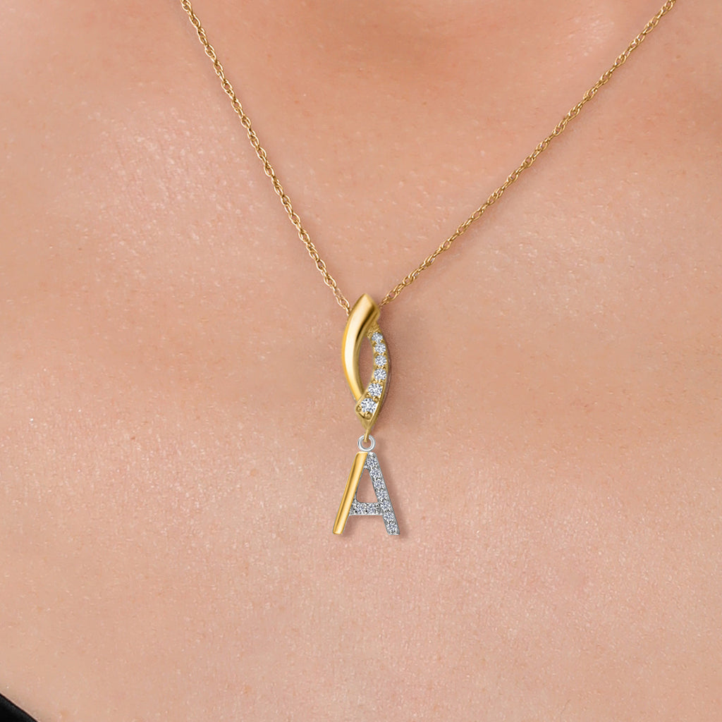 Initial Necklace Letter A to Z Alphabet | 10K Yellow Gold and 925 Sterling Silver | Lab Grown Diamond | Gift Women Mother's Day Wife Mom Girlfriend Anniversary Birthday | By Keren Hanan