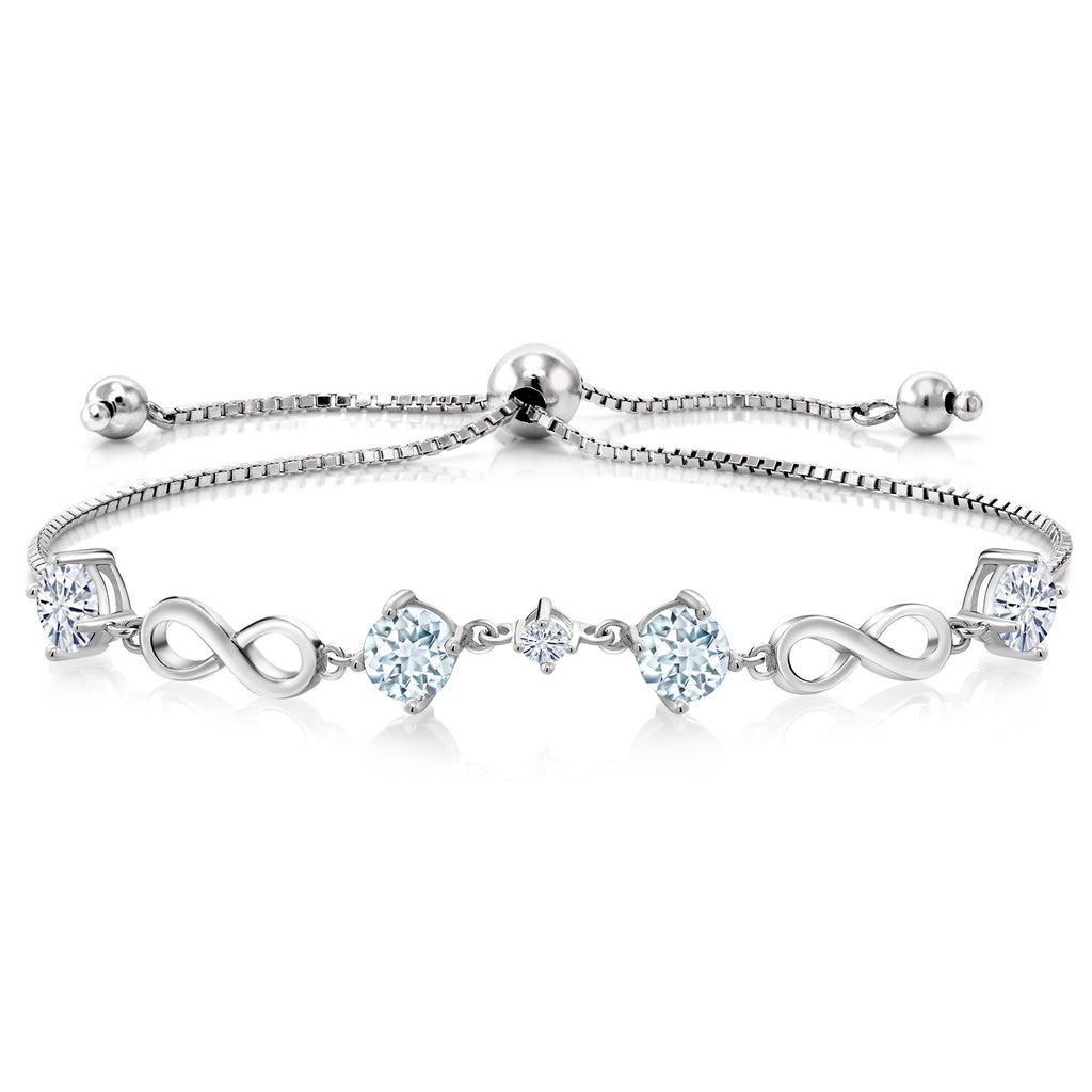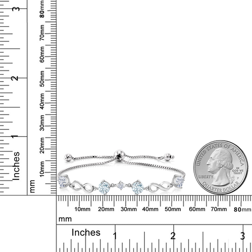 ROUND AQUAMARINE AND WHITE MOISSANITE GEMSTONES: This elegant bracelet features sparkling sky-blue aquamarines paired with brilliant white moissanite stones totaling 2.07 carats. The serene March birthstone symbolizes tranquility, clarity, and timeless elegance.