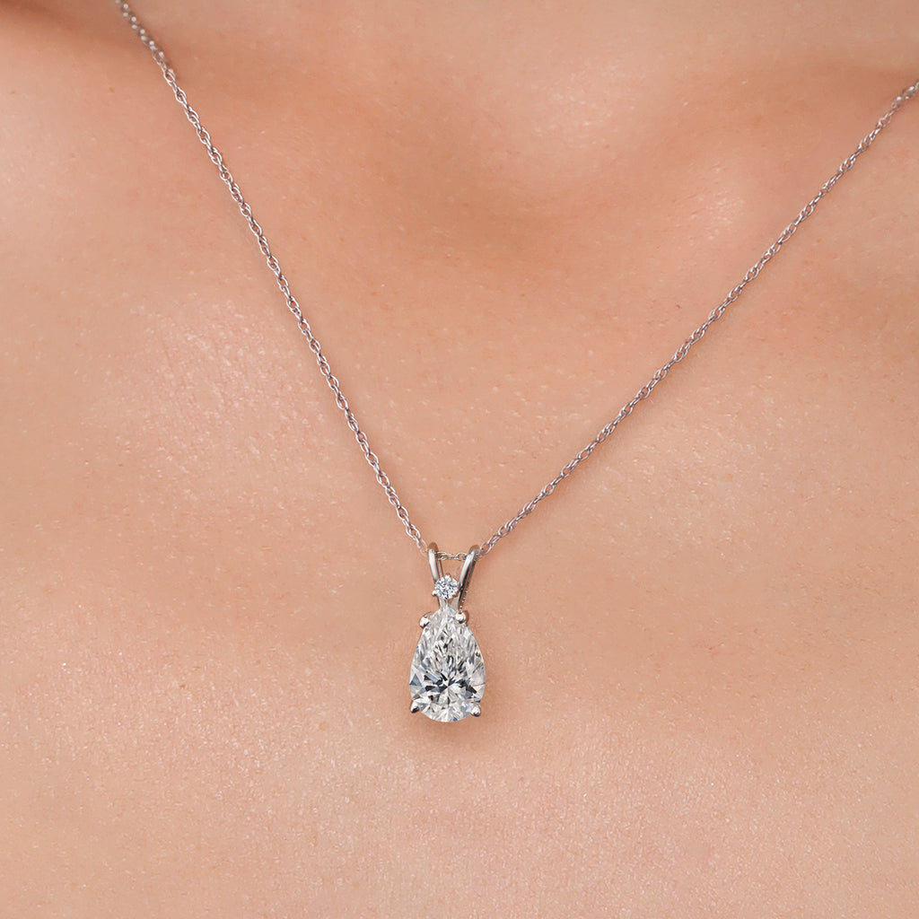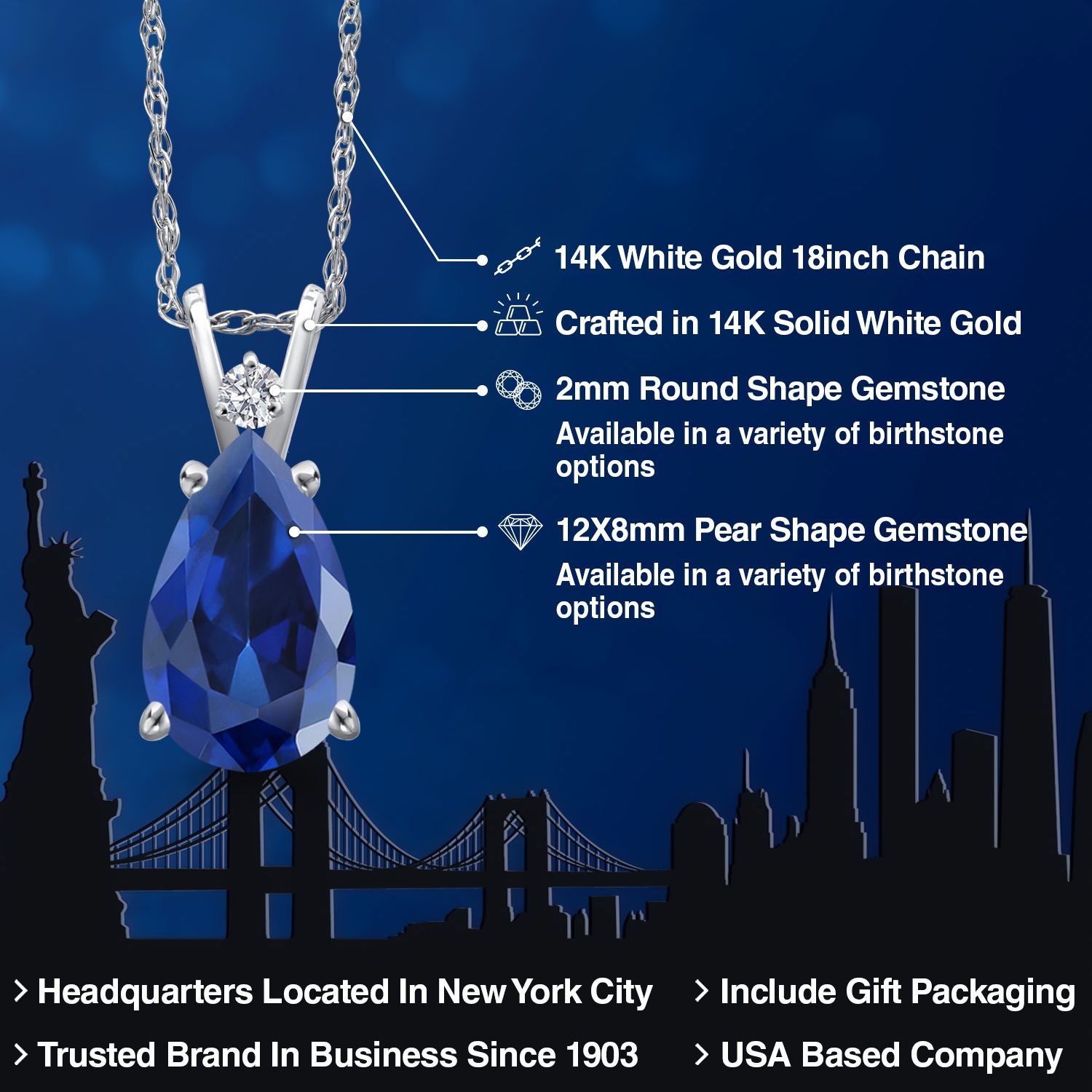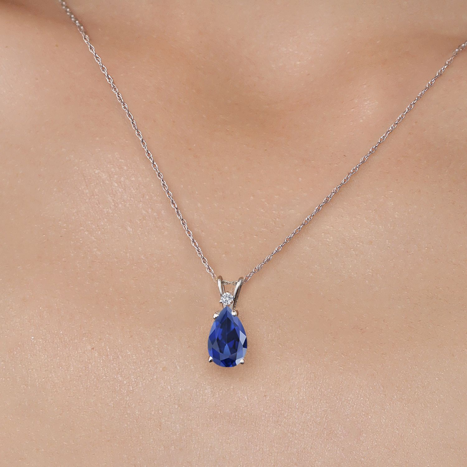 SOPHISTICATED DESIGN ENHANCEMENT: A 2mm round lab-grown diamond sits elegantly above the pear-shaped gemstone, adding depth and brilliance. The teardrop design with a high-polish finish creates a harmonious blend of sophistication and modern style, ideal for any occasion.