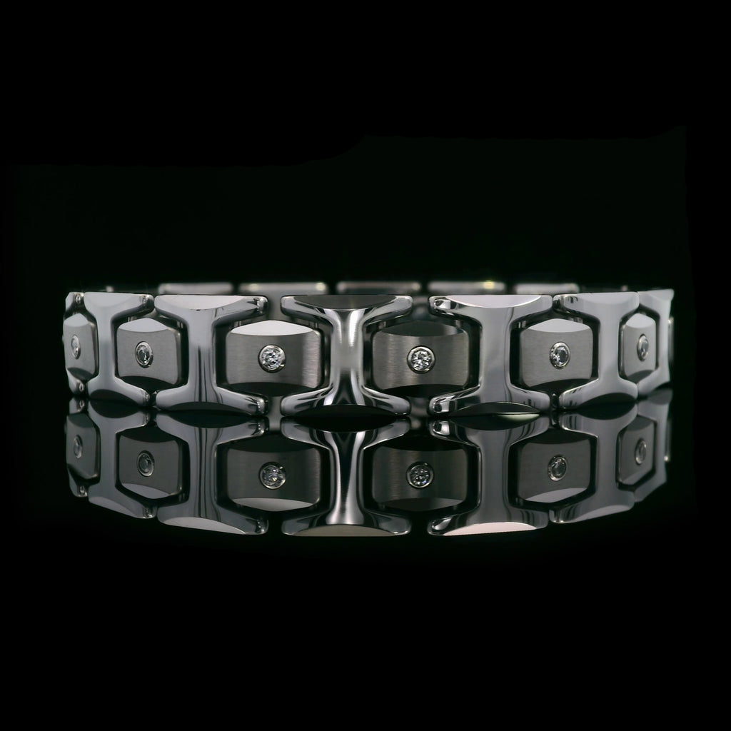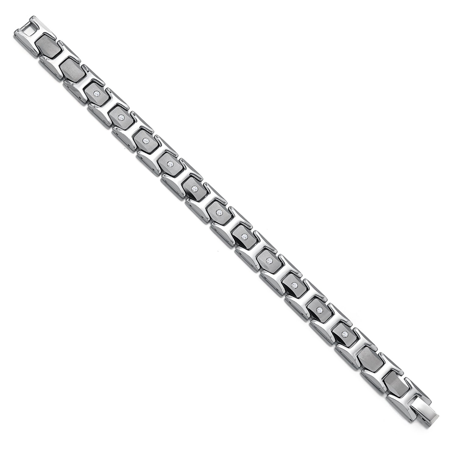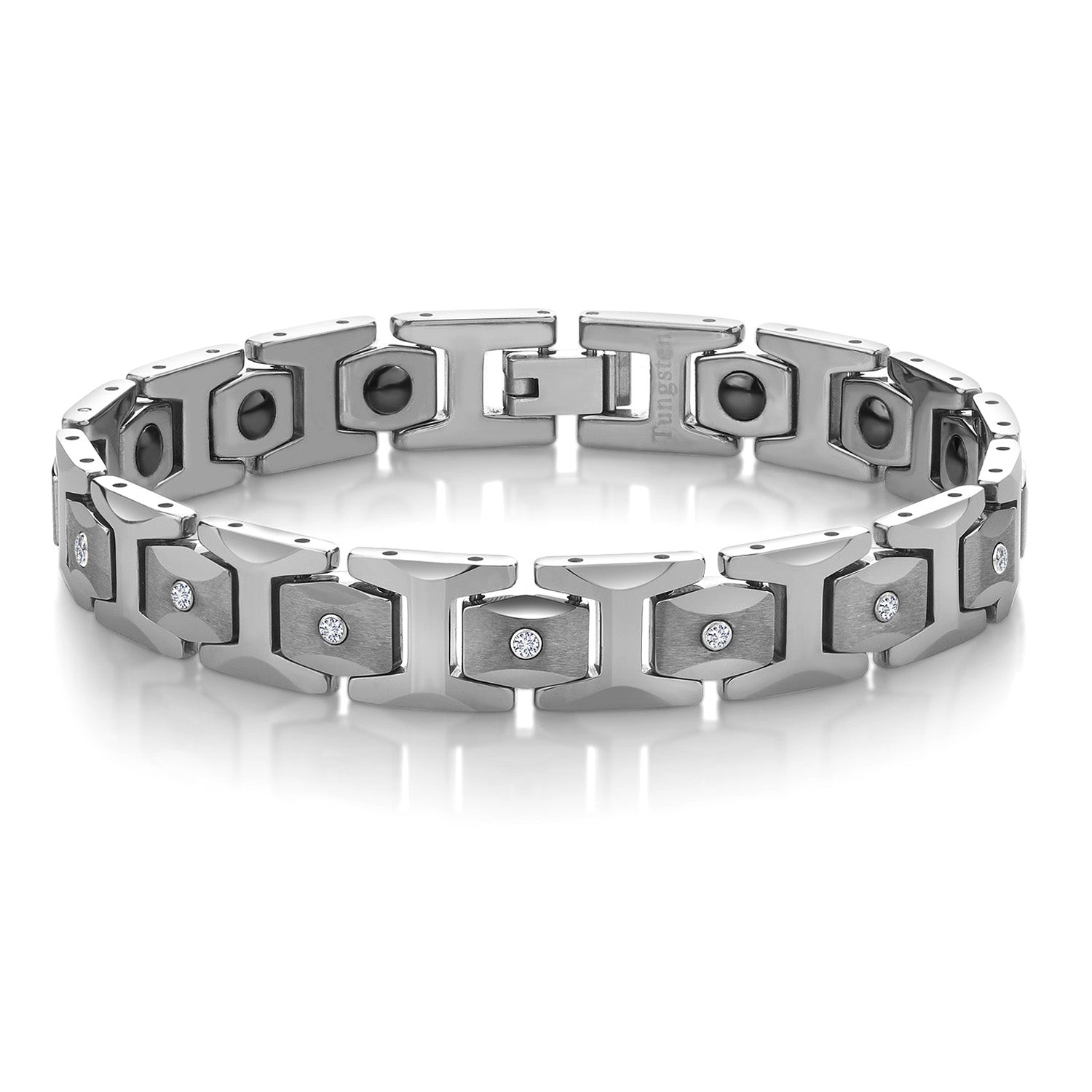 SOPHISTICATED DESIGN: Elevate your style with this sleek and modern men's bracelet. It features a unique combination of brushed finished tungsten links and shiny polished connector links, creating a sophisticated and eye-catching look. 8 Inches in Length with Safety Clasp