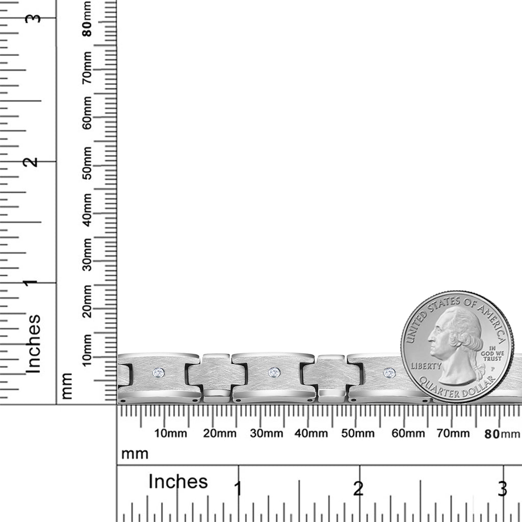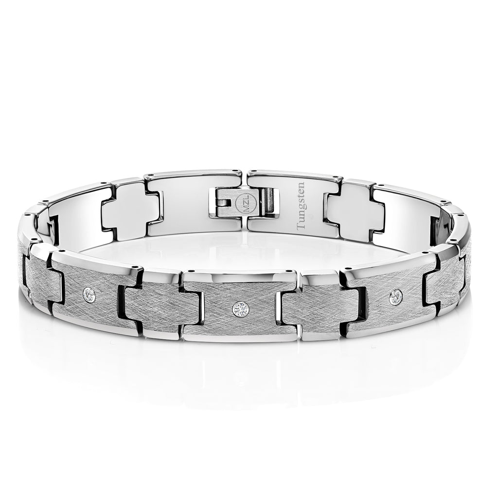 Men’s 3 Round Lab Grown Diamonds Satin and Polish Finish Tungsten Carbide Bracelet