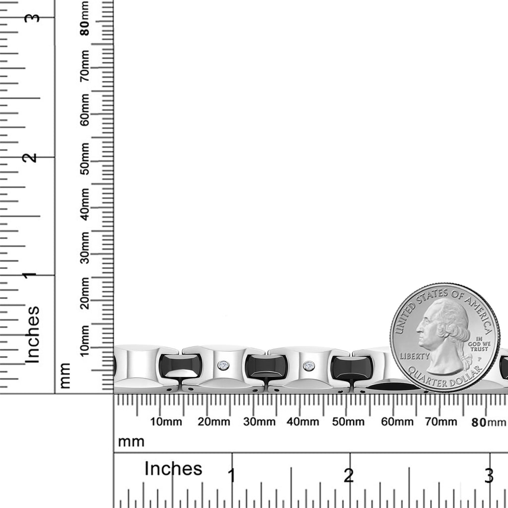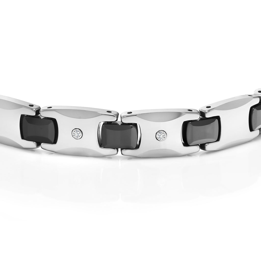 Men’s Shiny Polished Diamond Tungsten Bracelet with Black Plated Connector Links