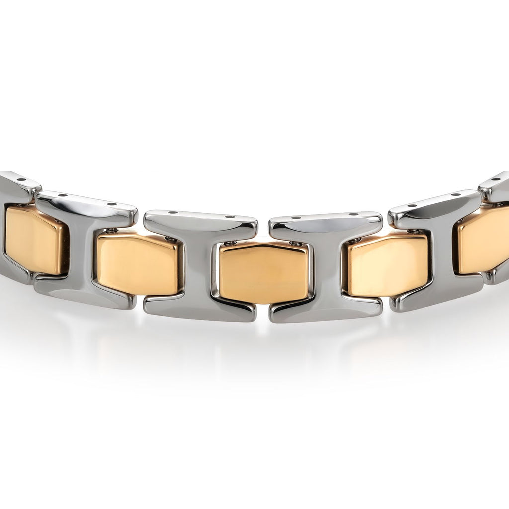 Men’s Solid Silver and Gold IP Shiny Polished Tungsten Link Bracelet 8.25 Inches in Length with Fold Over Safety Clasp