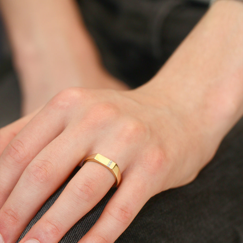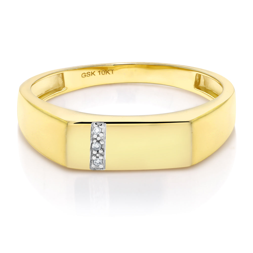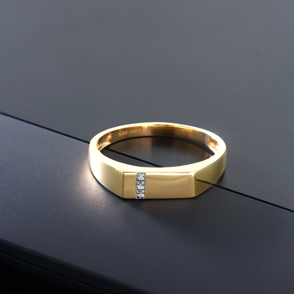 Men's 10K Solid Yellow Gold White Diamond Wedding Anniversary Ring