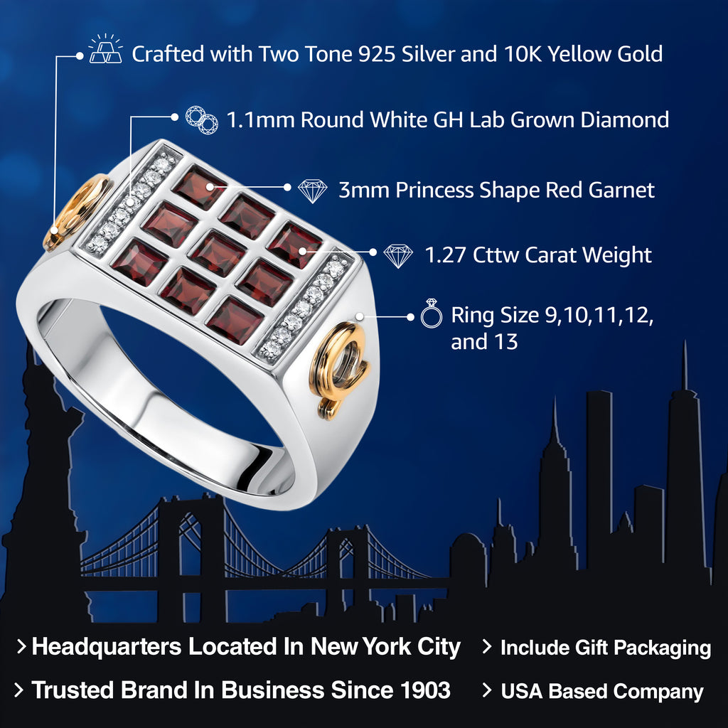 Elegant White Lab Grown Diamond Accents - Enhancing the bold look of the red garnet are white lab-grown diamonds. These diamonds are ethically produced and provide the same visual appeal as mined diamonds, offering brilliance and clarity that complement the garnet's rich hue perfectly.