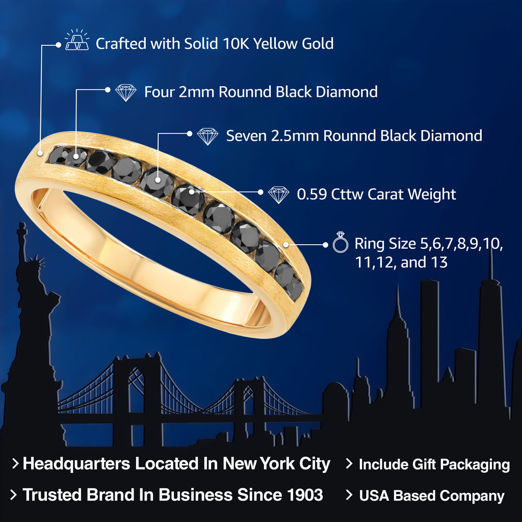 BLACK DIAMOND ACCENTS: Adorned with genuine Black Diamonds, totaling 0.59 Cttw, this ring sparkles with understated elegance. The black diamonds offer a striking contrast against the gold, enhancing the ring's overall aesthetic.