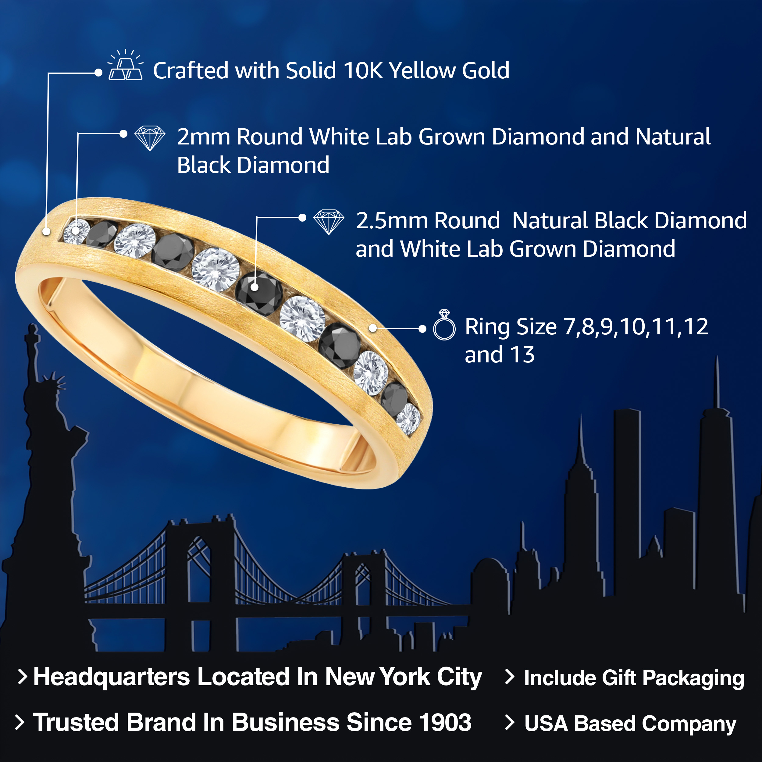SPARKLING LAB GROWN DIAMONDS: The ring boasts a total carat weight of 0.61 Cttw in White Lab Grown Diamonds and Black Diamonds. These diamonds add brilliance and luxury to the ring, symbolizing everlasting love.