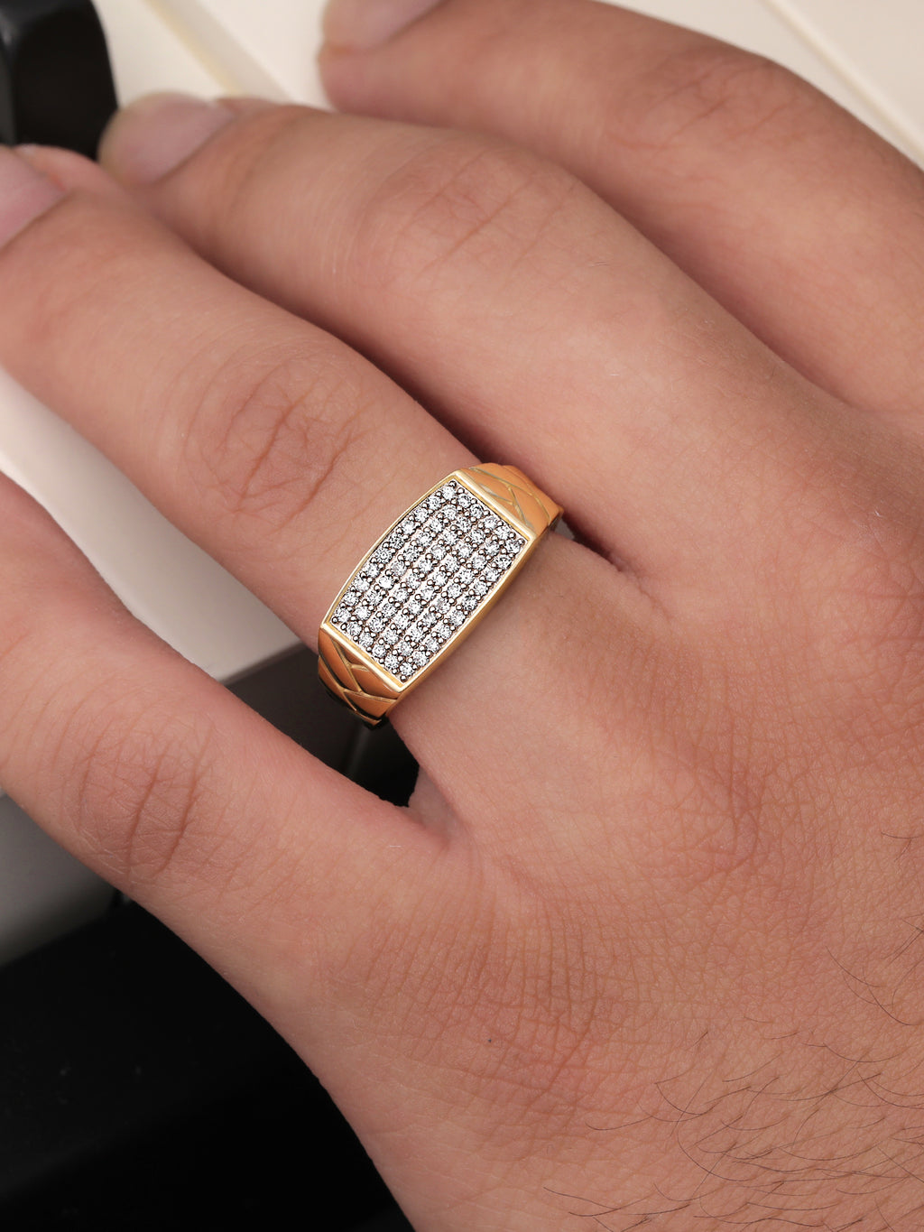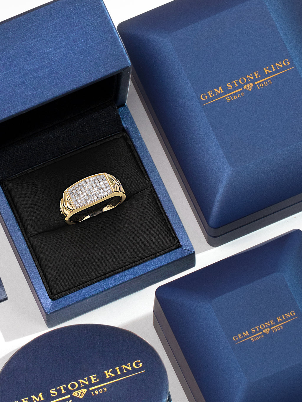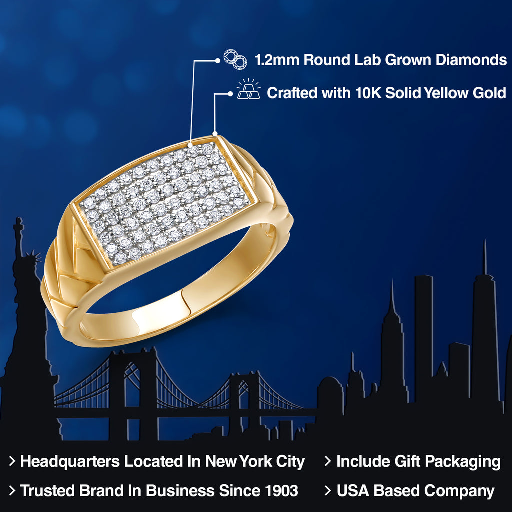 MASCULINE ELEGANCE: This men's ring combines the classic allure of 10K yellow gold with the modern sparkle of 0.46 Cttw white lab-grown diamonds. Its robust and refined design offers a sophisticated accessory that complements both formal attire and everyday wear.