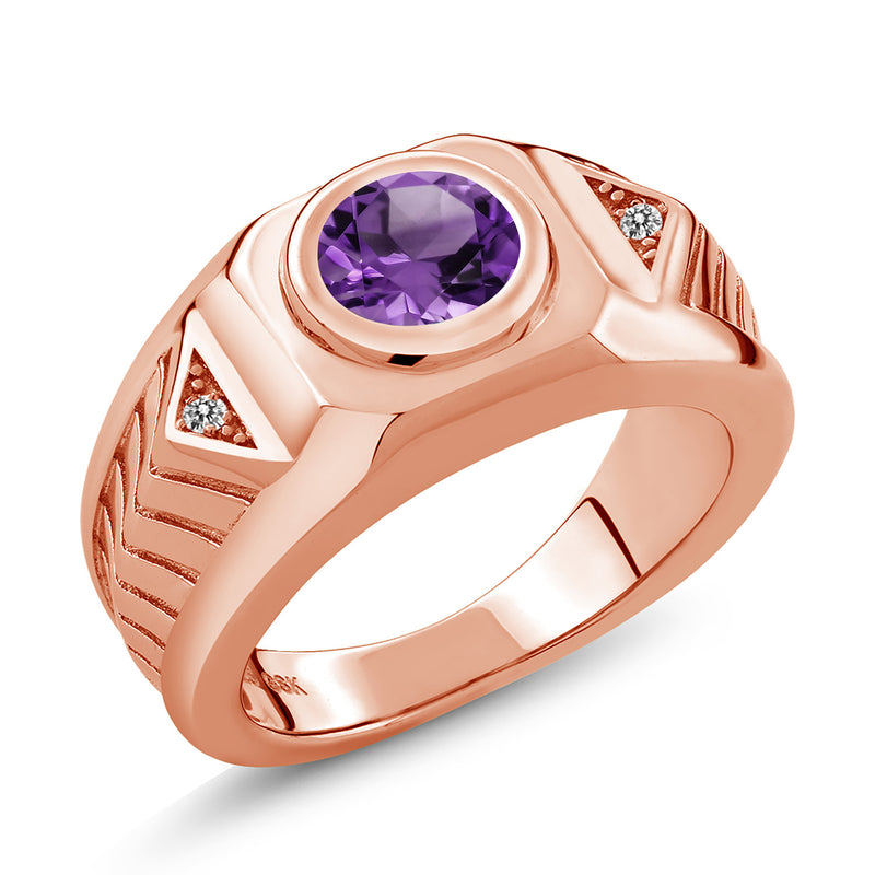 CLASSIC WHITE DIAMOND ACCENTS: Genuine white diamonds accent each side of the ring in triangle-shaped settings, catching light and enhancing the brilliance of the central gemstone. The timeless sparkle offers a luxurious contrast against the sleek lines of the band. Chevron-carved patterns provide a modern finish, resulting in a ring that merges traditional elegance with masculine contemporary design.