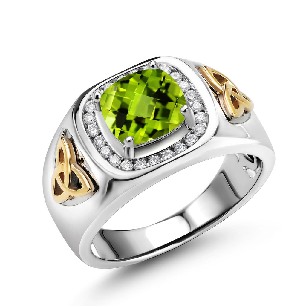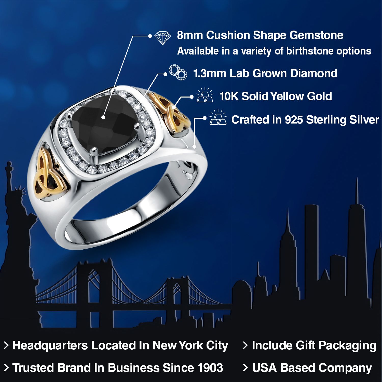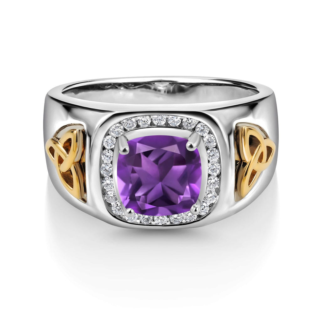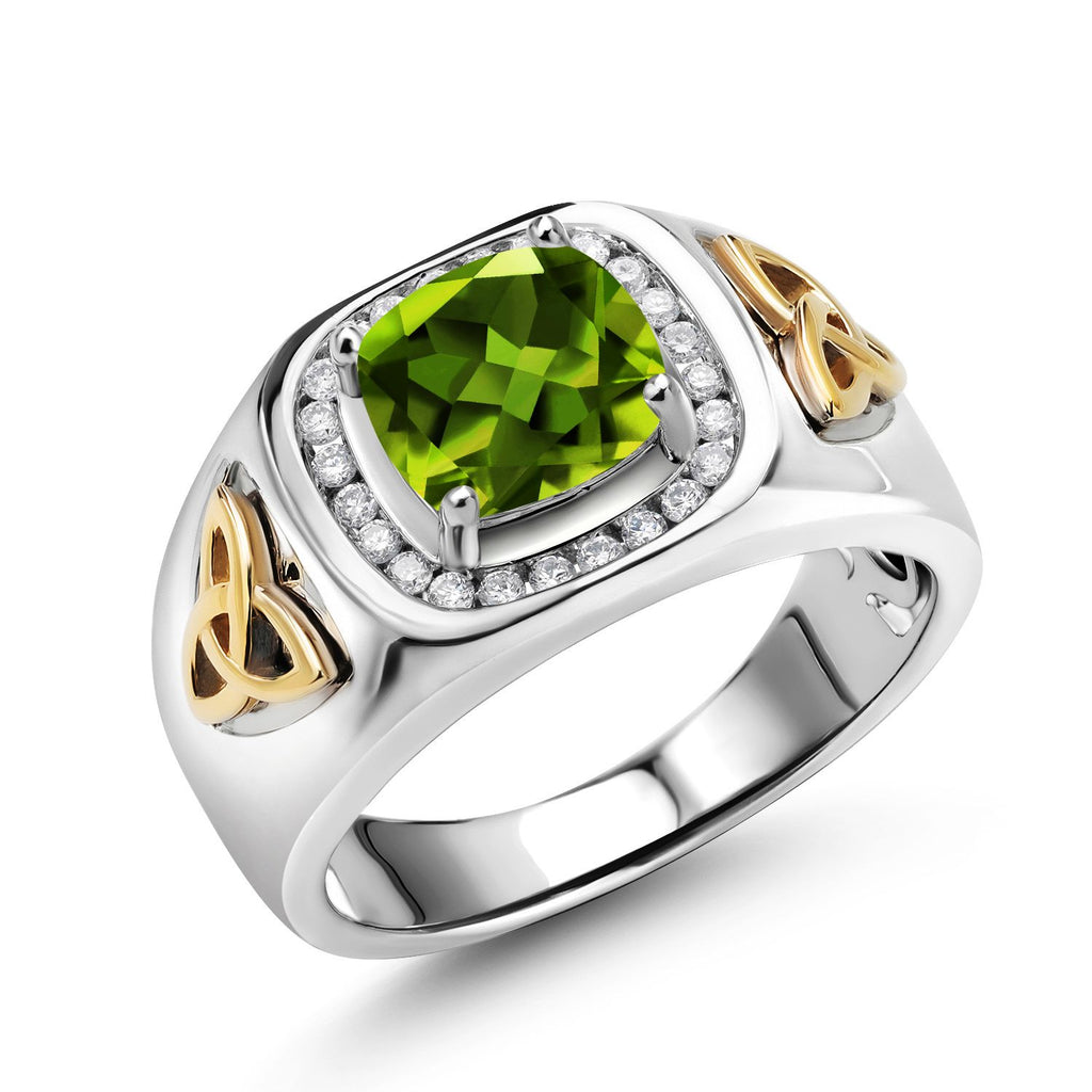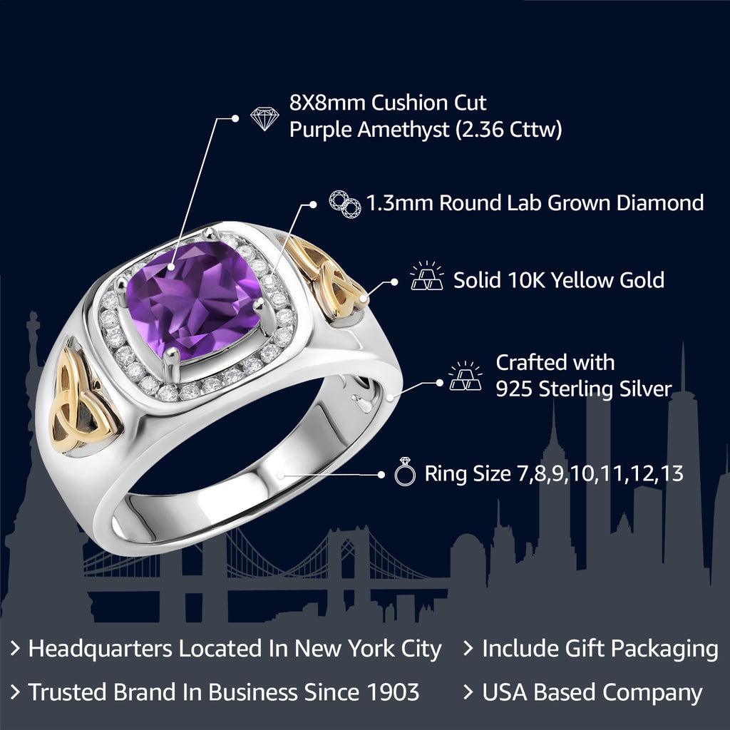 8MM Cushion Cut Ring for Men | Gemstone Birthstone and White Lab Grown Diamond | 925 Silver and 10K Yellow Gold | Available In Size 7, 8, 9, 10, 11, 12, 13