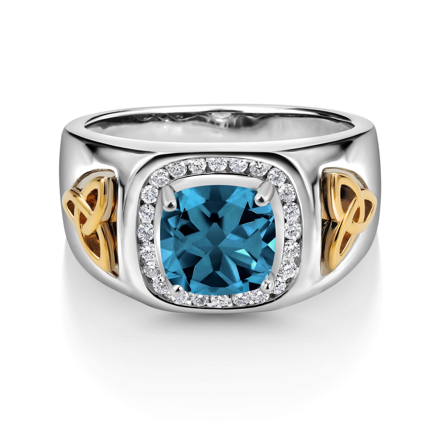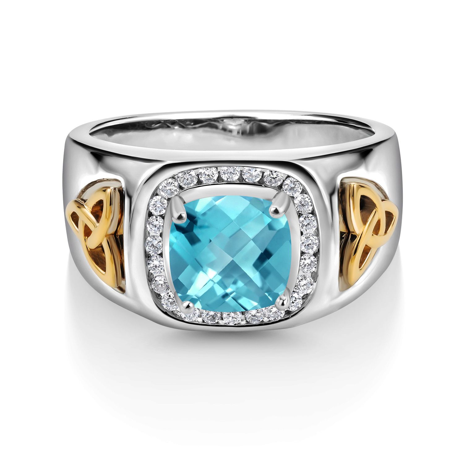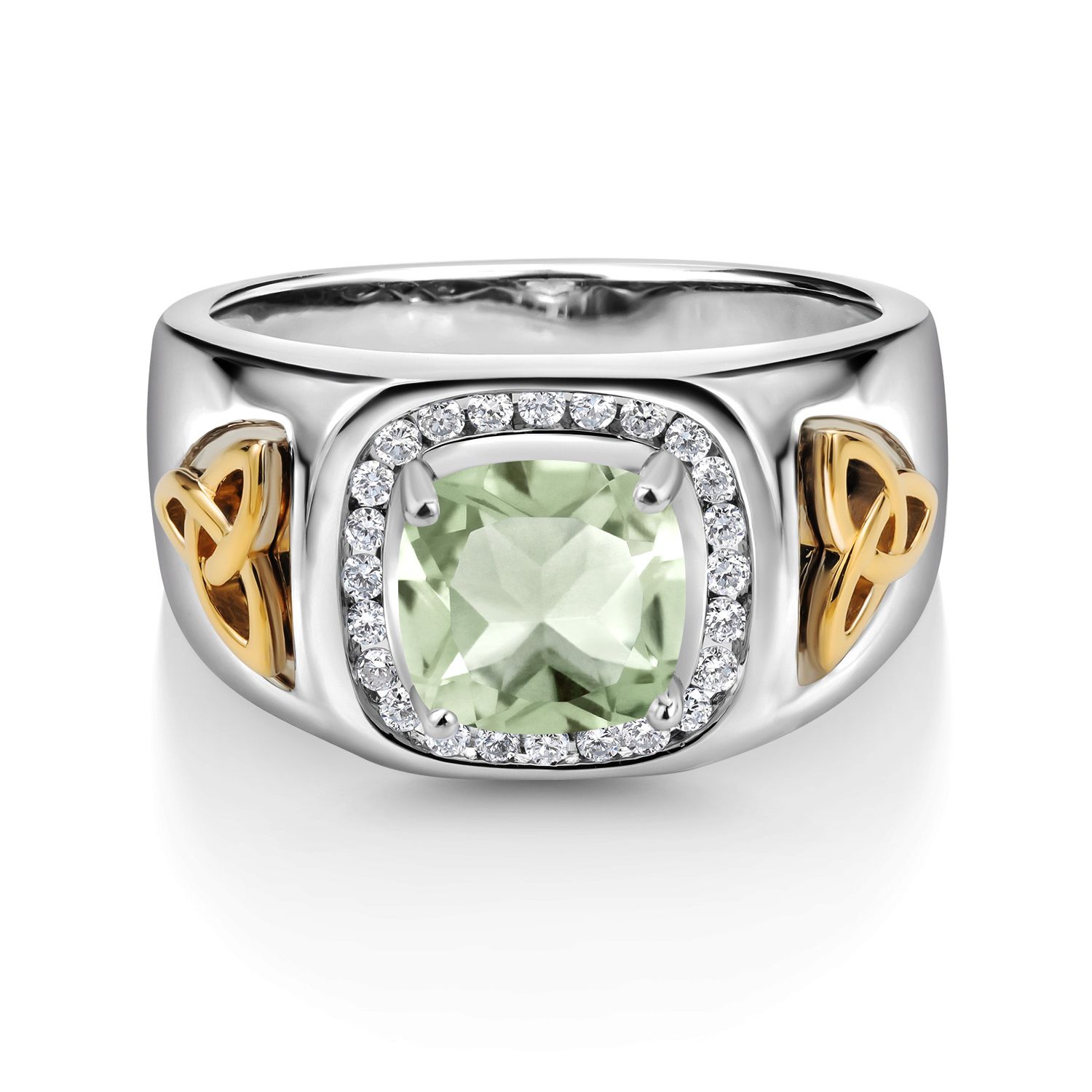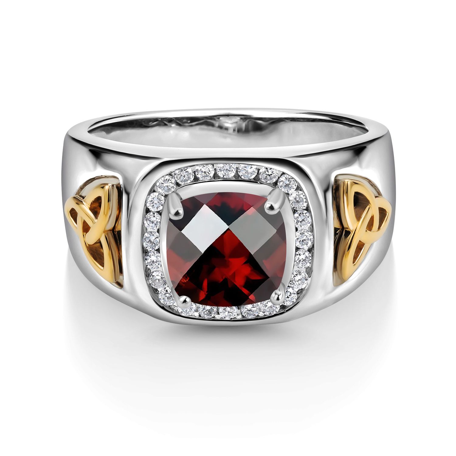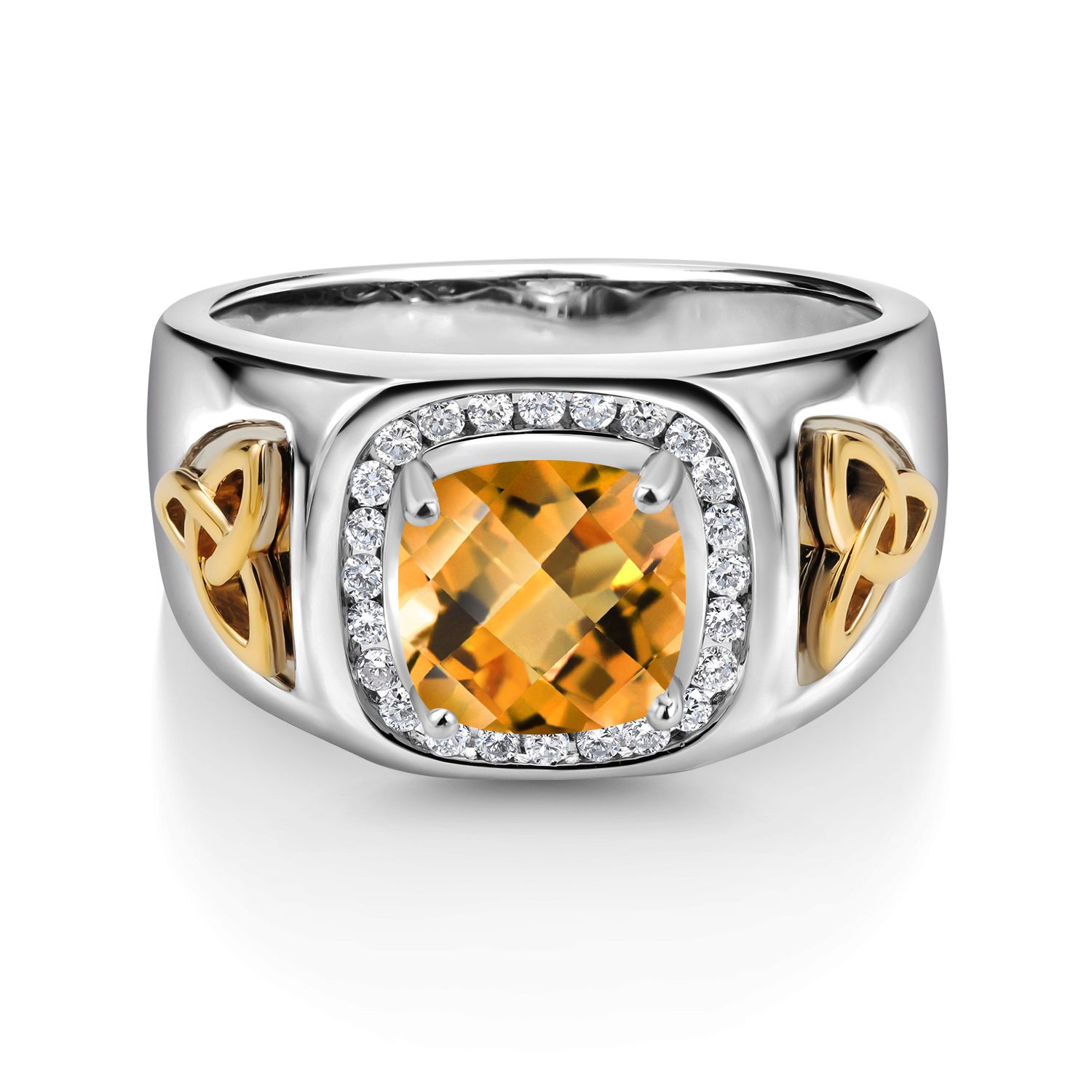 8MM Cushion Cut Ring for Men | Gemstone Birthstone and White Lab Grown Diamond | 925 Silver and 10K Yellow Gold | Available In Size 7, 8, 9, 10, 11, 12, 13