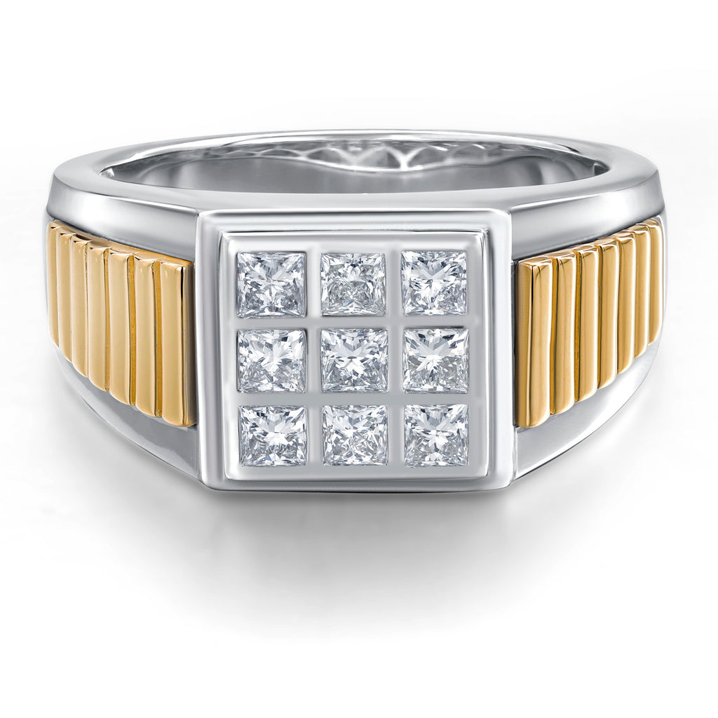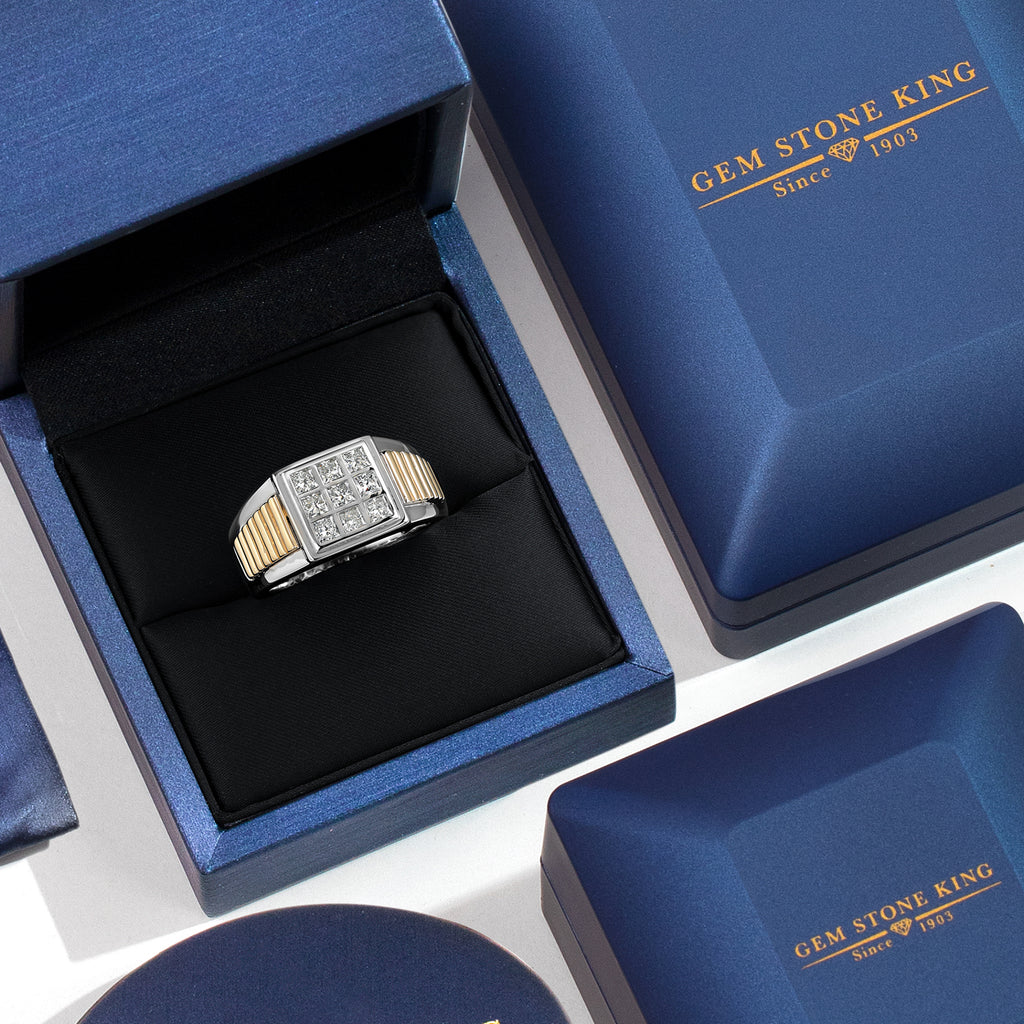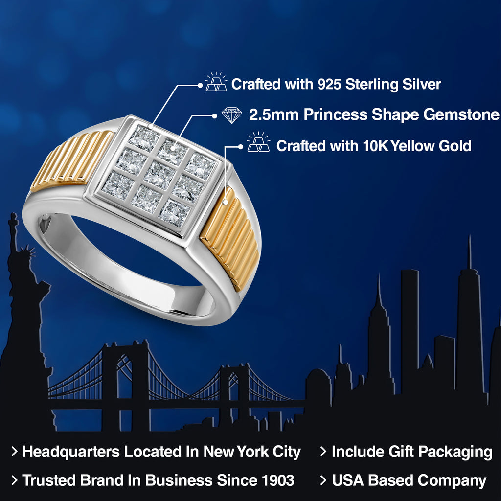Men's 925 Silver and 10K Yellow Gold White Lab Grown Diamond Ring | 0.60 Cttw | Gold Ring for Men