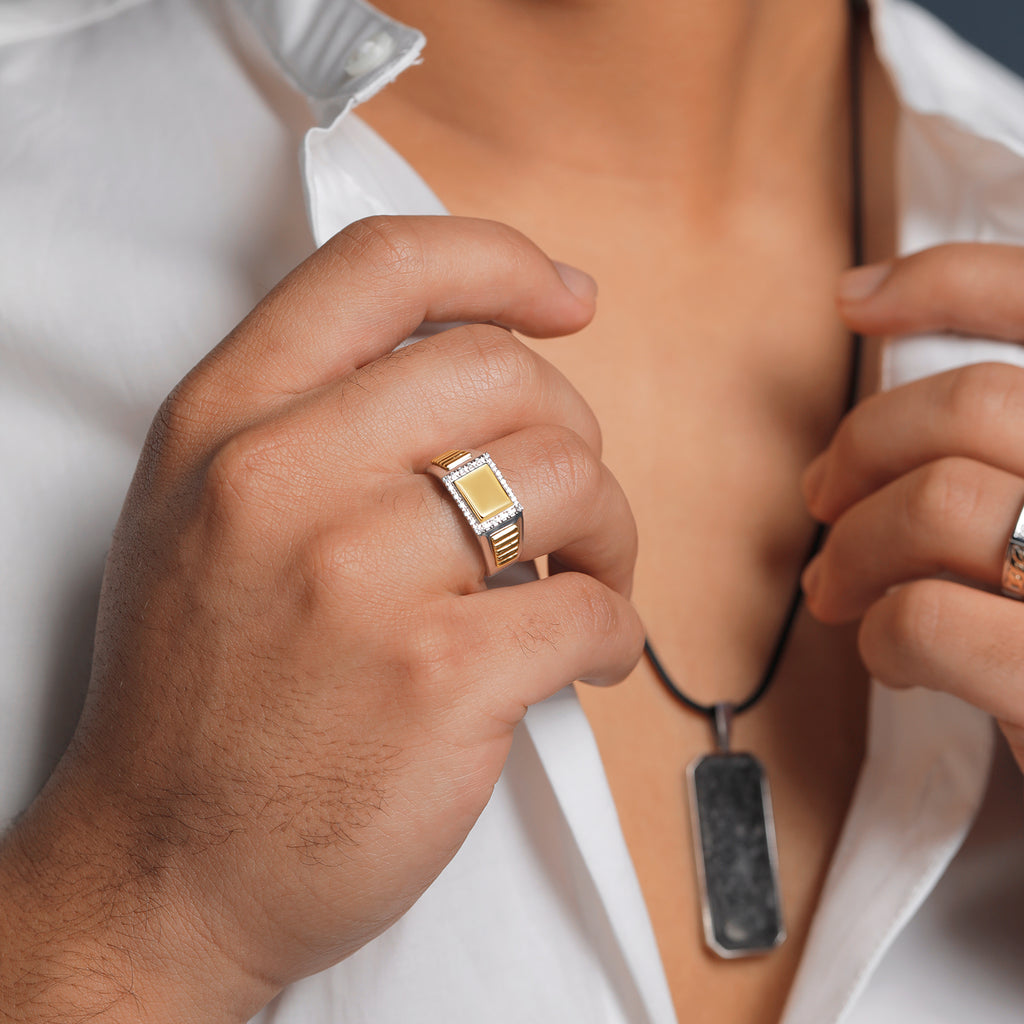 LUXURIOUS DESIGN: This men's ring combines the elegance of 925 sterling silver with the opulence of 10K yellow gold, creating a sophisticated piece that exudes luxury and refinement.