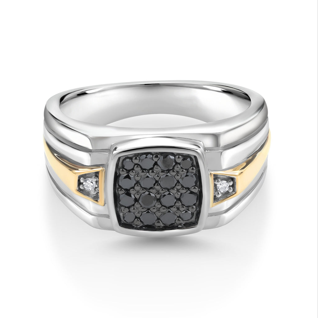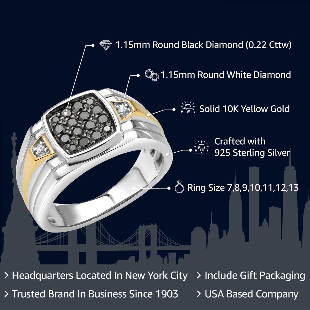 STRIKING DESIGN: This men's ring features a striking combination of 925 sterling silver and 10K yellow gold, creating a bold and masculine look. The contrast between the black and white diamonds further enhances the overall design, making it a standout piece.