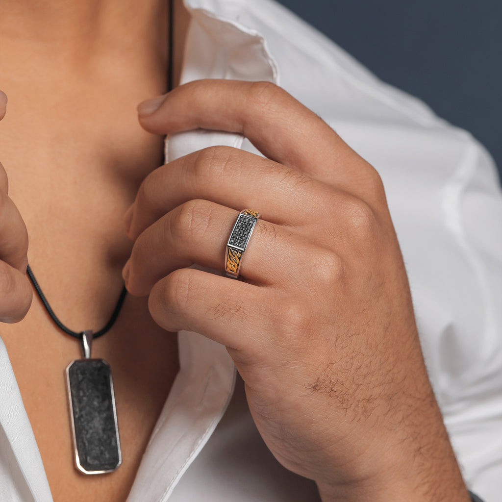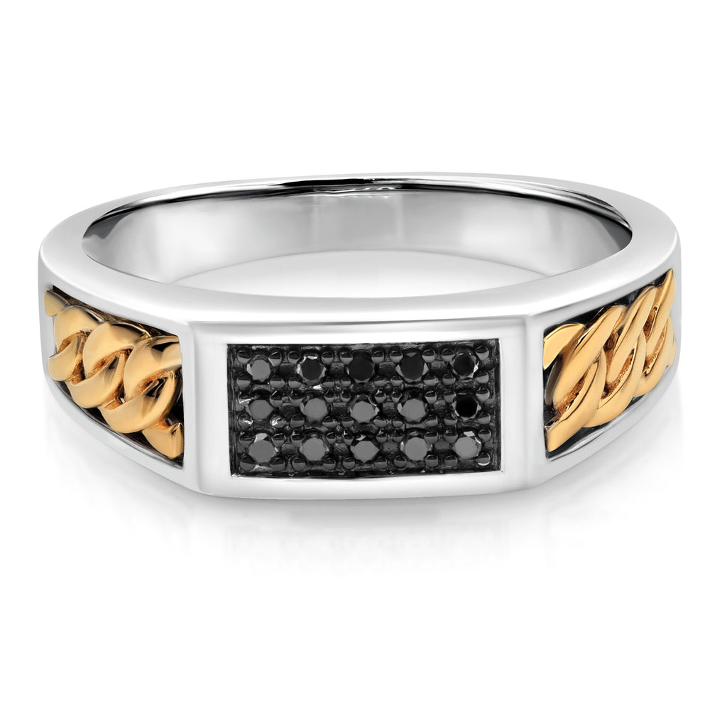 EXQUISITE CRAFTSMANSHIP: This men's ring showcases the skillful combination of 925 sterling silver and 10K yellow gold, creating a stunning piece that exudes sophistication and attention to detail.