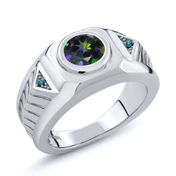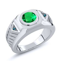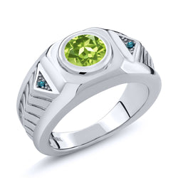 Gem Stone King Men's 925 Sterling Silver Gemstone Birthstone and Blue Diamond Ring For Men | Round 8MM | Available in Size 7, 8, 9, 10, 11, 12, 13