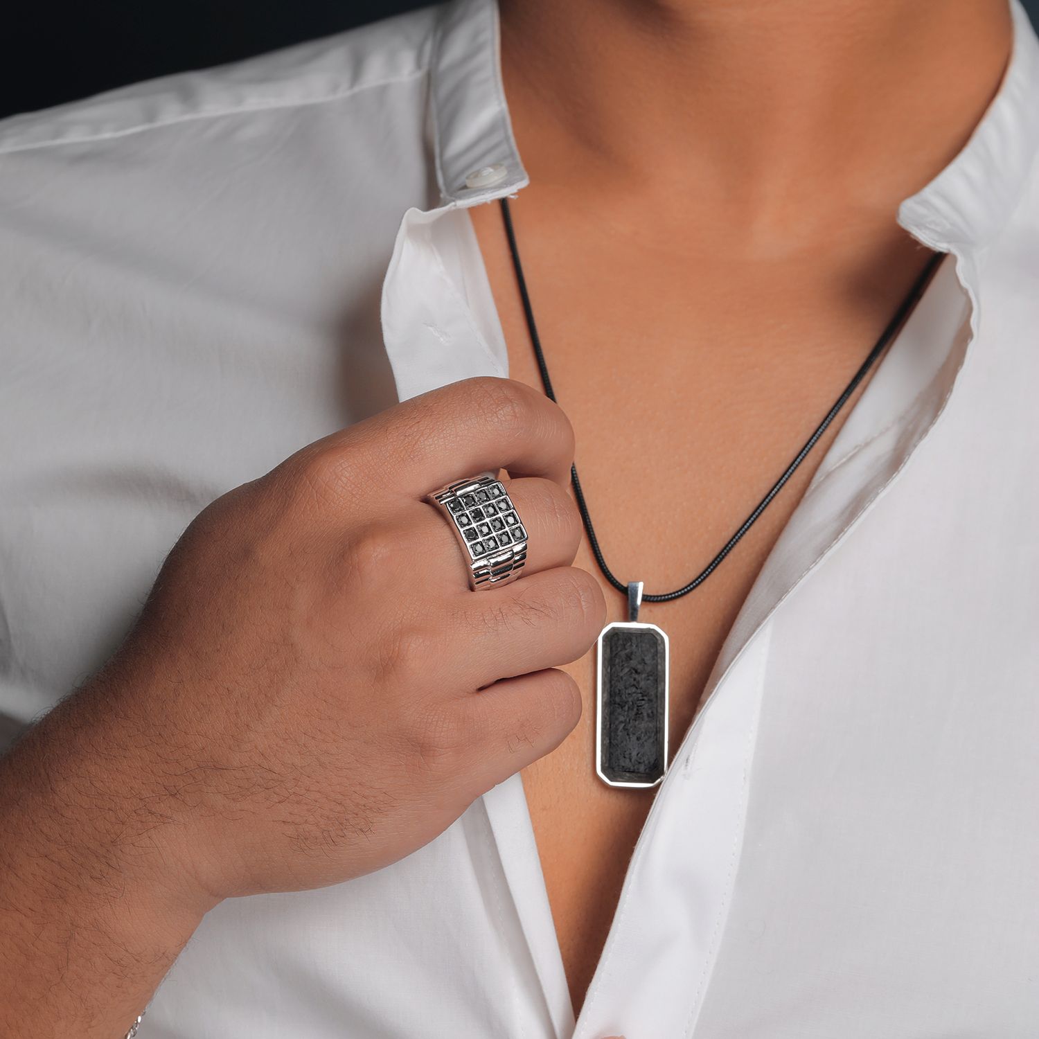 IMPRESSIVE TOP WIDTH: The ring boasts an impressive top width of 15mm, making a bold statement and setting it apart from ordinary men's jewelry.