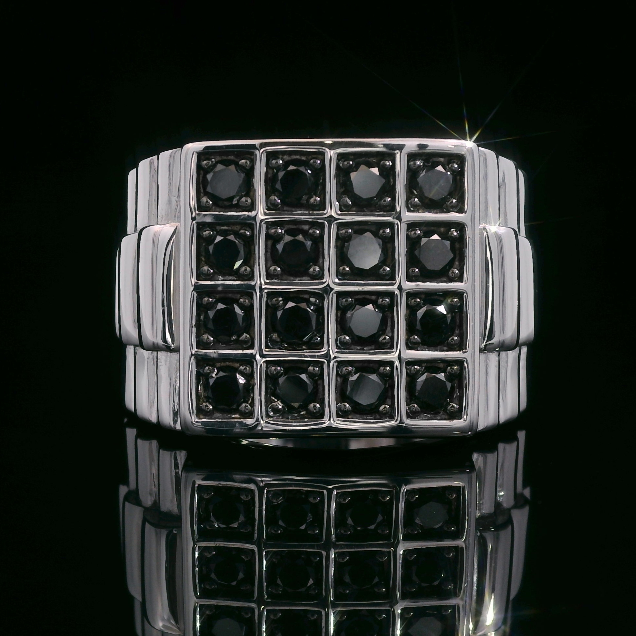 DISTINGUISHED BLACK DIAMOND BRILLIANCE: Elevate your style with the captivating beauty of this men's ring, featuring a total of 1.04 carats of round black diamonds, known for their bold and distinctive appearance.