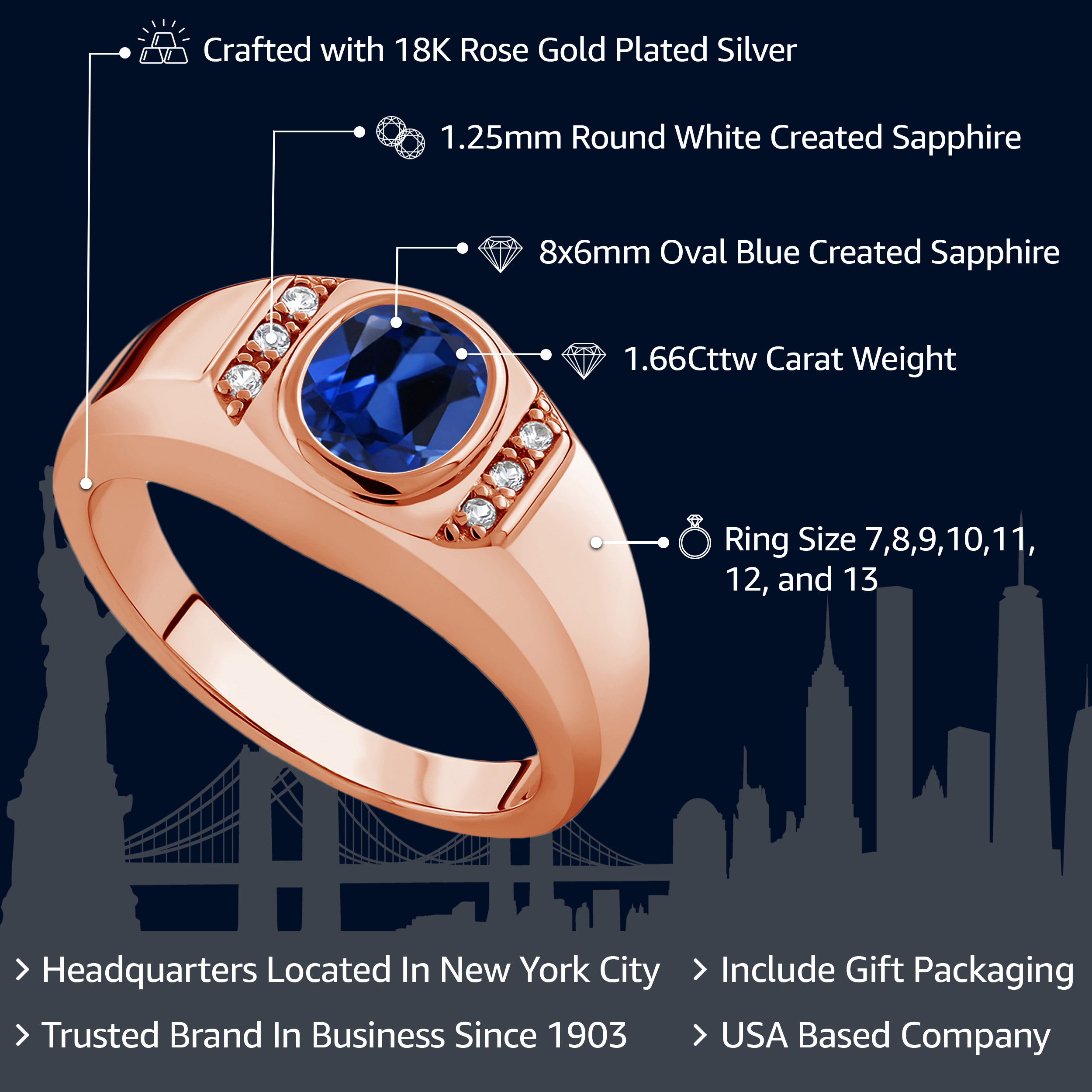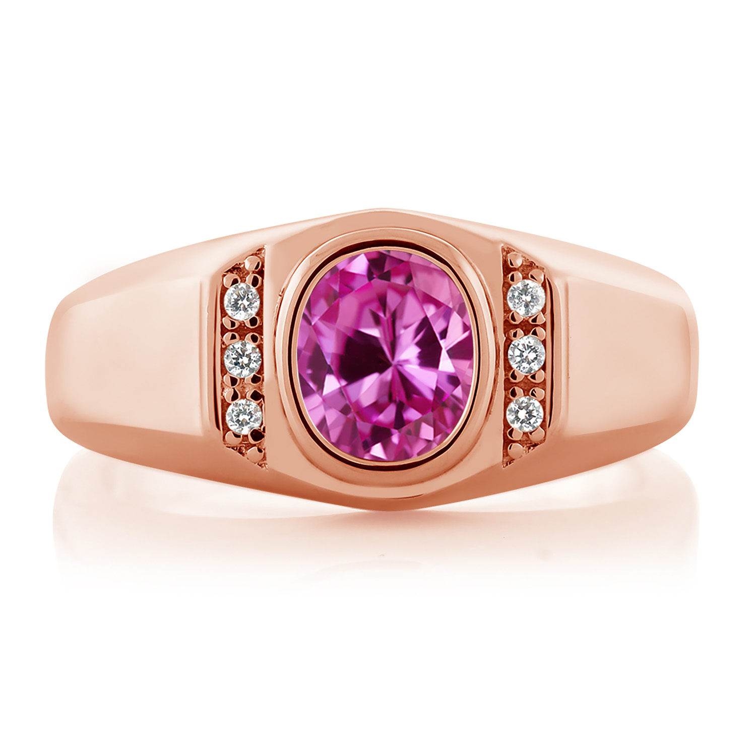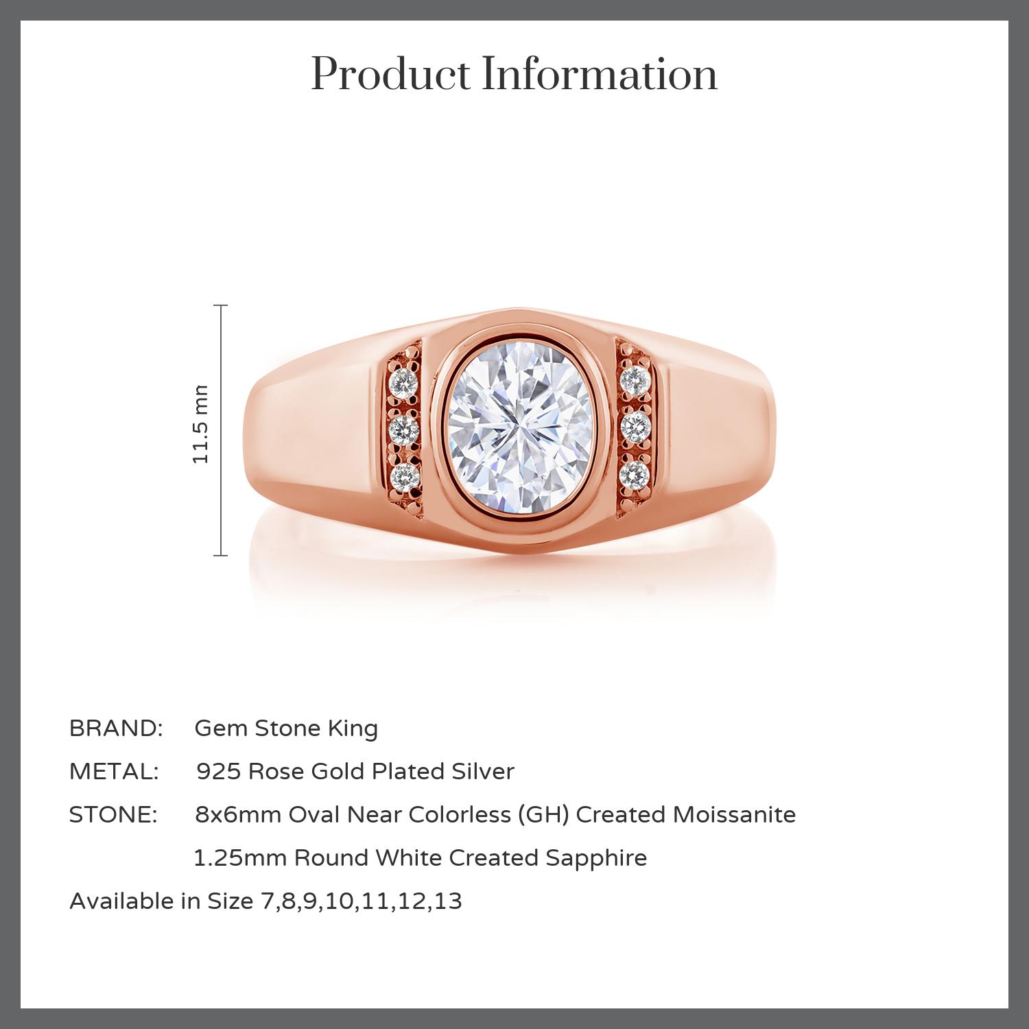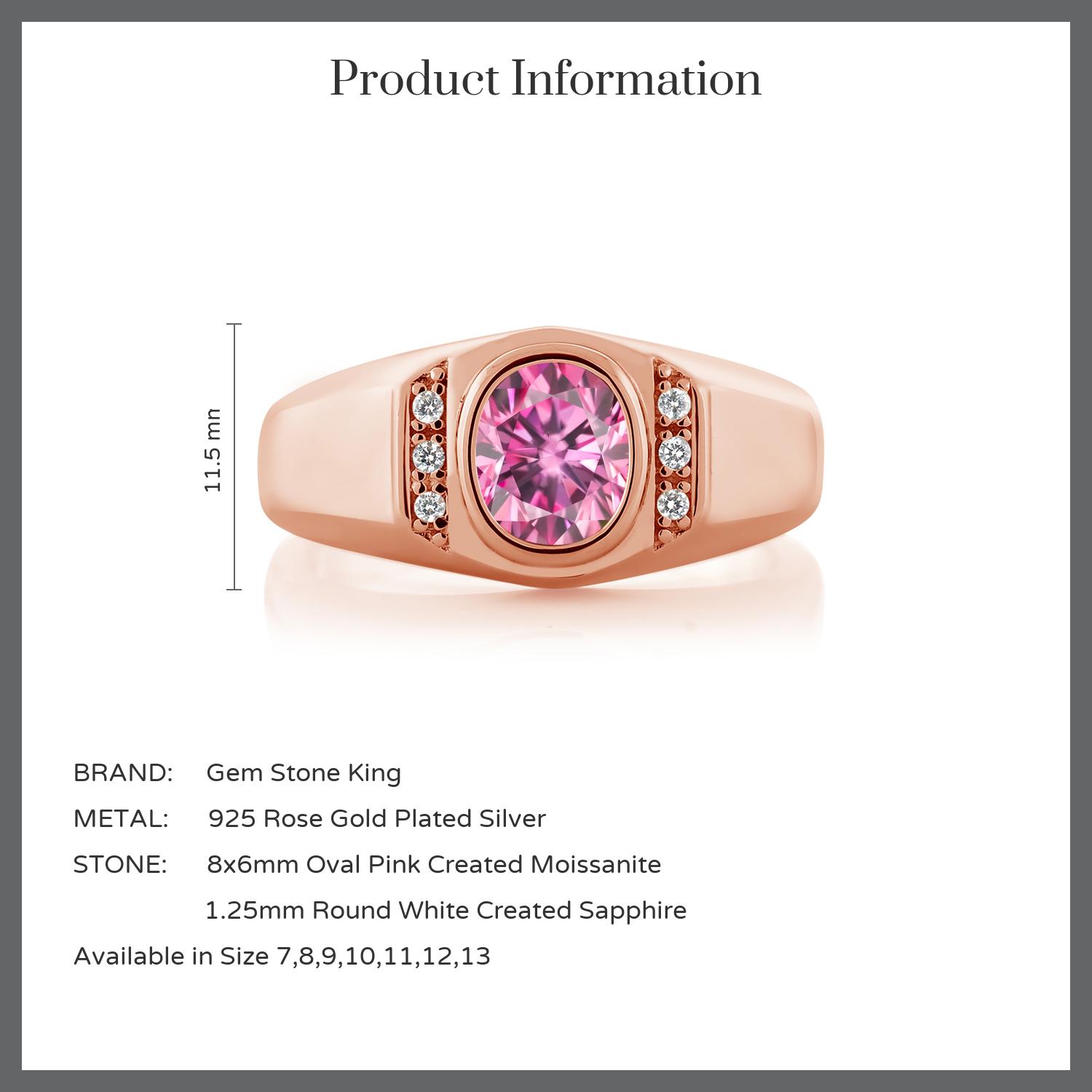 SPARKLING WHITE SAPPHIRE ACCENTS: The ring is adorned with 1.25MM round white created sapphire accents, meticulously set to enhance the main gemstone's brilliance. These dazzling stones offer a stunning contrast against the rose gold plating, adding a touch of sophistication and luxury. The impeccable craftsmanship guarantees that each stone is securely set, ensuring longevity and enduring beauty, perfect for daily wear.