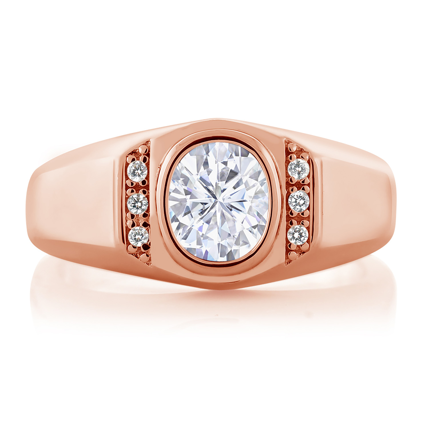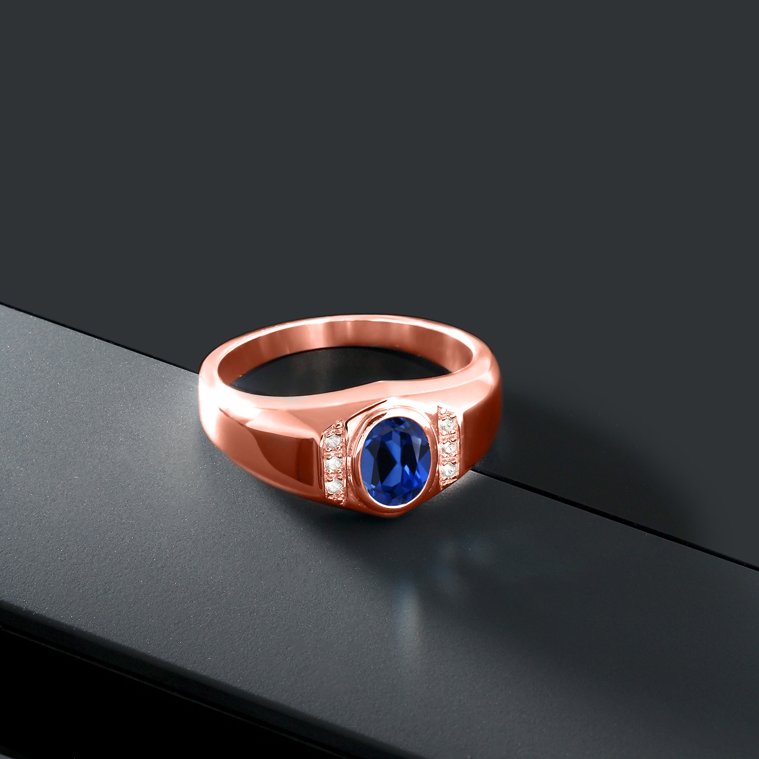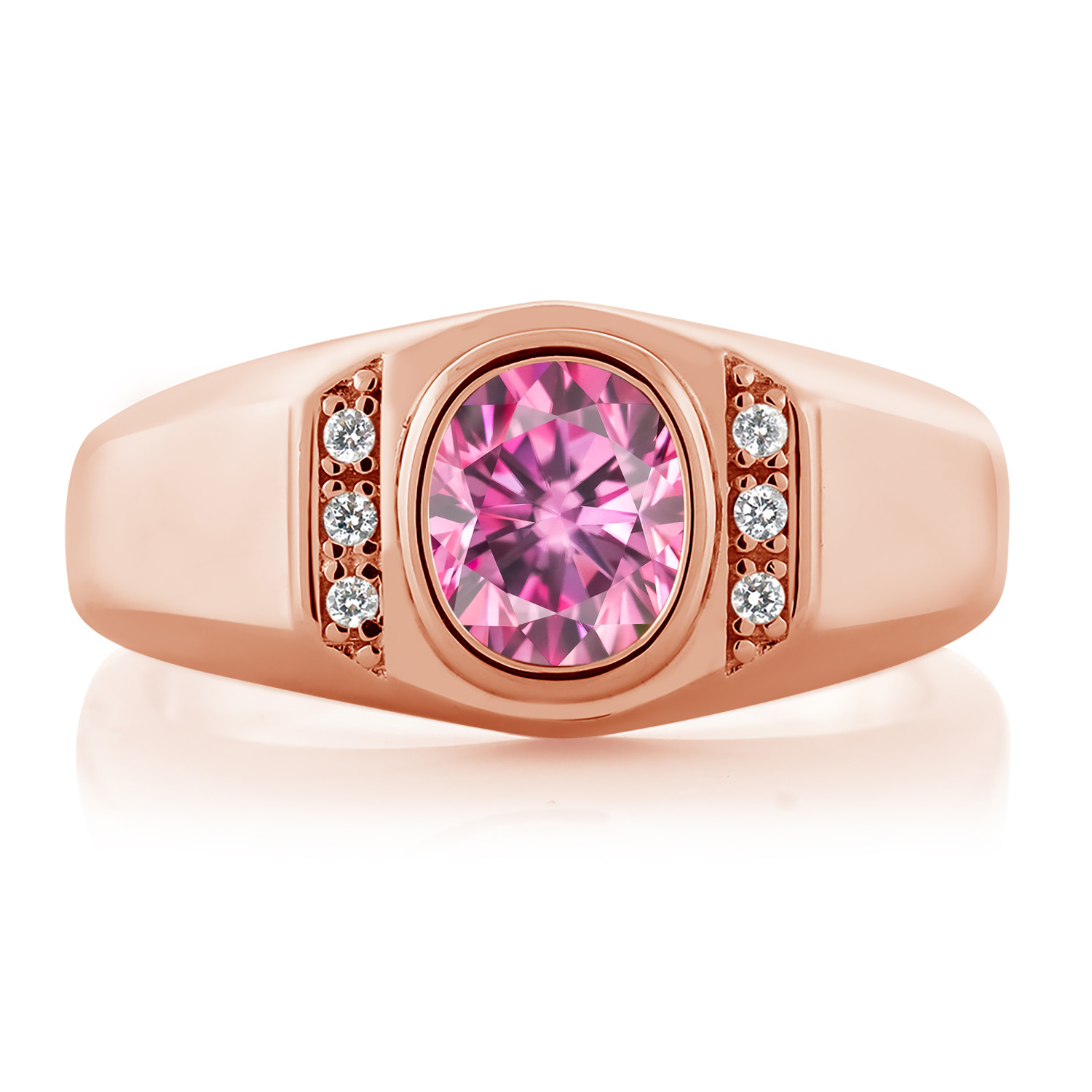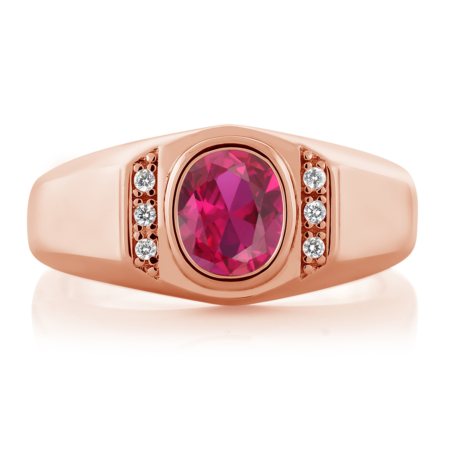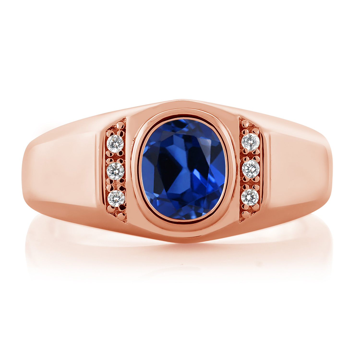 SPARKLING WHITE SAPPHIRE ACCENTS: The ring is adorned with 1.25MM round white created sapphire accents, meticulously set to enhance the main gemstone's brilliance. These dazzling stones offer a stunning contrast against the rose gold plating, adding a touch of sophistication and luxury. The impeccable craftsmanship guarantees that each stone is securely set, ensuring longevity and enduring beauty, perfect for daily wear.
