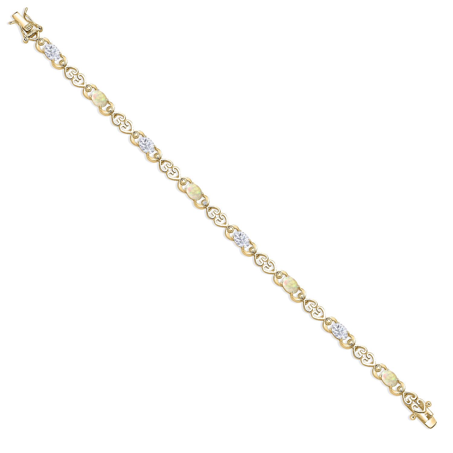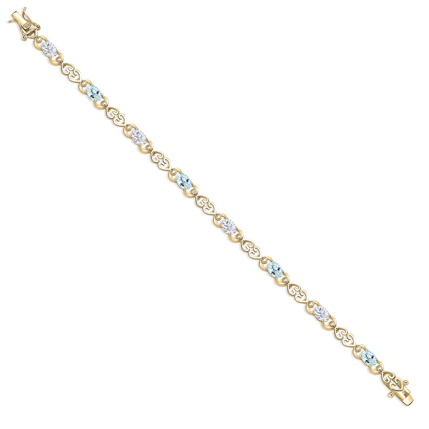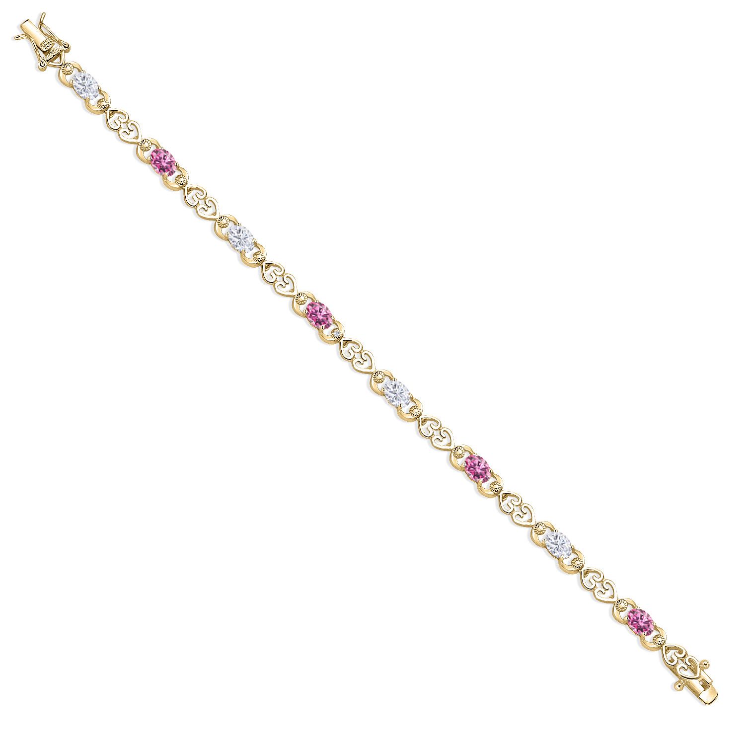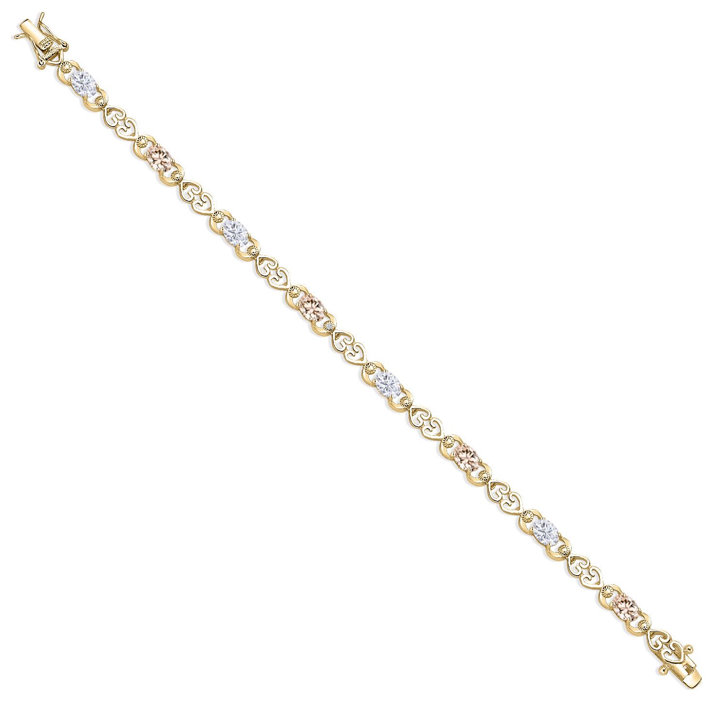 Moissanite and Gemstone Birthstone Heart Link Tennis Bracelet for Women | 18K Yellow Gold Plated Silver | Oval 6X4MM | 7.25 Inch Length | Double Locking Fold Over Clasp | Jewelry for Her Mom Wife