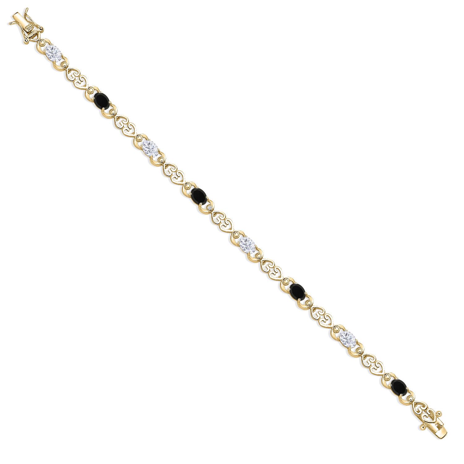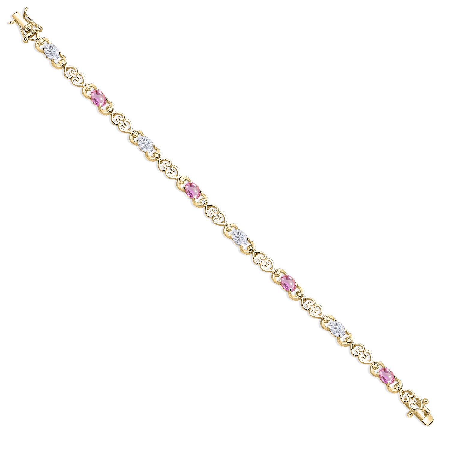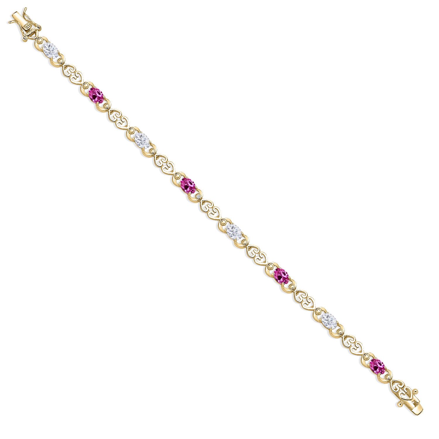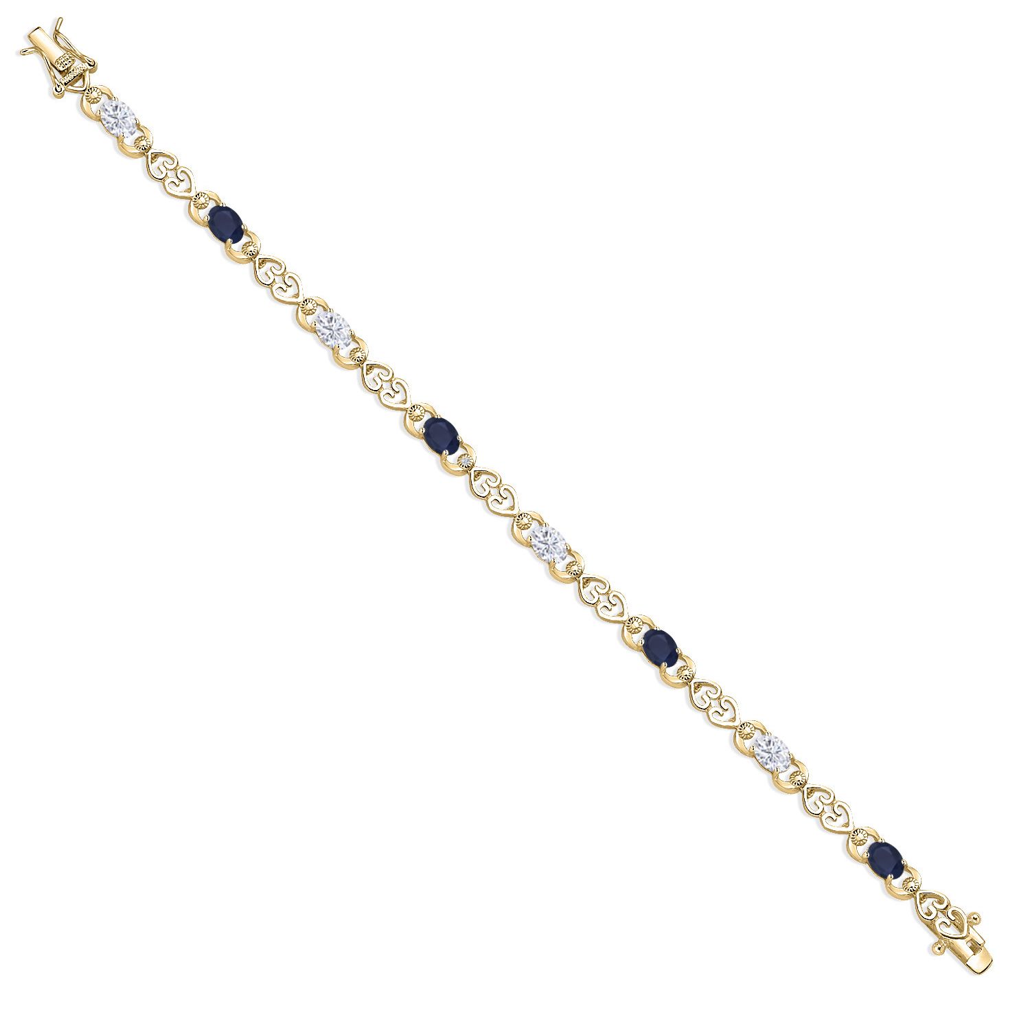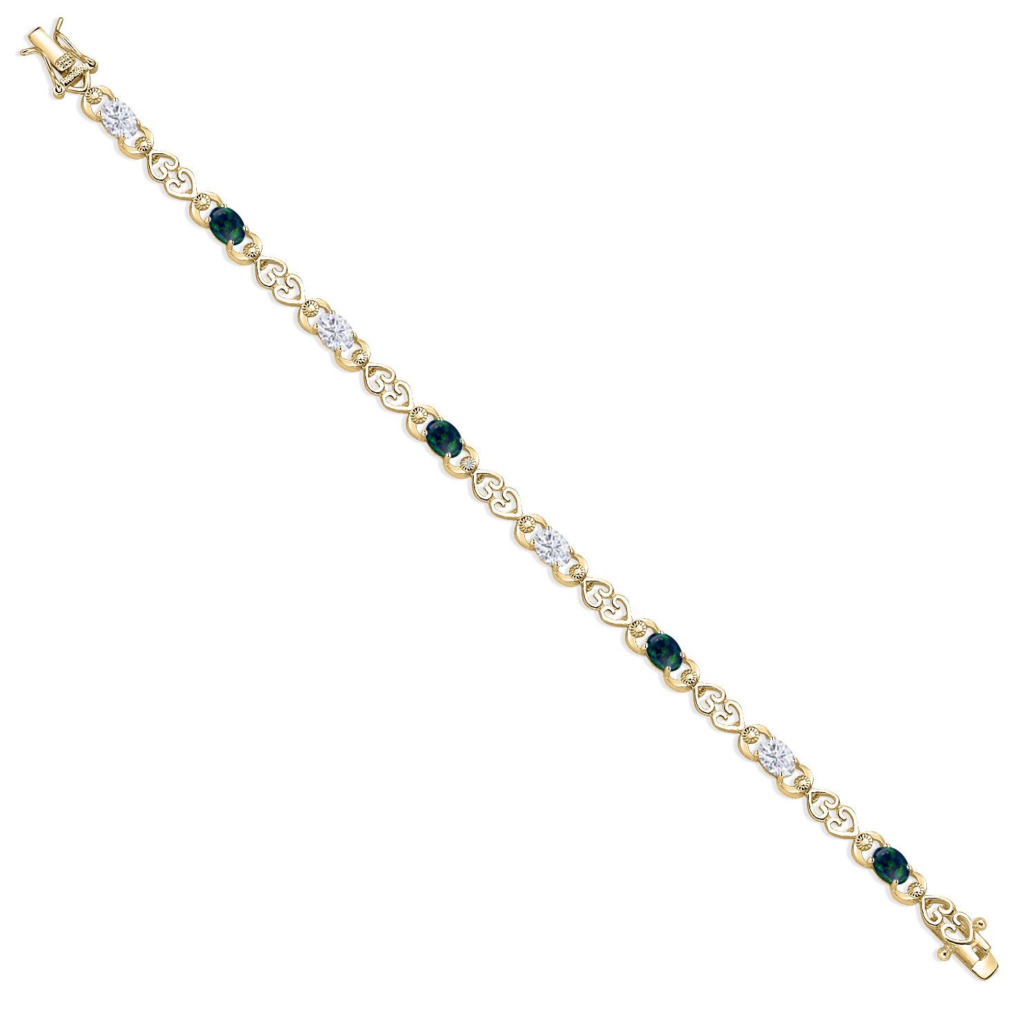HEART LINK DESIGN WITH LAB GROWN DIAMONDS: This tennis bracelet is designed with alternating gemstone and moissanite links surrounded by open-heart detailing and sparkling 1MM lab diamonds. Its carefully balanced layout and expert prong-setting technique create a seamless and secure construction while offering brilliance from every angle. Designed for both elegance and sentimental charm, this piece celebrates lasting bonds.