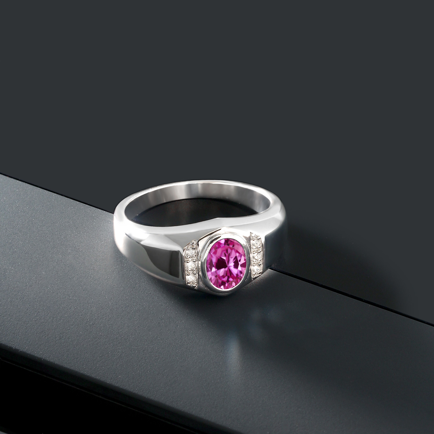 ELEGANT STYLE WITH SAPPHIRE ACCENTS: The ring's design is further elevated by round 1.25MM white created sapphire accents, adding a touch of refined elegance. Each stone is meticulously set to enhance the ring's overall allure, showcasing exceptional craftsmanship. The harmonious blend of the main gemstone and side stones creates a captivating and balanced look, making it a standout piece in any fine jewelry collection.