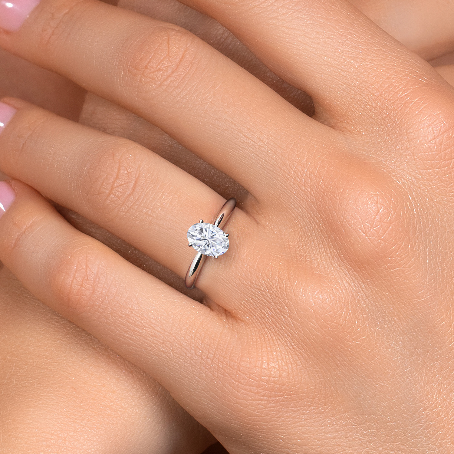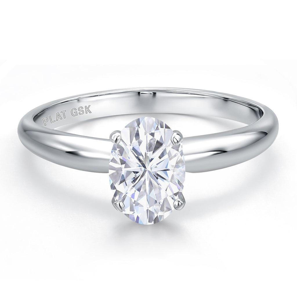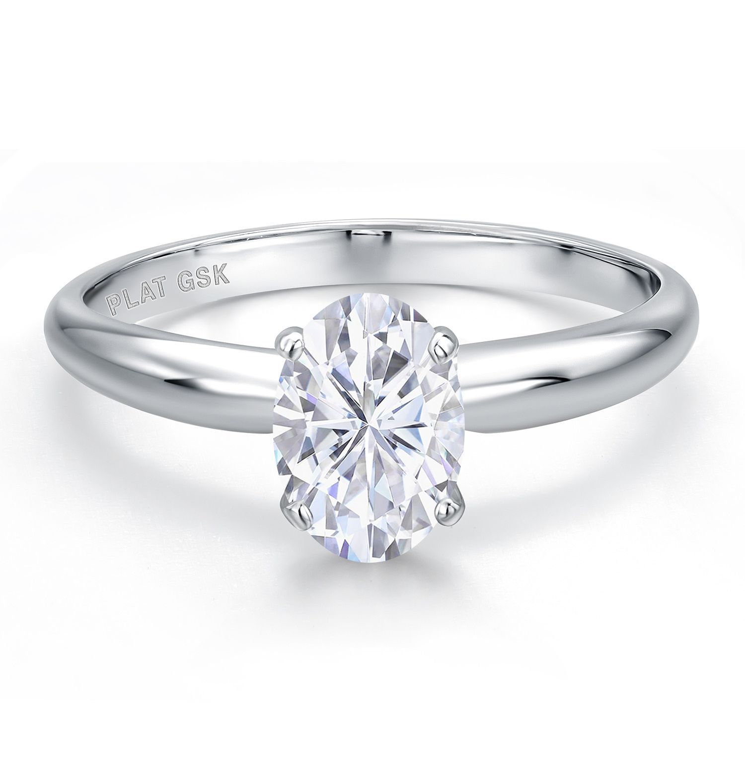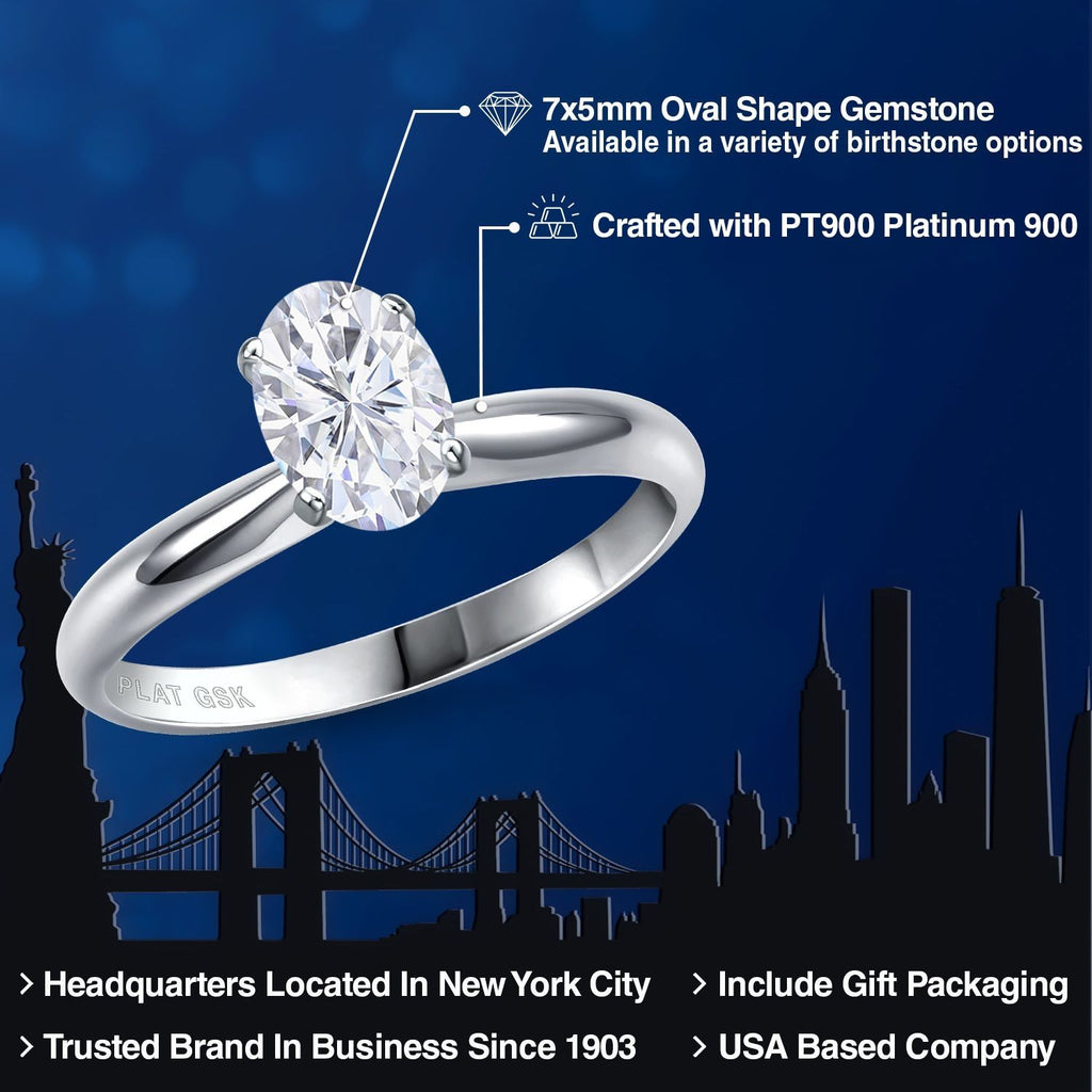 PLAT-900 Platinum Moissanite Engagement Ring For Women | 0.90 Cttw | Oval 7X5MM | Gemstone Birthstone | Wedding Engagement Anniversary Promise Ring For Women