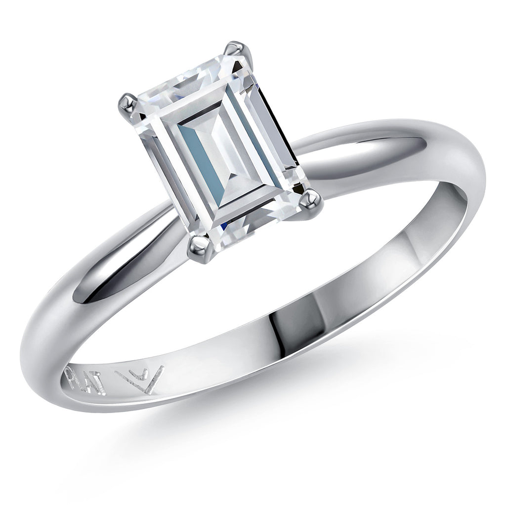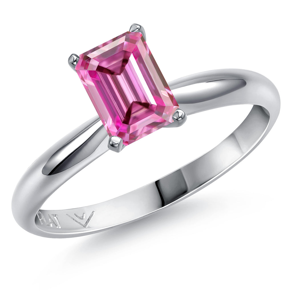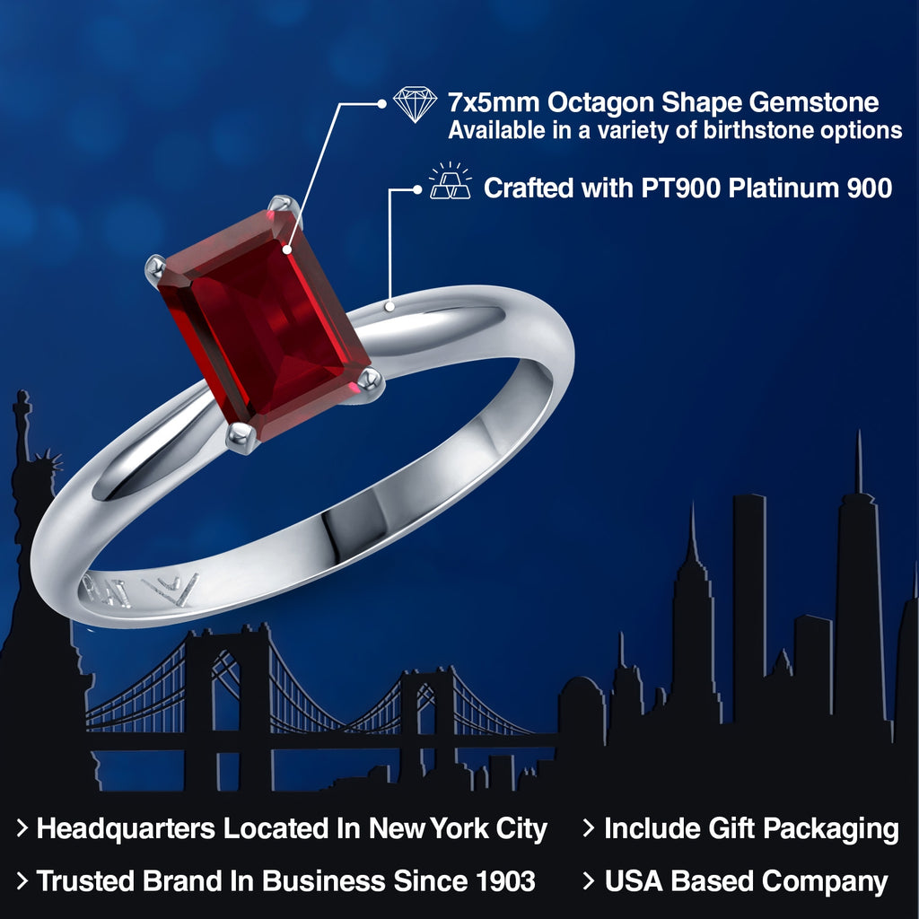 PT900 Platinum 900 Gemstone Birthstone Solitaire Engagement Ring For Women | Emerald Cut 7X5MM | Wedding Anniversary Promise Ring For Women | Available in Size 5, 6, 7, 8, 9