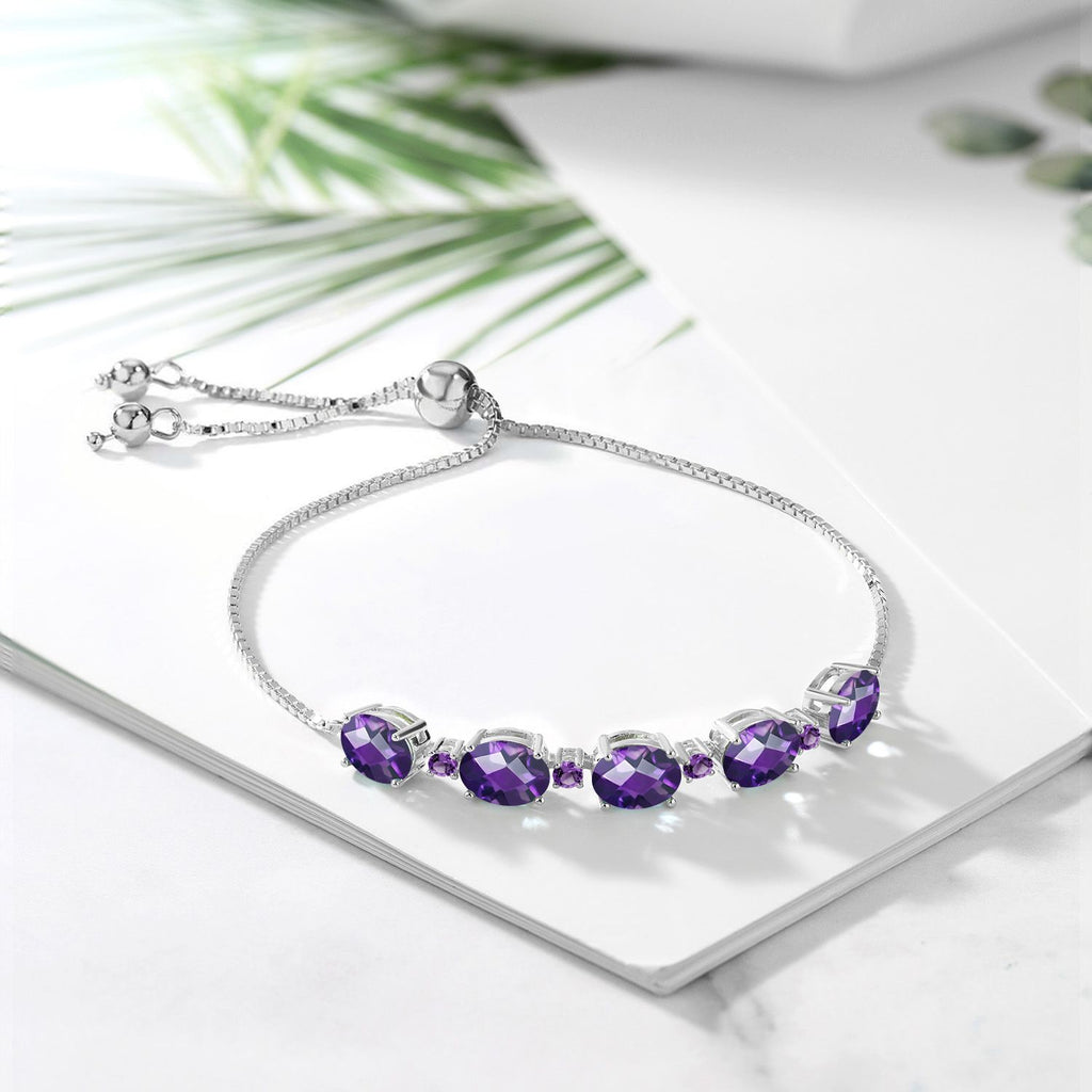 CRAFTED IN STERLING SILVER EXCELLENCE: Meticulously crafted from genuine 925 sterling silver, this bracelet exemplifies enduring quality and timeless elegance. The secure setting of each oval Amethyst ensures both a stunning visual impact and a durable piece that stands the test of time.
