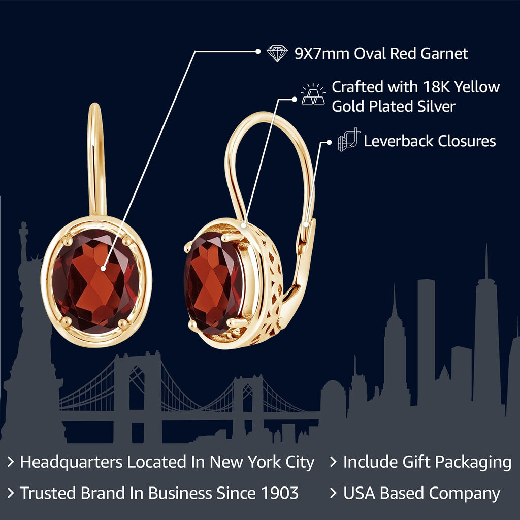 ELEGANT GARNET DANGLE: Elevate your style with the captivating allure of these dangle earrings. Featuring a total weight of 3.60 Cttw with Oval 9X7MM Red Garnet gemstones, they exude elegance and vibrant beauty.