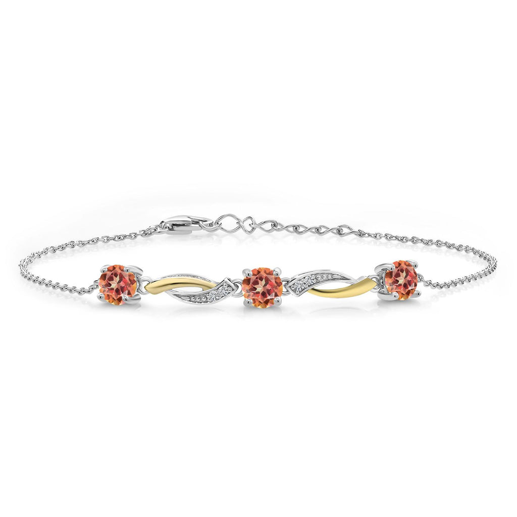Tennis Bracelet For Women | Round 5MM Gemstone Birthstone and White Moissanite | 925 Silver and 10K Yellow Gold | 7 Inch with 1 Inch Extender | Fine Jewelry Gifts for Her Mom Women Wife