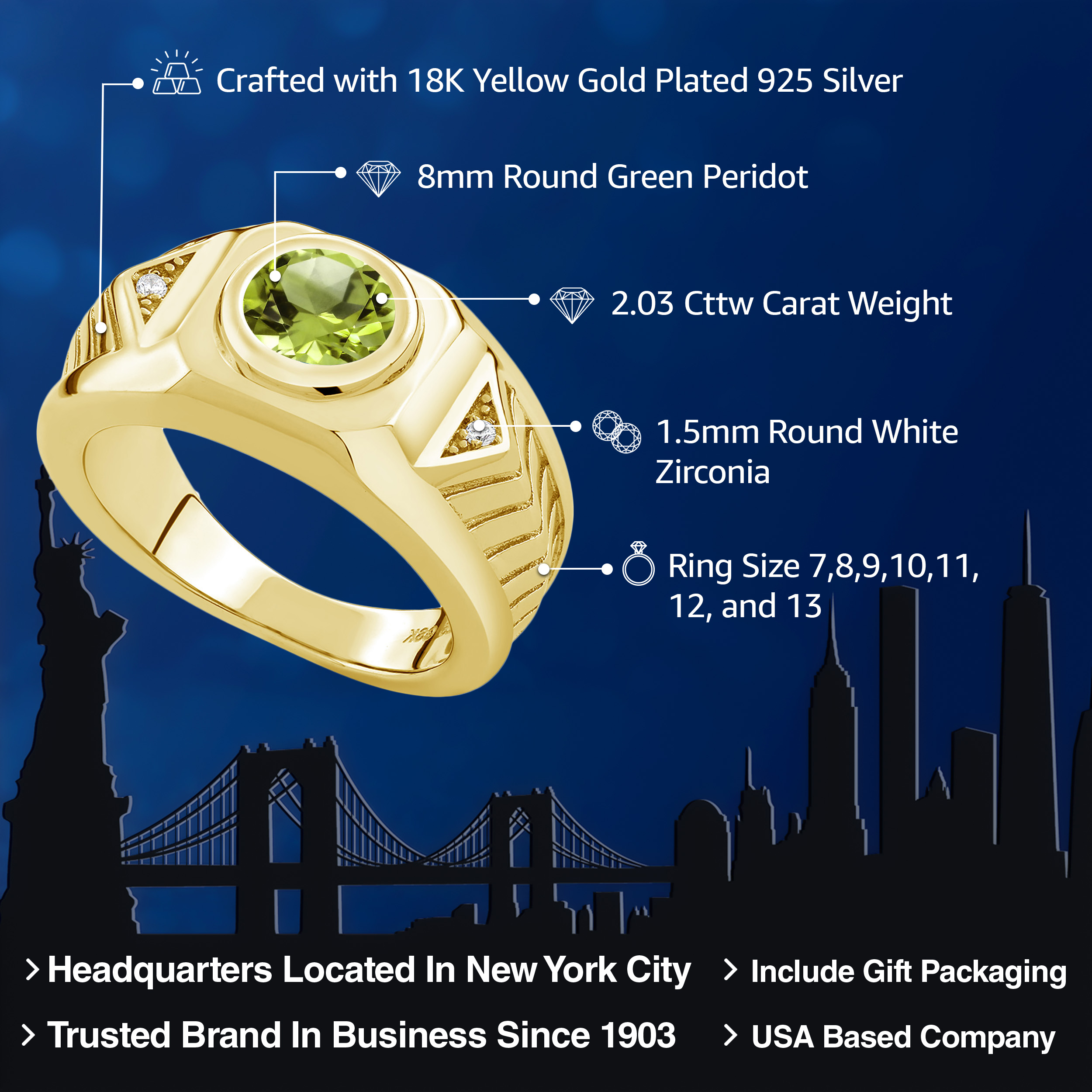 18K YELLOW GOLD PLATED SILVER: Crafted with precision, the ring features a luxurious 18K yellow gold plating over sterling silver, offering the richness of gold with the durability of silver. This combination provides a radiant finish that resists tarnish, ensuring a lasting shine. The hypoallergenic properties make it ideal for sensitive skin, providing comfort and confidence with every wear, while the robust construction promises longevity and resilience.