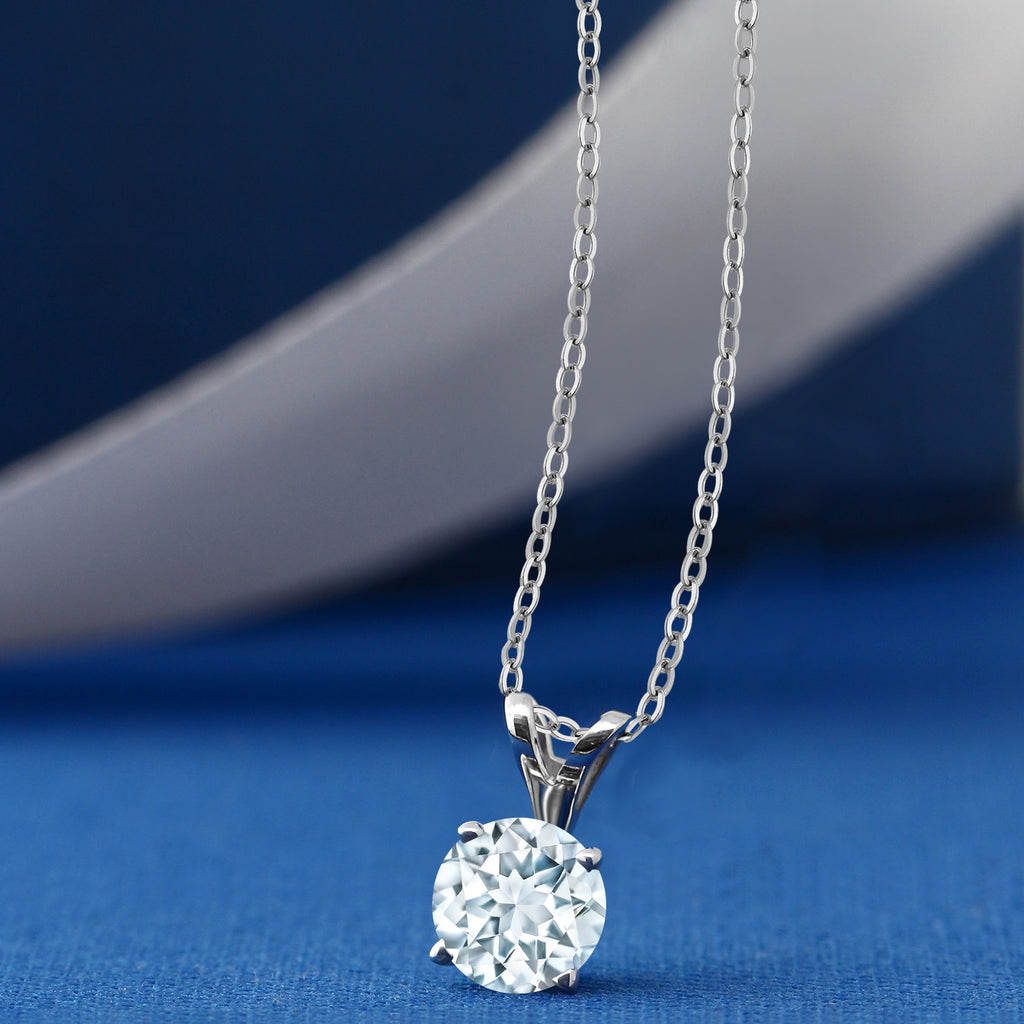 Round Solitaire Pendant Necklace for Women | 925 Sterling Silver | Gemstone Birthstone | Round 5MM | With 18 Inch Chain | Fine Jewelry Gifts for Her Mom Women Wife