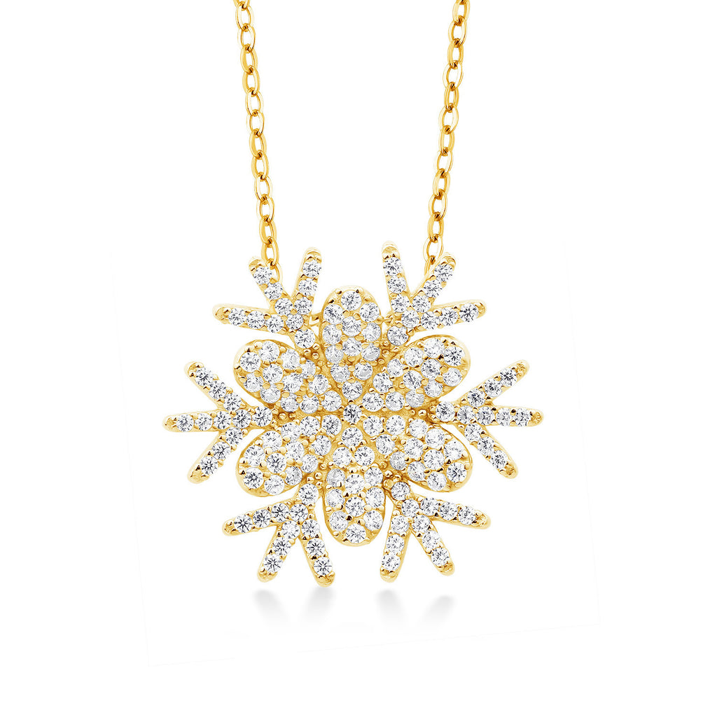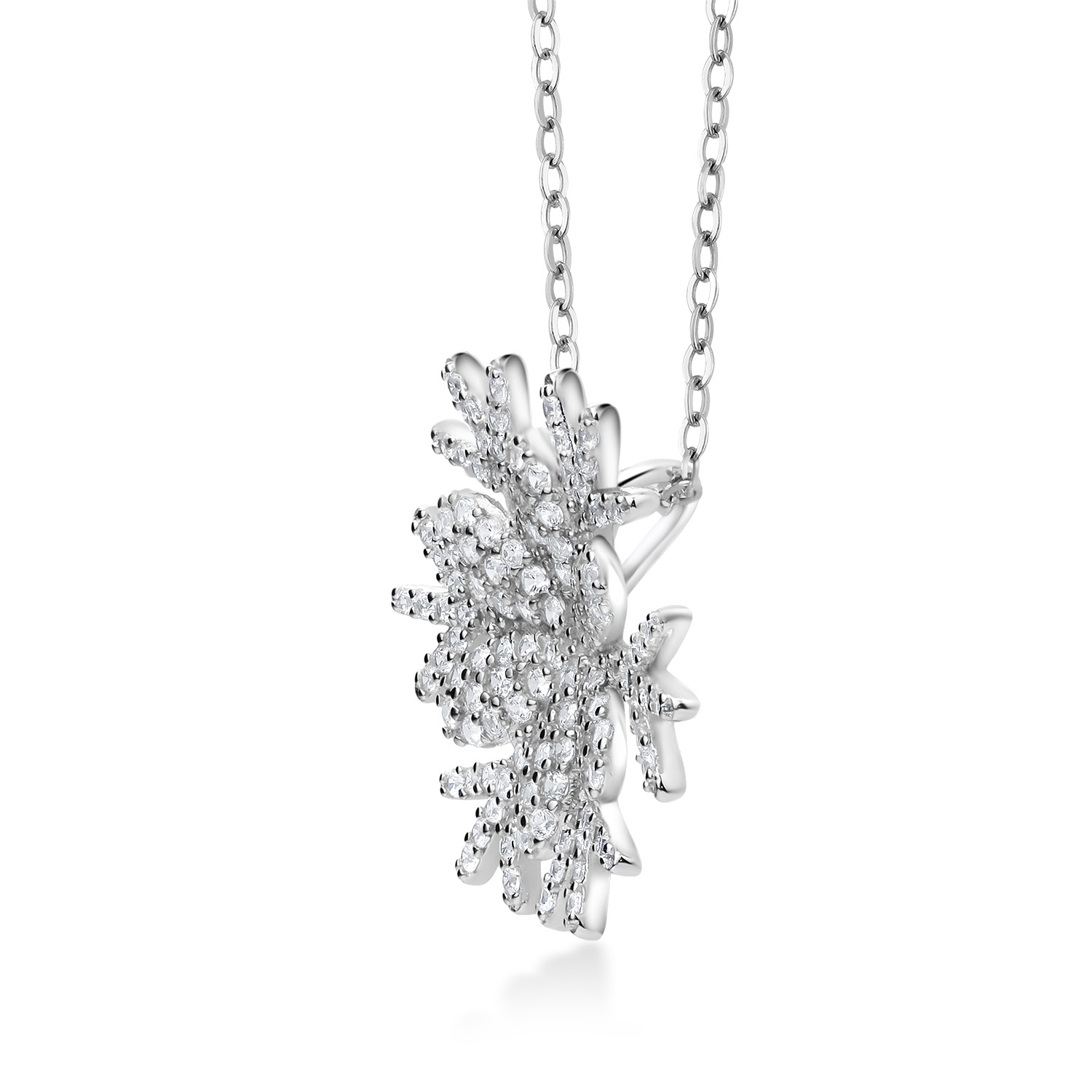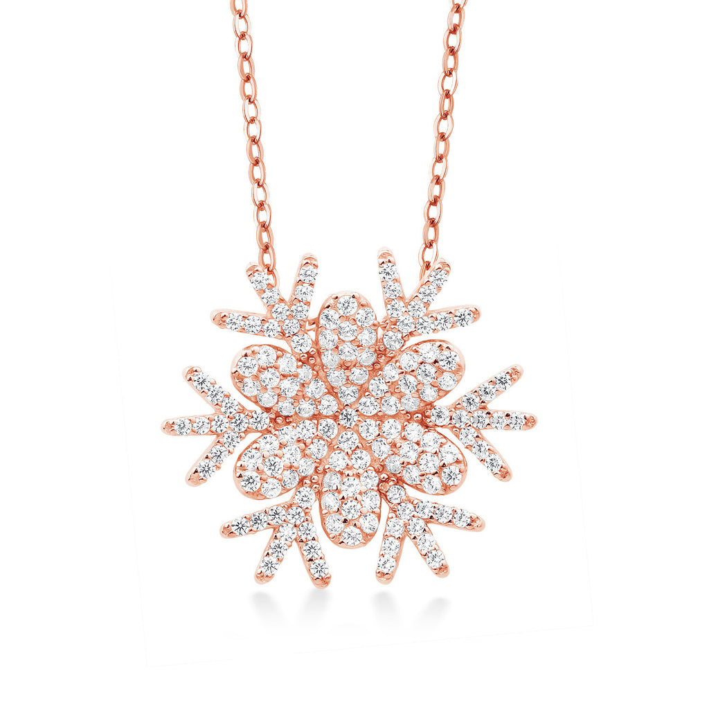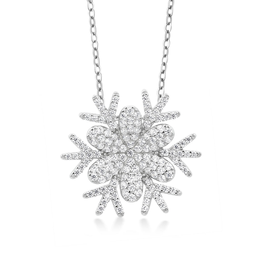 Snow Flake Pendant Necklace For Women | 925 Sterling Silver | 1.68 Cttw | Round White Zirconia | With 18 Inch Chain | Flower of Winter 20MM = 3/4 Inch | By Keren Hanan