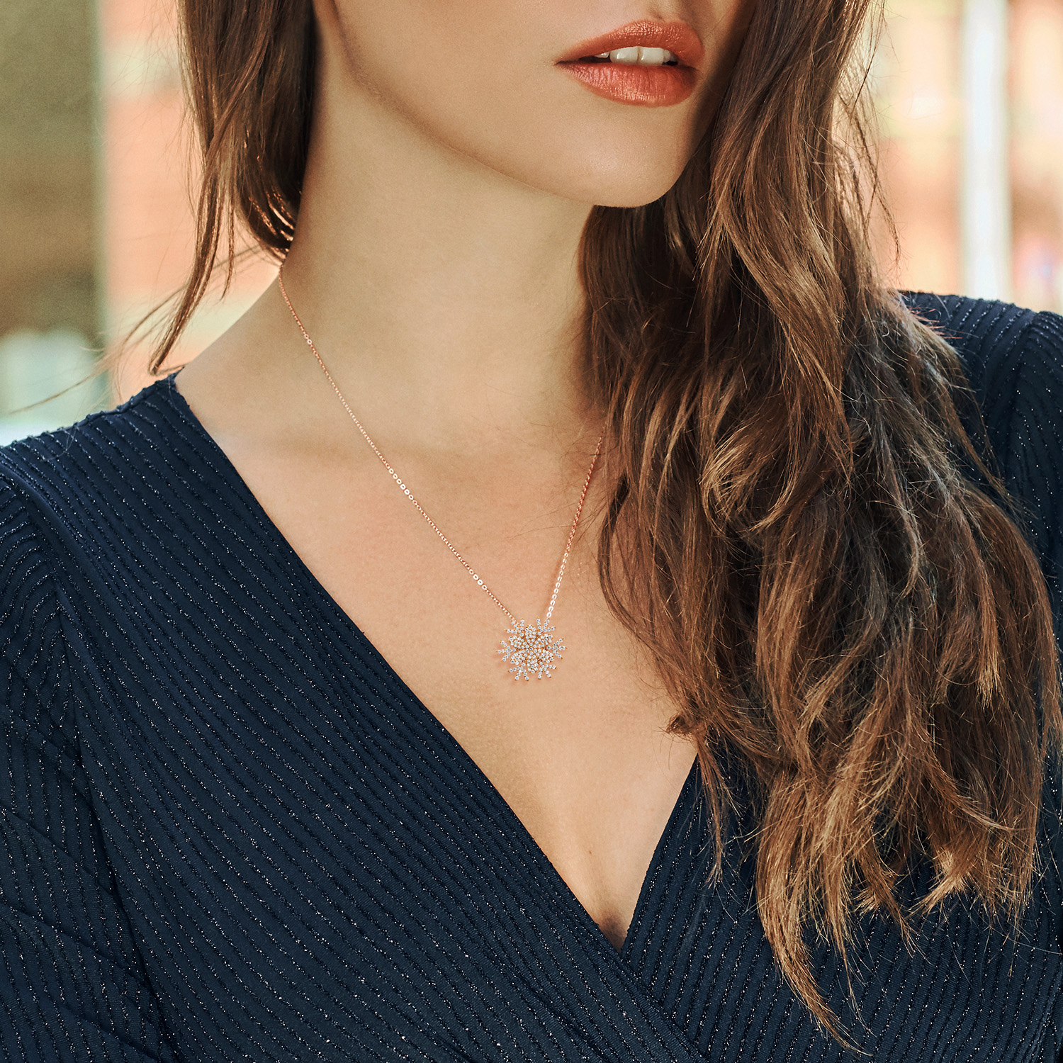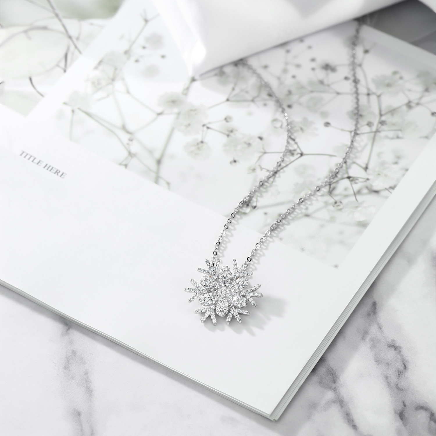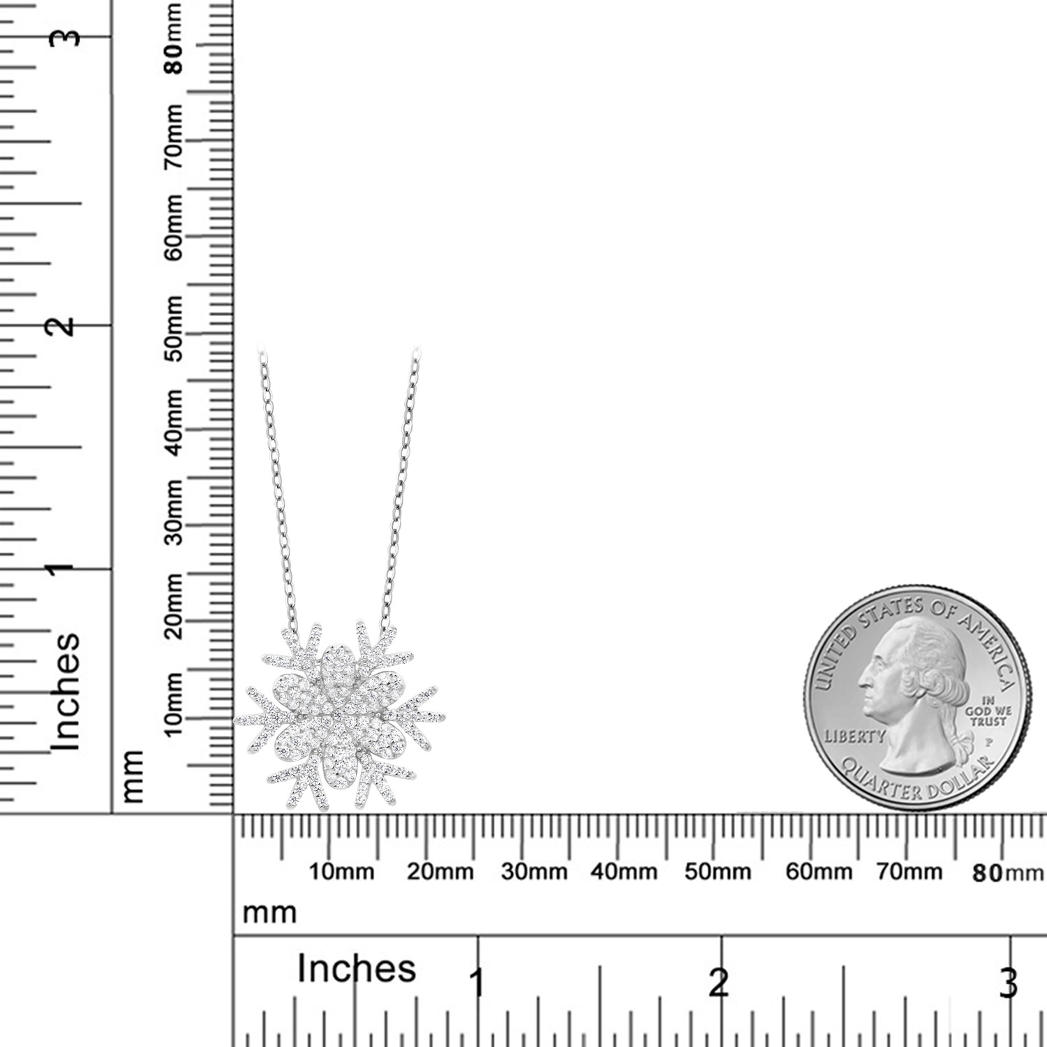 Snow Flake Pendant Necklace For Women | 925 Sterling Silver | 1.68 Cttw | Round White Zirconia | With 18 Inch Chain | Flower of Winter 20MM = 3/4 Inch | By Keren Hanan