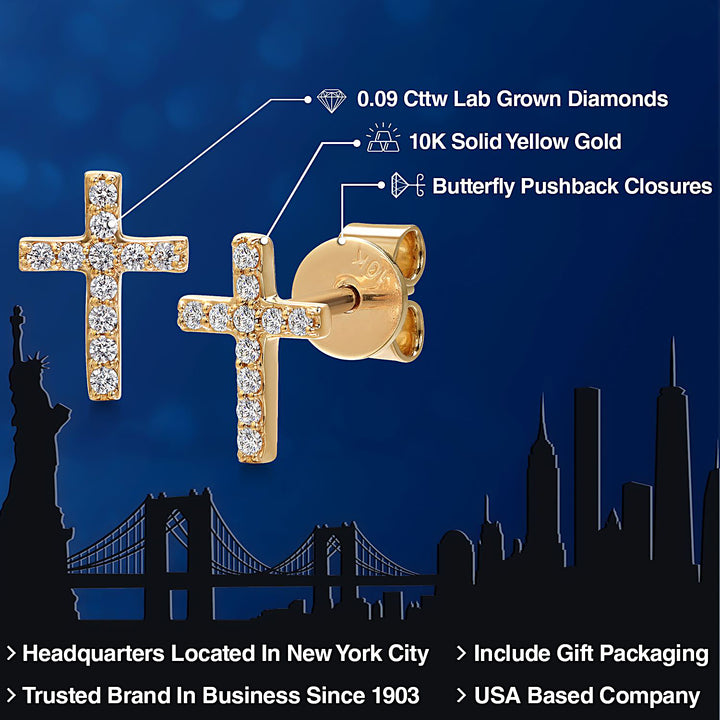 Solid 10K Yellow Gold Lab Grown Diamond Small Cross Earrings | G-H Color | VS-SI Clarity | 22 Diamonds | Cross = 8x6MM | Jesus Christian Religious Crucifix Jewelry Earrings For Women Men